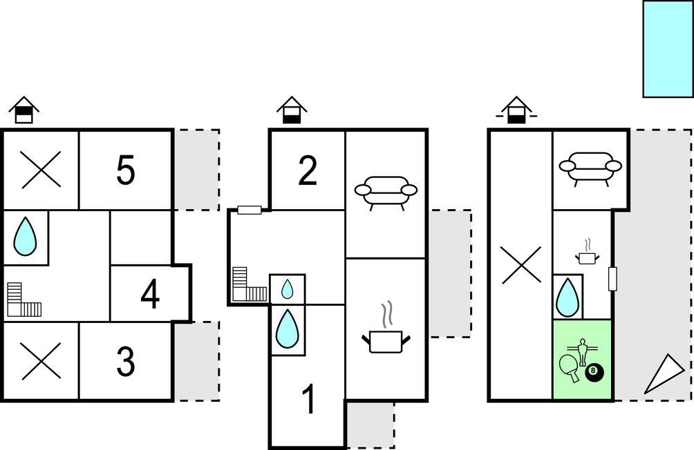 I det nederste plan er der køkken og en dagligstue, hvilket er skønt, når I gerne vil have nem adgang til poolen og grillen. Via udvendige trapper kommer I til stueetagen, som har et rummeligt opholds- og spiseområde med køkken samt to soveværelser, mens der er yderligere tre soveværelser på første sal.