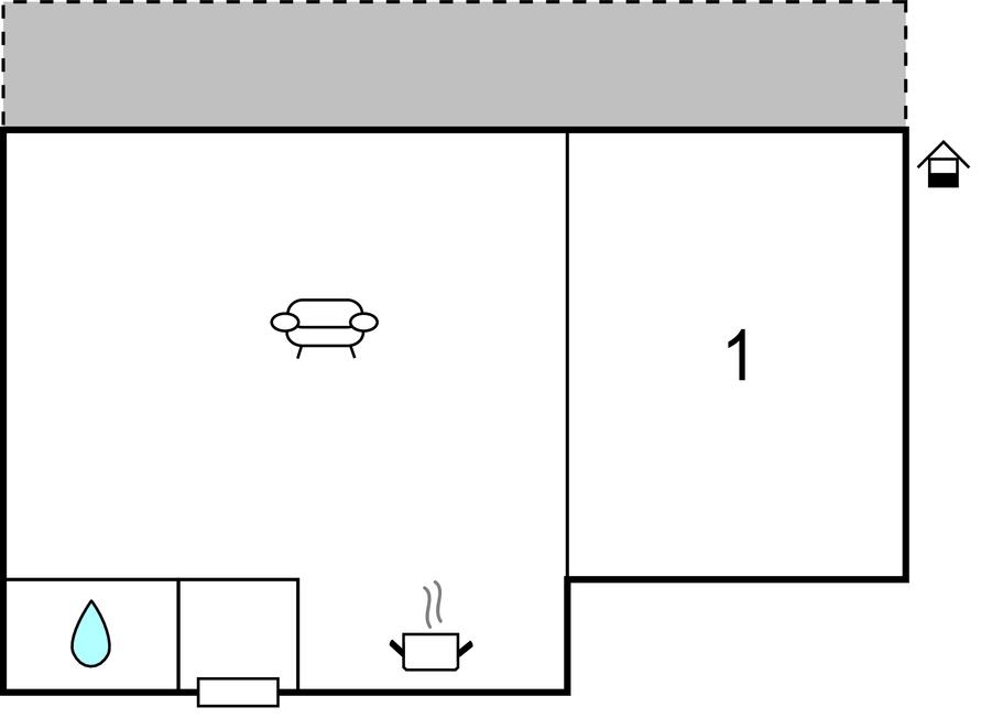 Opholdsstue/køkken - 2 Sovepladser. (Sofa, madras eller lignende).