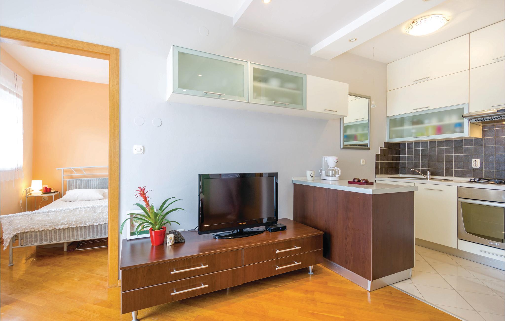 Venligt indrettet ferielejlighed på stueetagen. Indhegnet terrasse til dejlige timer i det fri, om morgenen til at spise morgenmad på og om aftenen til at grille på. Plænen foran terrassen er fælles for alle gæster. Tag solbad på kiselstranden i de nærmeste omgivelser, eller prøv tilbuddene inden for sejlads, dykning eller vandskiløb ved stranden. Se nationalparken Ucka, og udforsk dens vandreruter. Lad jer også underholde af sommerens arrangementer i de omkringliggende byer.
