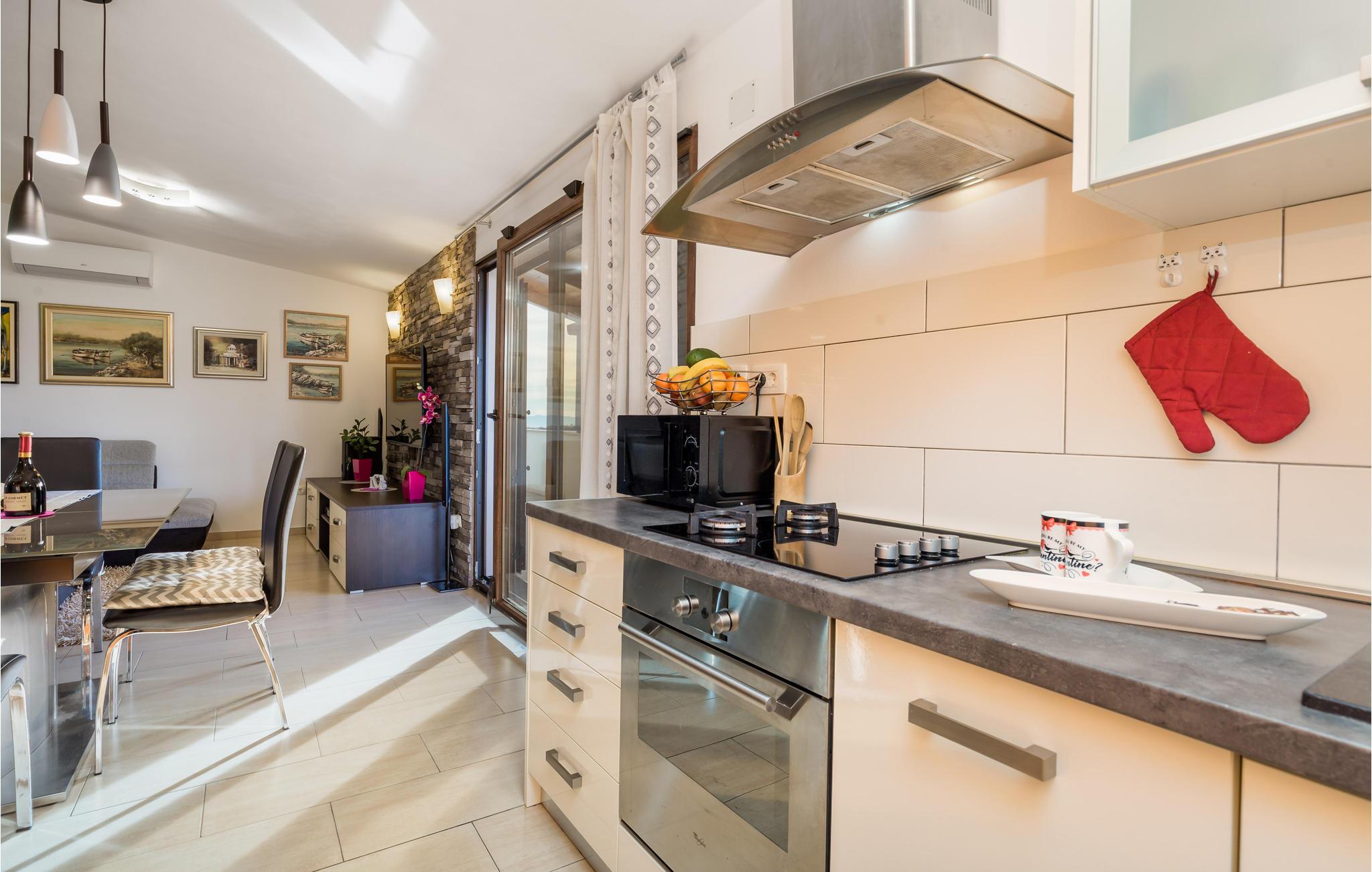 På første sal i en beboelsesejendom ikke langt fra Opatija ligger denne rummelige, hjemlige lejlighed, som du vil forelske dig i lige fra starten. Her har alle gæster plads nok til både socialt samvær og at fordele sig. Tilbered lækre måltider og nyd dem til en smuk udsigt over byen og det glitrende hav på balkonen.