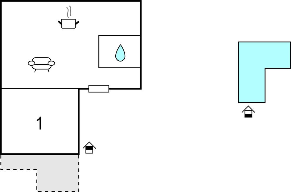 Opholdsstue/køkken 25m2 - 2 Sovepladser. (Sofa, madras eller lignende).