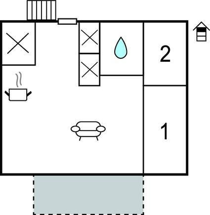 Opholdsstue/køkken 38m2 - 1 Soveplads. (Sofa, madras eller lignende).
