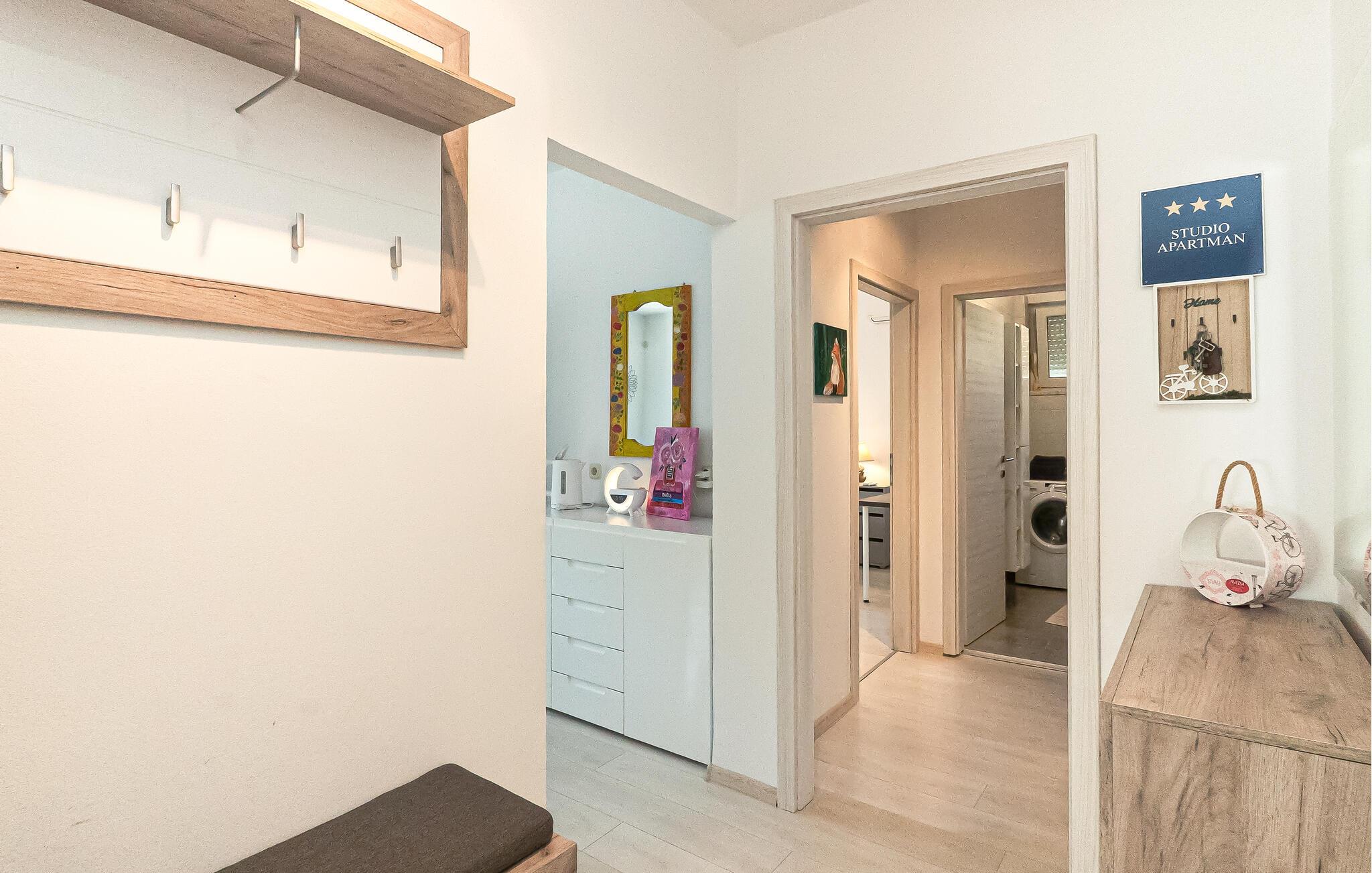 Oplev en afslappende ferie i denne praktiske ferielejlighed. Indrettet i diskrete farver tilbyder denne lejlighed alt, hvad I behøver for en afslappende pause fra hverdagen. En komfortabel sofa, et fjernsyn og et moderne køkken indbyder til afslappende timer med at snakke, se fjernsyn eller lave mad. Slap af her og nyd jeres velvære, som I ønsker. Nyd solrige dage på strandene langs Kvarnerbugten, perfekt til svømning, solbadning og afslapning. Gå en tur langs Opatijas berømte havnepromenade og beundr den storslåede arkitektur og velholdte parker. Udforsk den livlige kystby Rijeka med dens kulturelle seværdigheder, markeder og charmerende gamle bydel. Tag på udflugter til de grønne bakker i baglandet eller deltag i en af de mange begivenheder og koncerter i regionen.