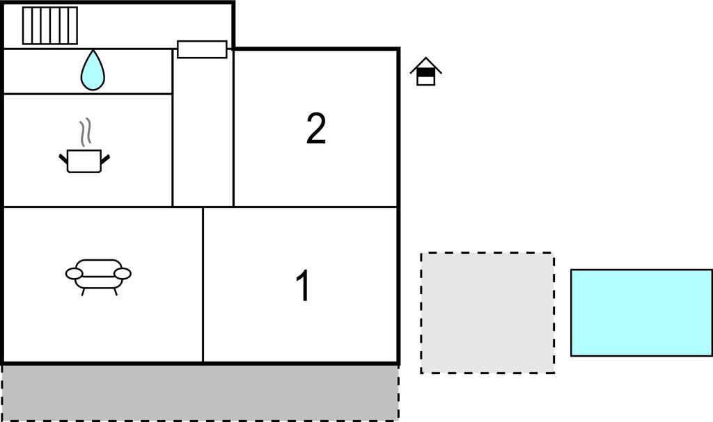 Opholdsstue - 1 Soveplads. (Sofa, madras eller lignende).