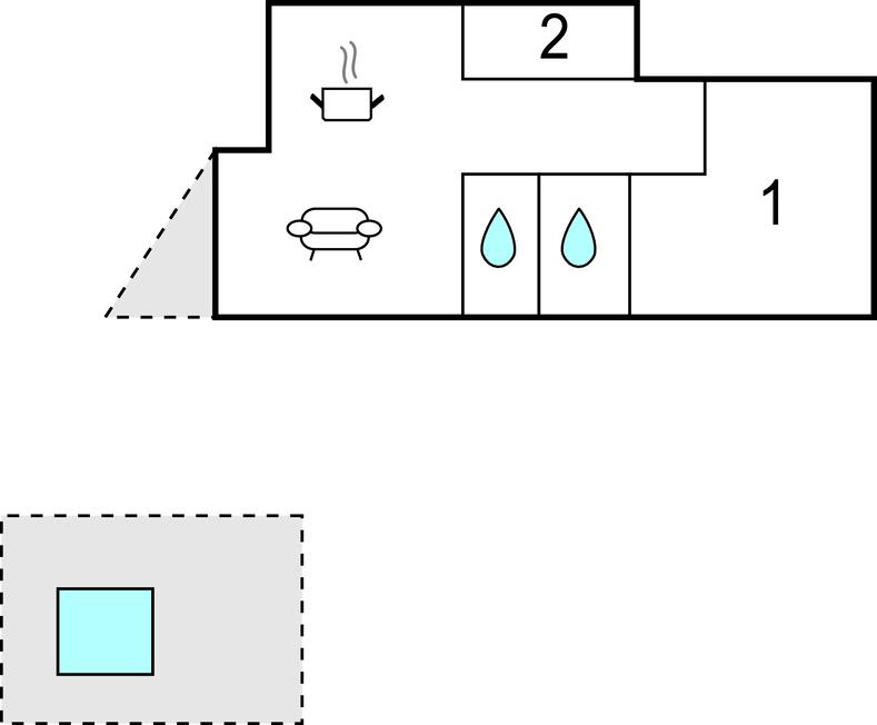 Badeværelse 4m2 (nr. 1) - WC. Varmt og koldt vand. Bruser