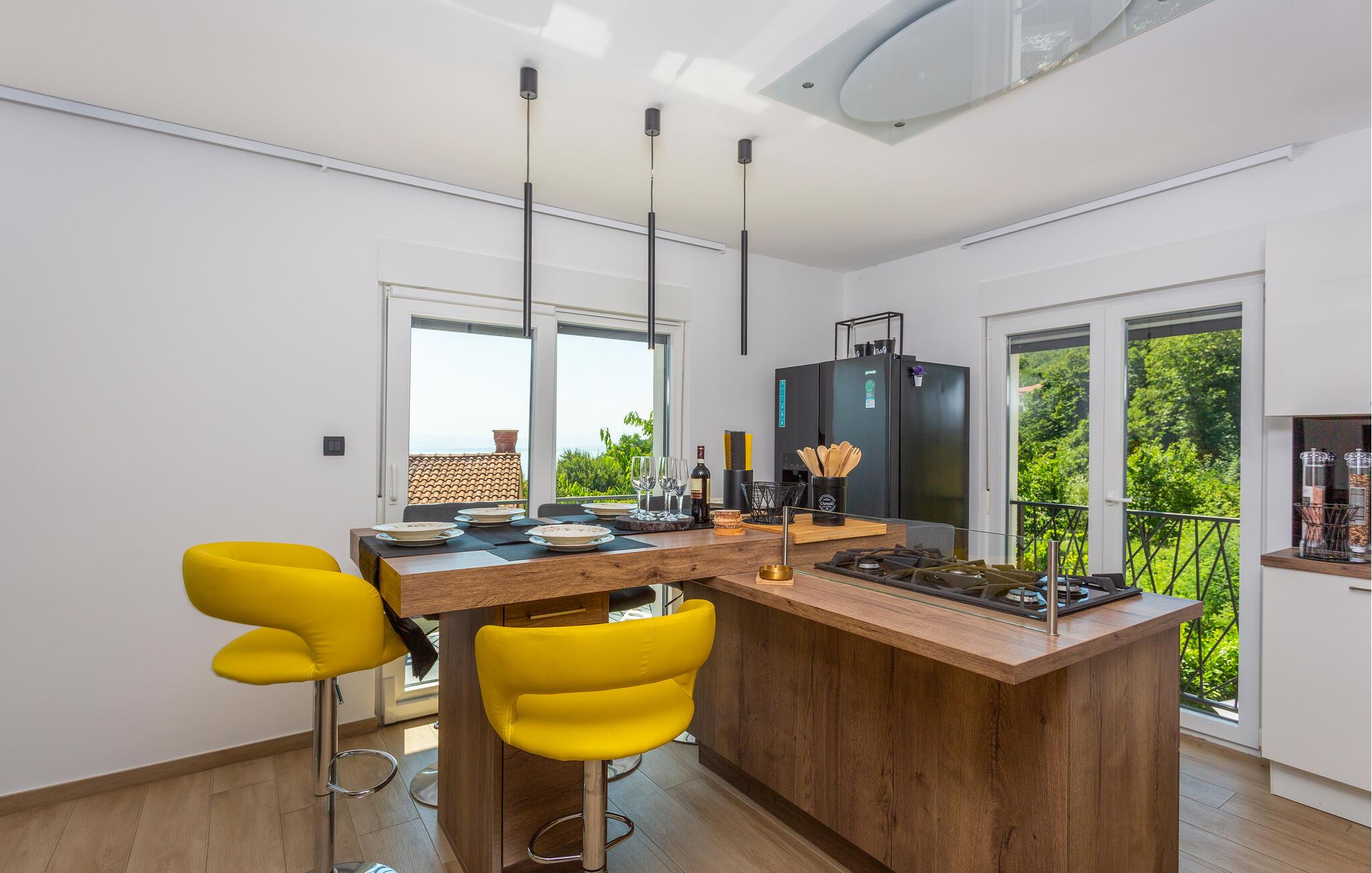 I kan se frem til luksus og komfort i denne lejlighed, som er placeret i Opatija-Rukavac og kendetegnet af stilfuld indretning og en indbydende atmosfære. Den lyse bolig emmer af moderne komfort og feriestemning, så her er det nemt at slappe af. Køkkenet giver jer også skønne, moderne faciliteter, så her bliver madlavningen en leg. Dagene slutter med en rolig stund i sofaen og en god film, inden det igen går løs med oplevelser.