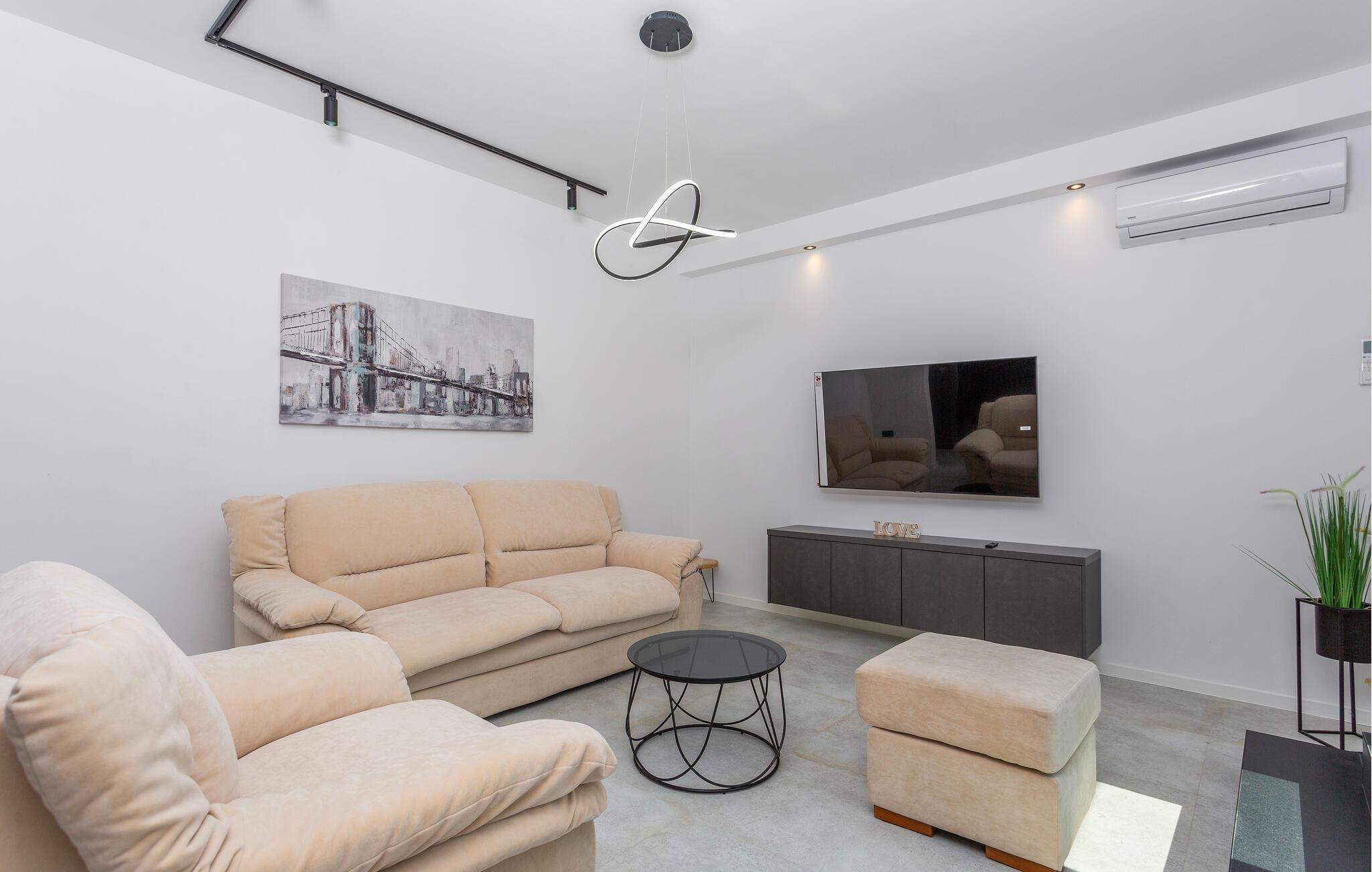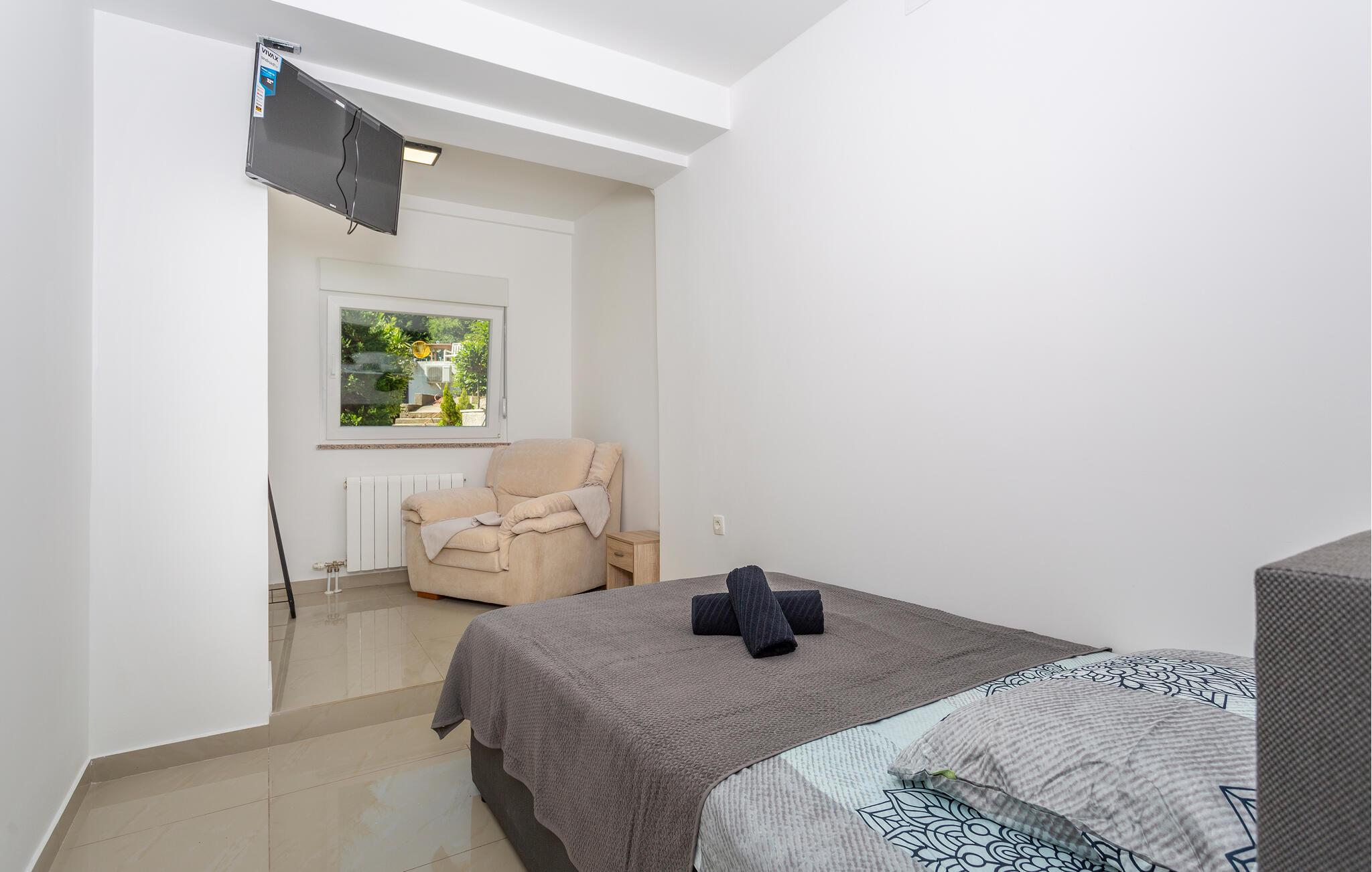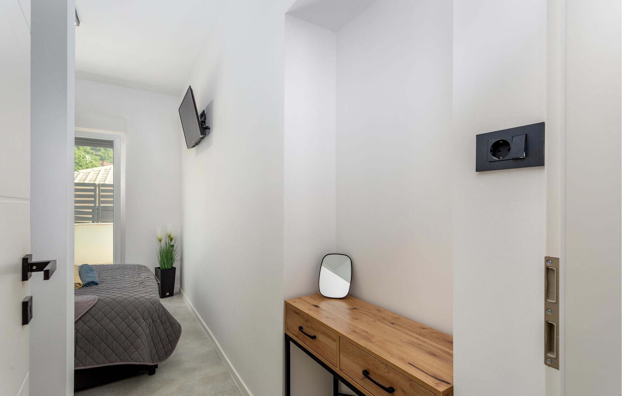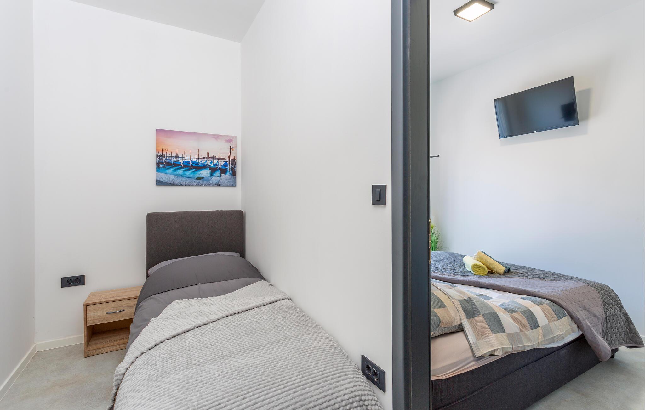 I kan se frem til luksus og komfort i denne lejlighed, som er placeret i Opatija-Rukavac og kendetegnet af stilfuld indretning og en indbydende atmosfære. Den lyse bolig emmer af moderne komfort og feriestemning, så her er det nemt at slappe af. Køkkenet giver jer også skønne, moderne faciliteter, så her bliver madlavningen en leg. Dagene slutter med en rolig stund i sofaen og en god film, inden det igen går løs med oplevelser.