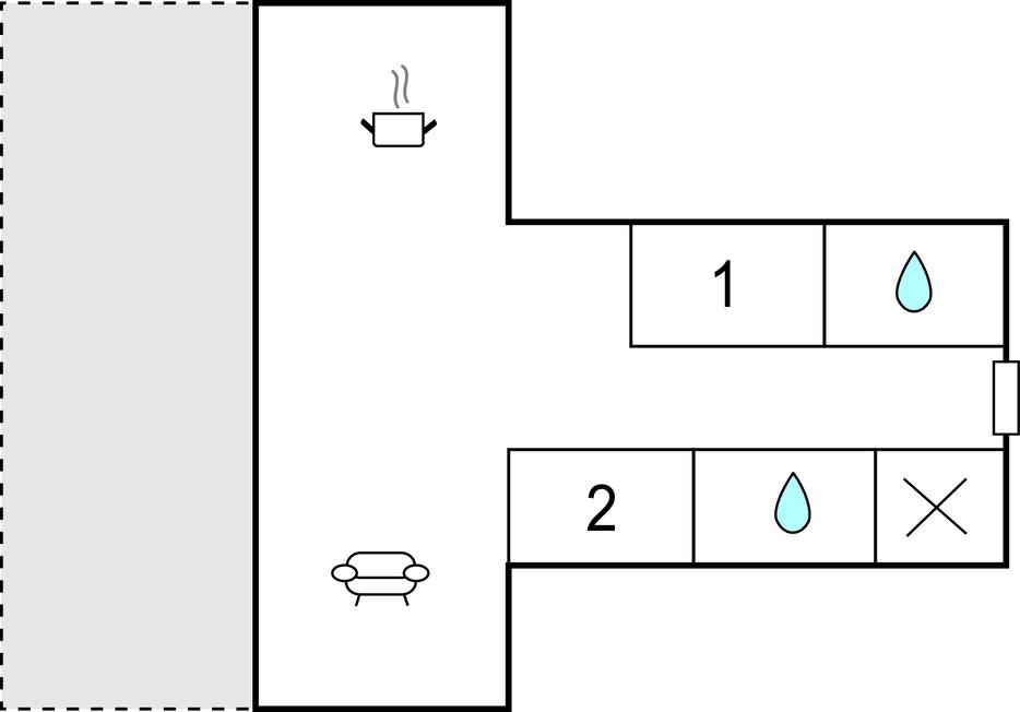 Badeværelse 5m2 (nr. 1) - WC. Varmt og koldt vand. Bruser