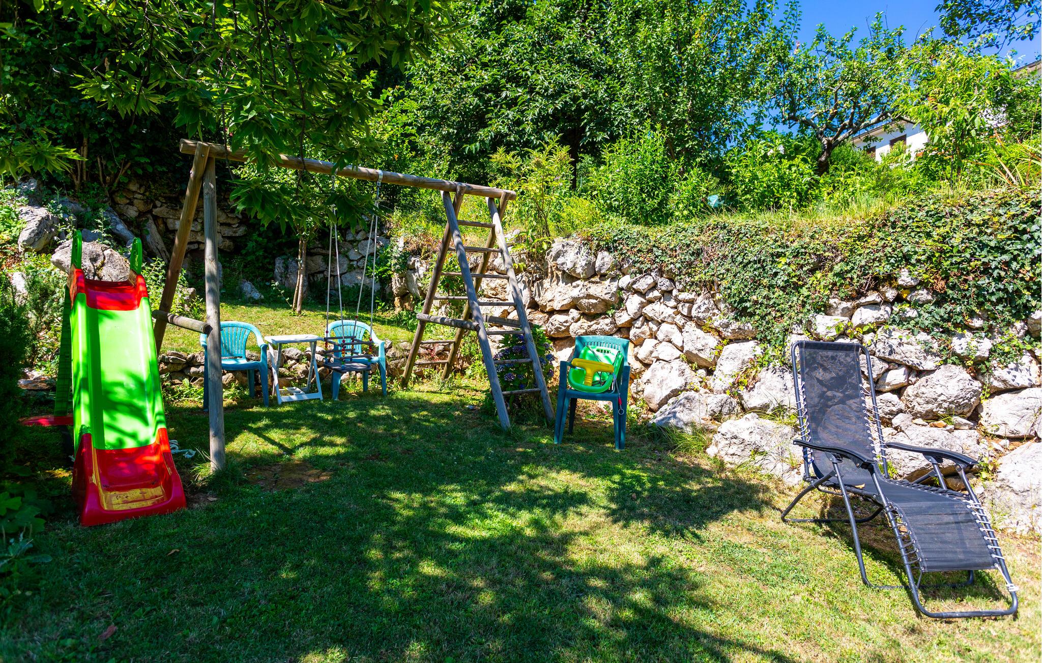 Den rummelige terrasse giver jer det perfekte sted at nyde solen. Der er yderligere ferielejligheder i huset samt en stor have, som er meget familievenlig. Grillområdet giver jer mulighed for at tilbringe aftenerne udendørs, og børnene kan løbe og lege imens.