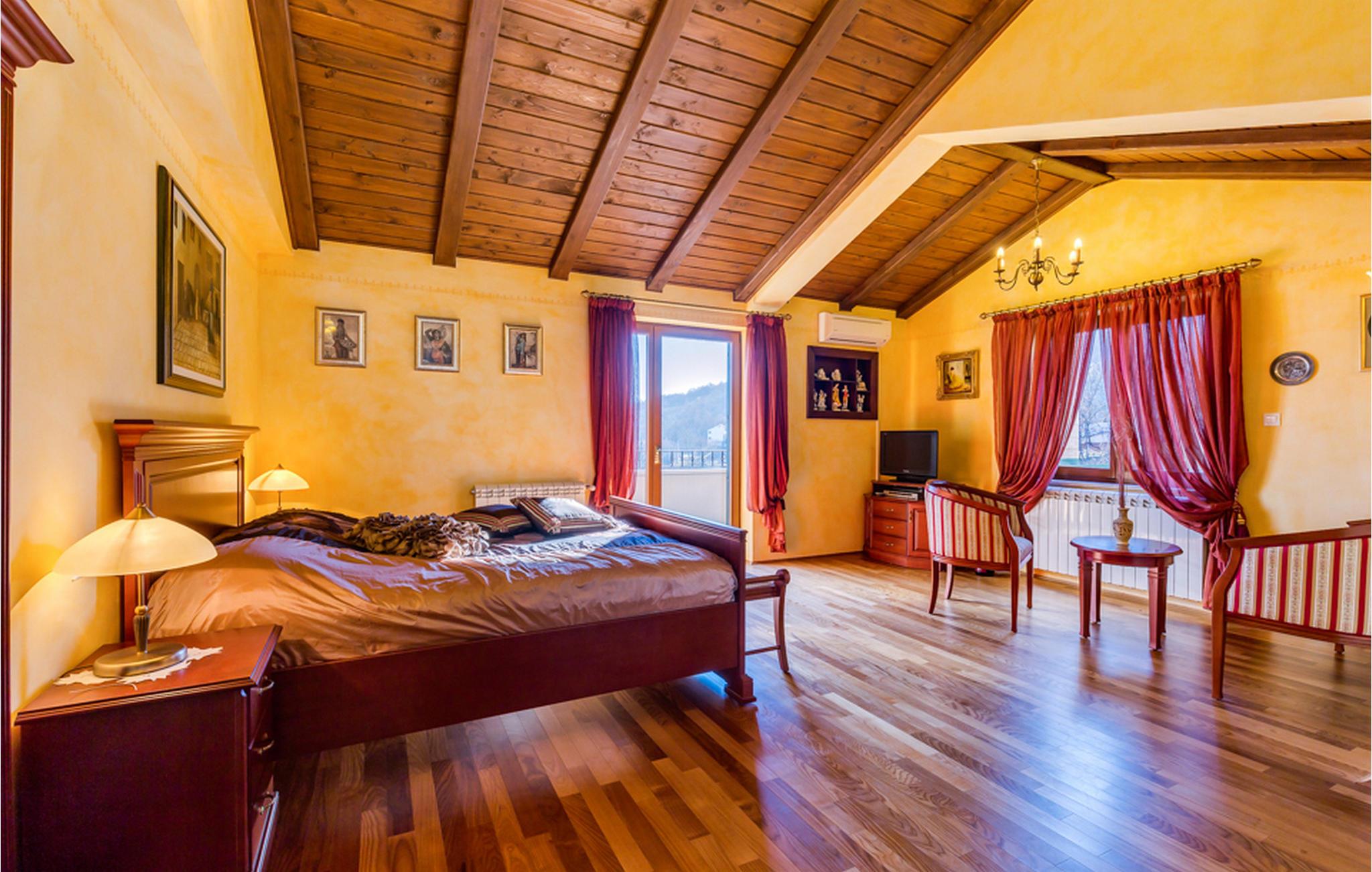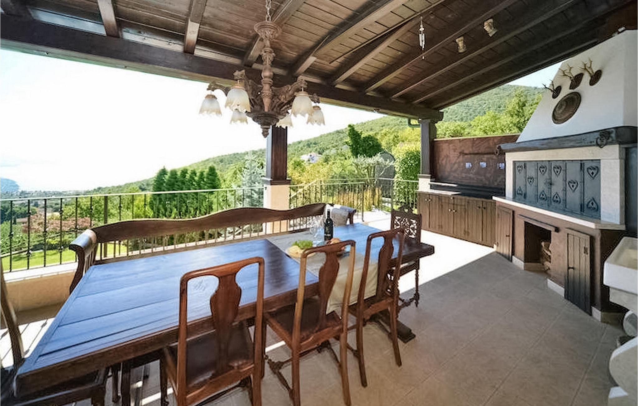 Luksuriøs Villa Lunin, beliggende hvor den kontinentale del af Kroatien møder havet, er et ideelt valg til en afslappende ferie. Tilbring dine dage med at slikke solen fra din indbydende private pool, mens du nyder den herlige udsigt over den nærliggende Kvarner-bugt. Hele denne ejendom er intet mindre end storslået og giver næsten alt, hvad en person kan ønske sig på en ferie. Villaen har 5 hyggelige soveværelser og kan rumme op til 10 gæster, hvilket gør den perfekt til større familier. Værelserne er indrettet med stor kærlighed og omsorg. Der blev tænkt meget over detaljerne, såsom en 130 år gammel ovn, træbjælker, interessante malerier og forskellige samlinger.