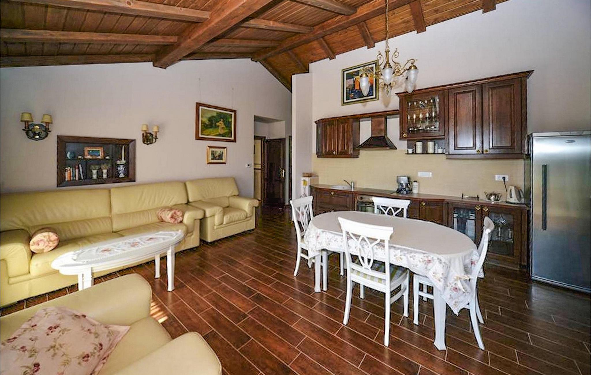 Tro ikke, at villaens hovedkarakteristika er dens "rustikke" atmosfære, for du kunne ikke tage mere fejl: i villaen finder du også en sauna og hjemmebiograf til sjove filmaftener.