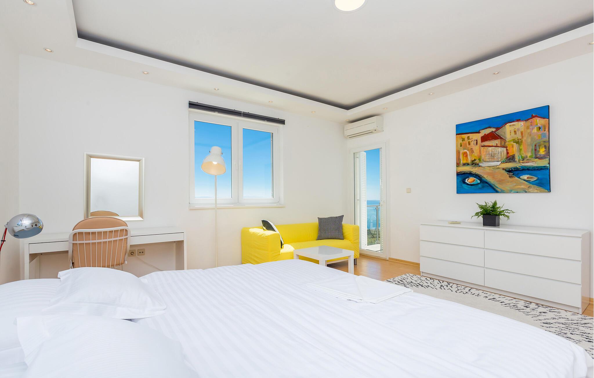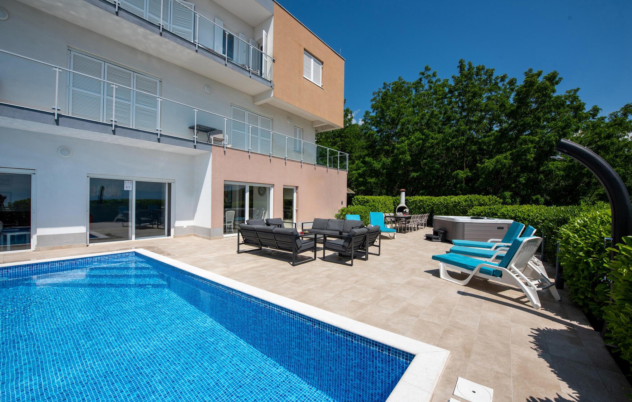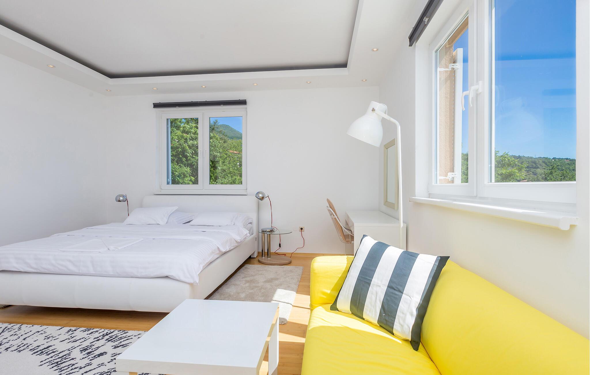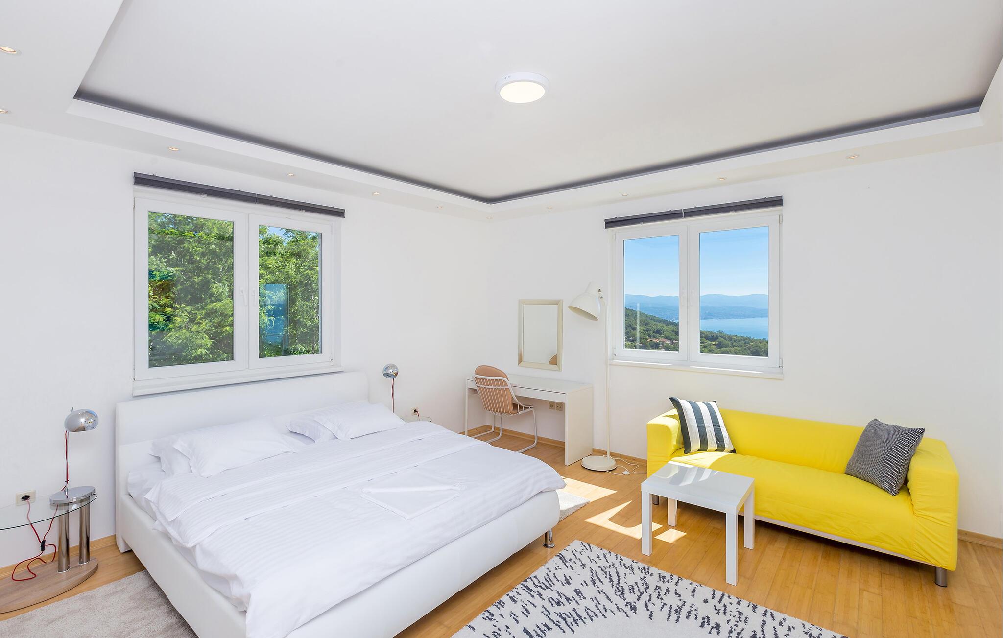 Dette eksklusive feriehus ligger i meget rolige naturskønne omgivelser, i den lille by Sveti Petar på Opatija Riviera. Det ligger på en bakke over den berømte Icici-strand, hvor der også er en stor lystbådehavn. Fra alle værelser i huset kan I nyde en fortryllende panoramaudsigt over det blå hav, hele Kvarnerbugten og øerne Krk og Cres. Feriehuset er det ideelle valg for en større familie eller to familier. I nærheden ligger naturparken Ucka, som har afmærkede vandre- og vandrestier. Udforsk det smukke landskab og nyd freden, roen og den friske luft.