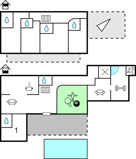 Indvendigt kan I glæde jer til rigtig god plads med miniwellness. Soveværelserne ligger på øverste etage og de har alle eget badeværelse. Heroppe er der endvidere en skøn altan hvor morgenkaffen kan nydes sammen med dagens første solstråler.