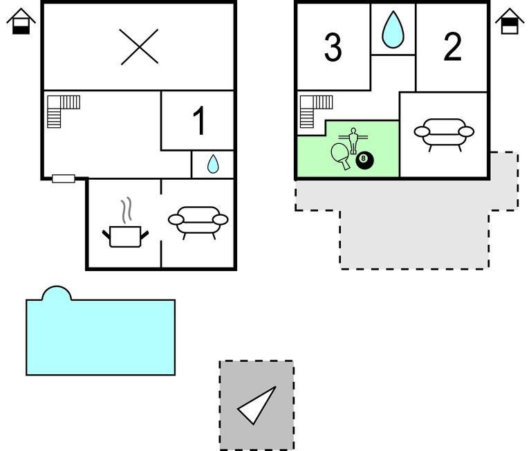 Opholdsstue/køkken - 2 Sovepladser. (Sofa, madras eller lignende).