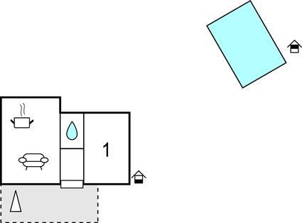Opholdsstue/køkken 20m2 - 2 Sovepladser. (Sofa, madras eller lignende).