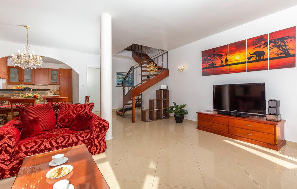 Dette tre-etagers feriehus indbyder til en afslappende, luksuriøs ferie. De smukt og lyst indrettede værelser har en åben og meget behagelig atmosfære. Du har adgang til flere terrasser og altaner med en vidunderlig havudsigt. Du finder mange hyggelige og rolige hjørner, hvor du kan nyde morgenkaffen og udsigten eller læse en god bog.