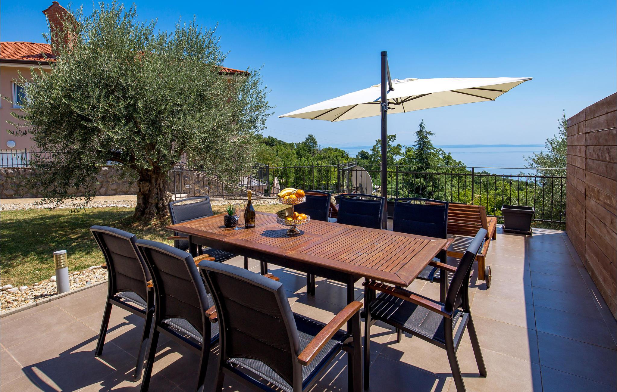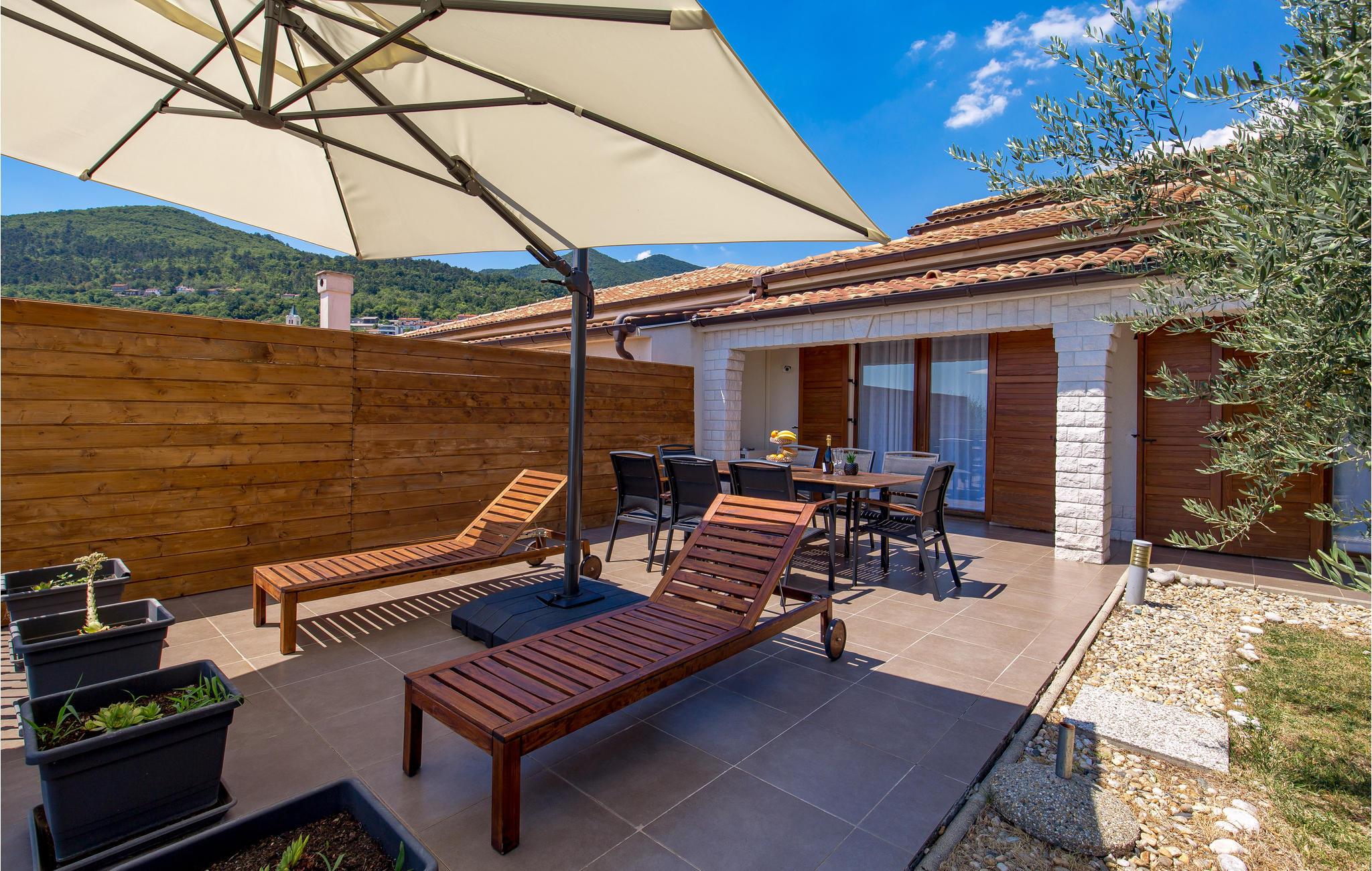 Huset ligger ikke langt fra den charmerende kystby Opatija på østkysten af ??halvøen Istrien. Villaen er egnet til 8 personer, som kan nyde naturen, udsigten og livet sammen i fred og ro her. På terrassen, i den skønne stue eller ved spisepladsen kan I samles og spise, sludre, lege eller læse, alt efter hvad I har lyst til.