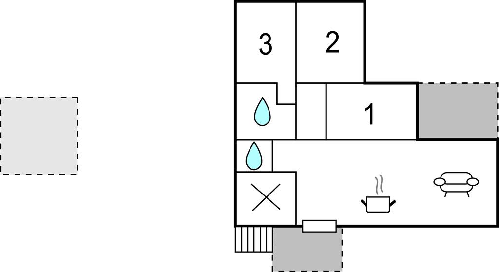 Opholdsstue/køkken 45m2 - 2 Sovepladser. (Sofa, madras eller lignende).