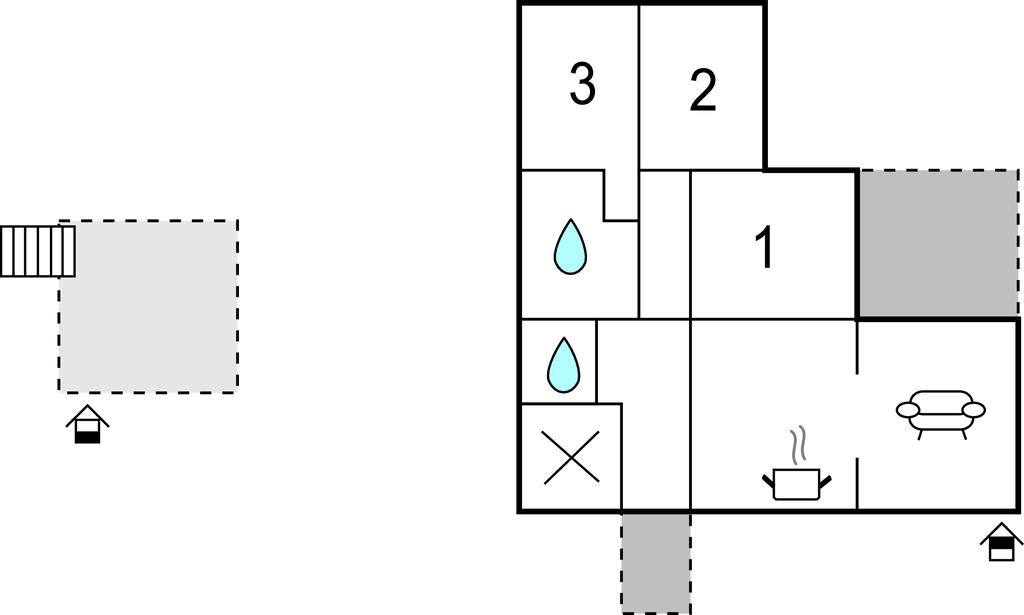 Opholdsstue/køkken 45m2 - 2 Sovepladser. (Sofa, madras eller lignende).