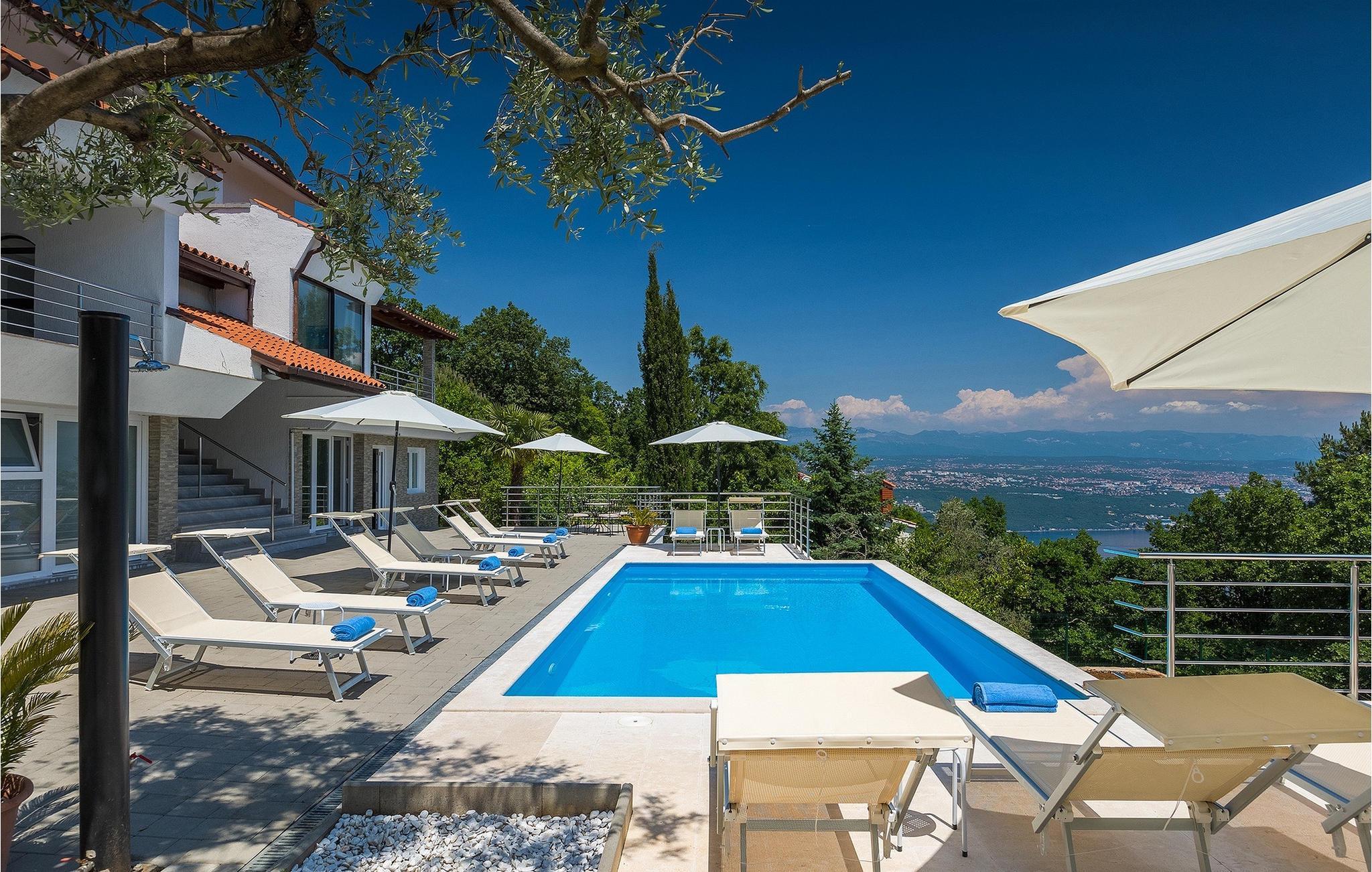 Book denne villa og tilbring en uforglemmelig ferie med en vidunderlig udsigt af Kvarner!Denne villa er beliggende i en lille landsby Veprinac nær Opatija. Kun 9 km fra villaen ligger den første strand i Icici og 11 km fra villaen finder du den næstnærmeste strand, i Opatija. Kvarner-regionen byder på adskillige strande og bugter, hvor du kan nyde dette områdes naturlige skønhed. Under dit ophold i Kvarner skal du helt sikkert besøge den historiske by Opatija. Opatija er det ældste turistcenter i Kroatien, hvis historie går tilbage til det 19. århundrede, hvor dynastiet Habsburg forvandlede byen til en destination for adelsmænd. Under dit ophold i Opatija skal du sørge for at besøge Villa Angiolina, som markerer begyndelsen på turismen i dette område. Gå en tur gennem Park of St. Jacob eller Park Angiolina, begge bygget i det 19. århundrede. Oplev dette område, der går gennem Lungo Mare, en 12 km lang og 100 år gammel promenade langs kysten, der strækker sig fra Lovran til Voloski. Har du lyst til at tage på tur, er Ucka Naturpark også i nærheden.