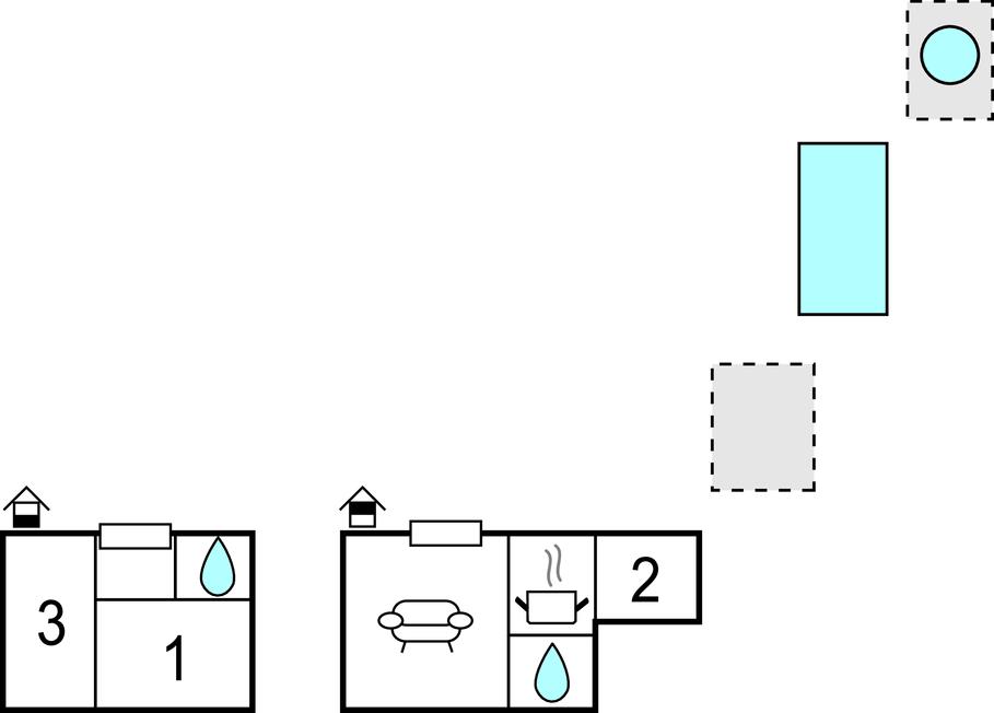 Stueetagen har soveværelse, badeværelse, køkken og stue. Ovenpå er der to soveværelser og et badeværelse og til sidst er der et opholdsrum med sovesofa og køkken, hvilket kan bruges som en ekstra stue og køkken, hvis det er nødvendigt.