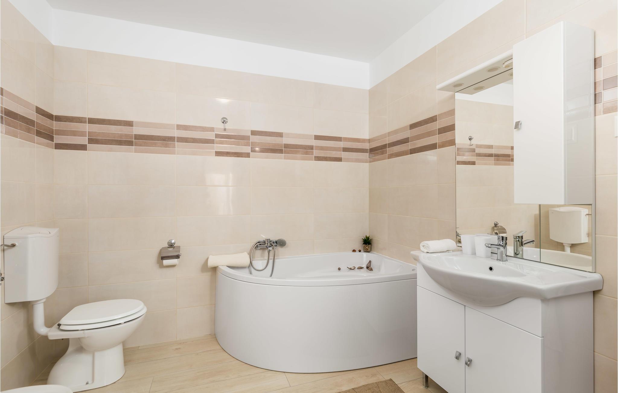 Badeværelse 9m2 (nr. 1) - WC. Varmt og koldt vand. Bruser og badekar