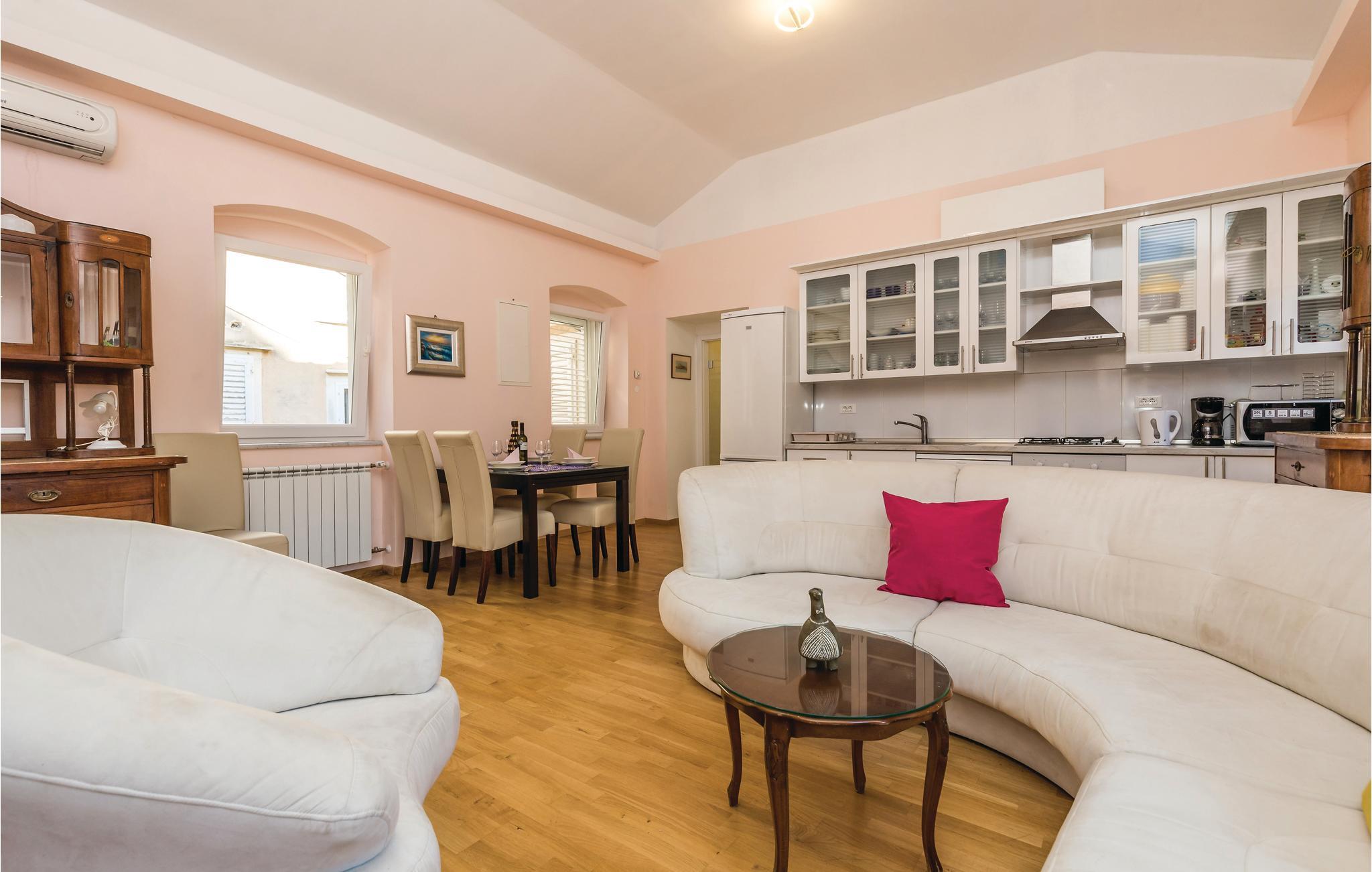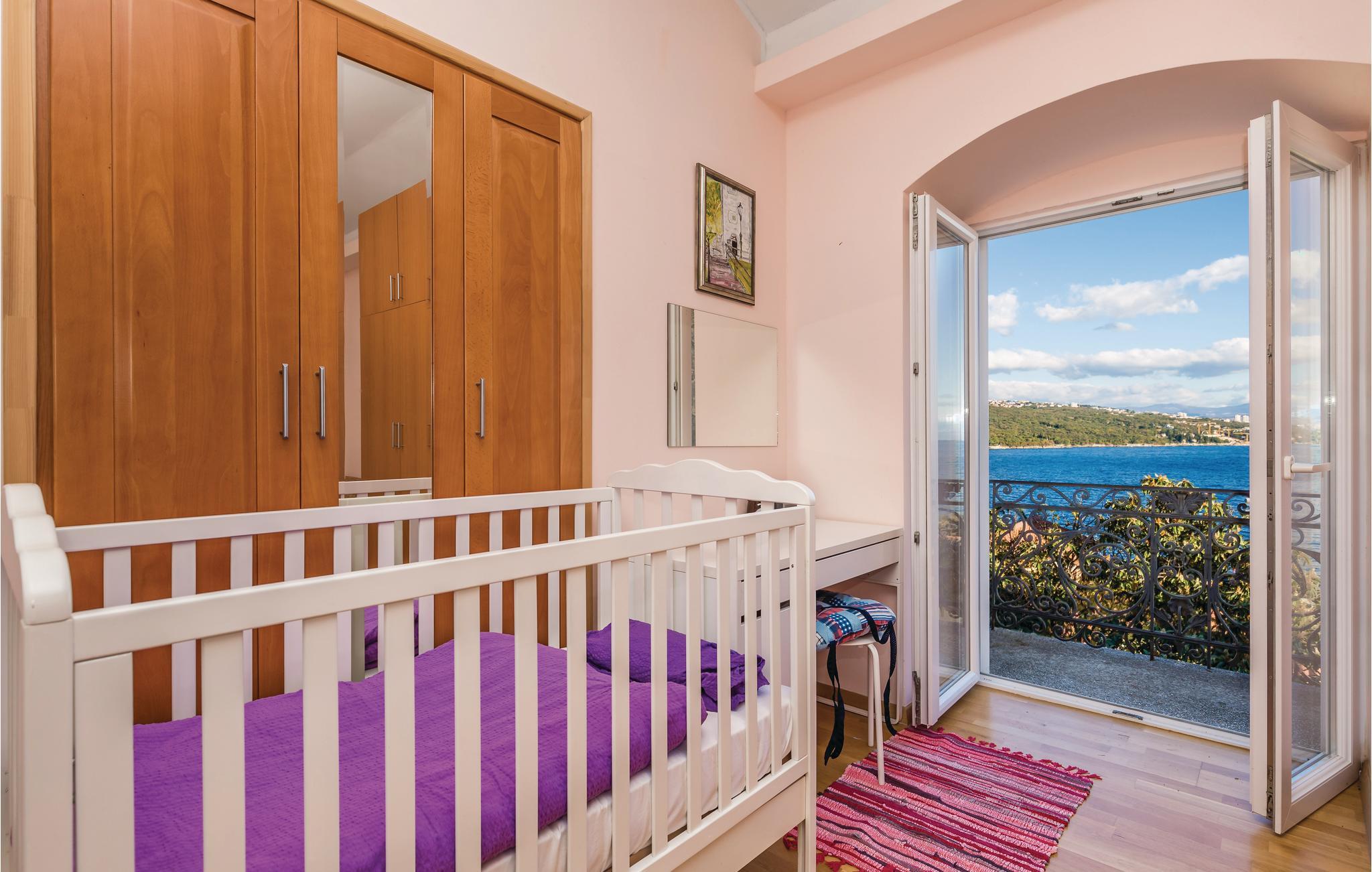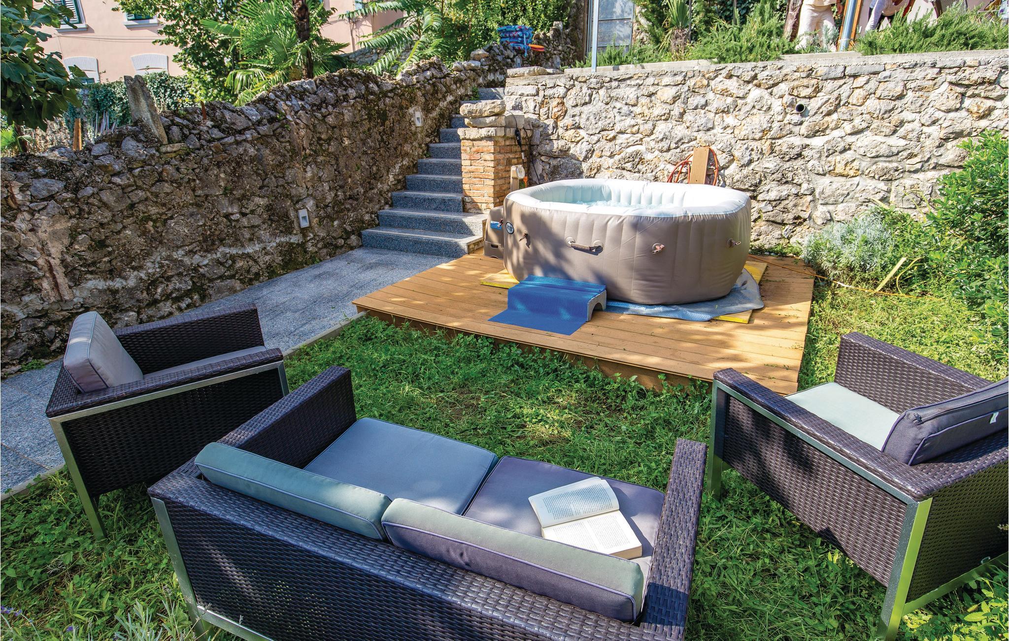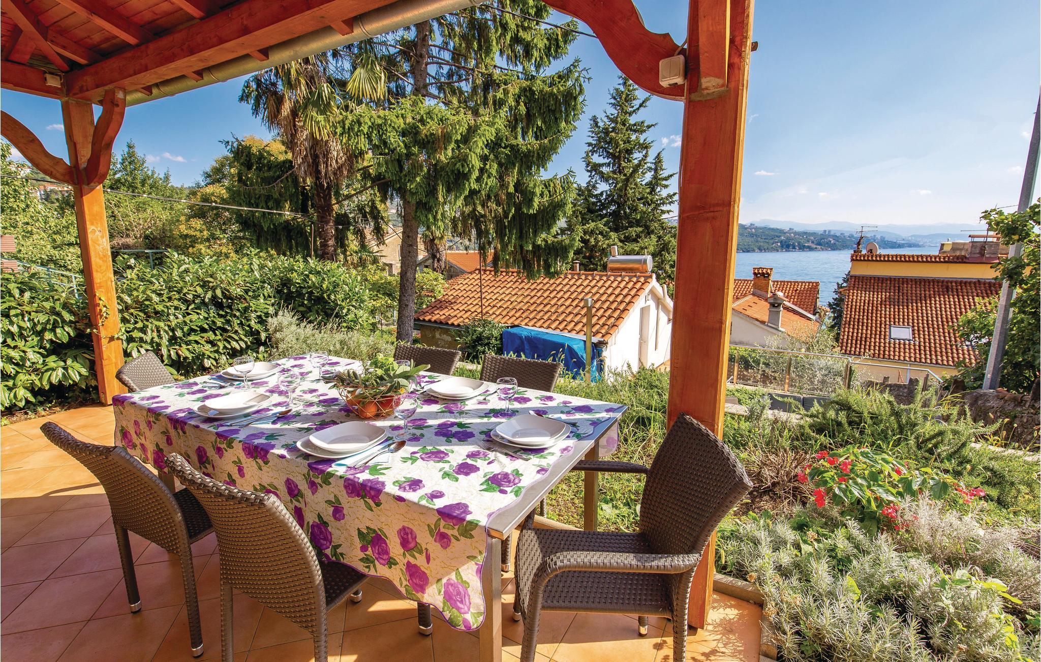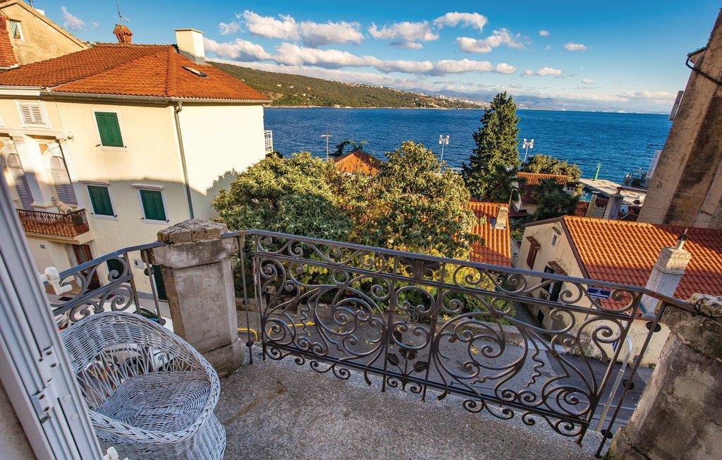 I den maleriske by Volosko, ikke langt fra Opatija, ligger dette charmerende dobbelthus. Den gamle villa er oprindeligt fra 1830. Der er to indgange, den ene over en trappe fra gaden, den anden igennem haven, der er anlagt i flere plan med mediterrane planter, og hvor der også er en whirlpool. Herfra kan I gå til badestranden og den 12 km lange promenade ved havet. Tag på bådsture til Kvarnerbugtens nærmeste øer eller tag op i Ucka-bjergene, hvis I vil fange lidt bjergluft. Husejeren sørger for en parkeringsbillet til en plads ca. 100 m væk.