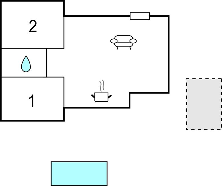 Opholdsstue/køkken 40m2 - 1 Soveplads. (Sofa, madras eller lignende).