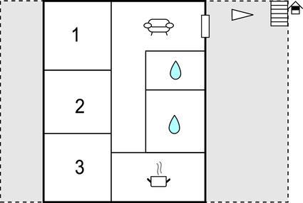 Badeværelse 5m2 (nr. 1) - WC. Varmt og koldt vand. Bruser