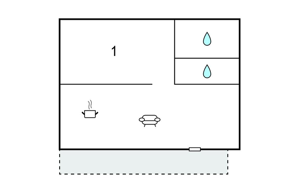 Opholdsstue/køkken 17m2 - 1 Soveplads. (Sofa, madras eller lignende).
