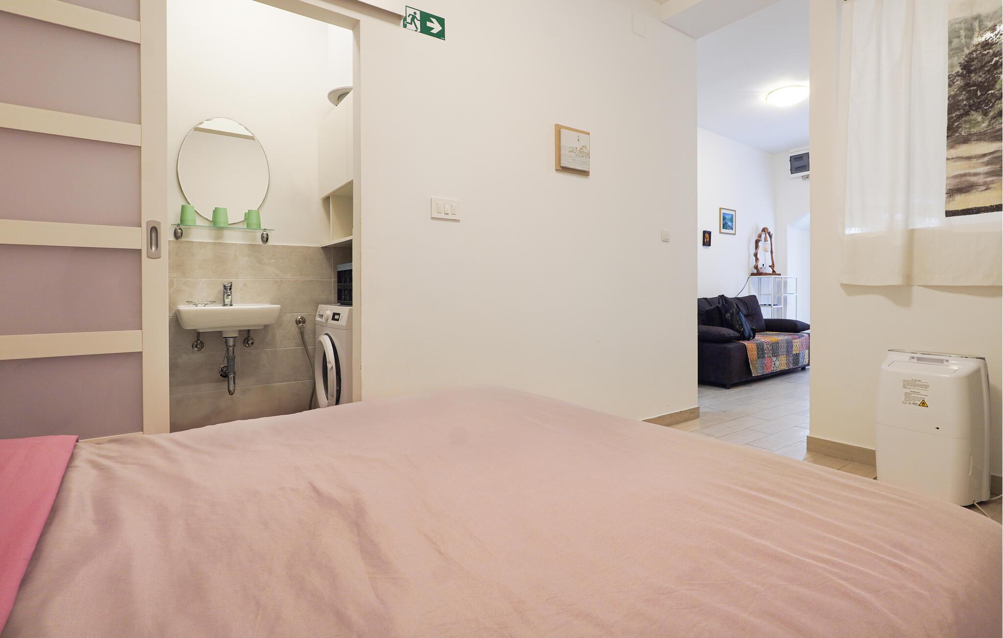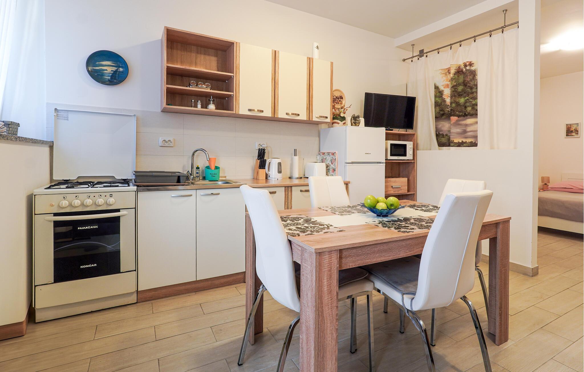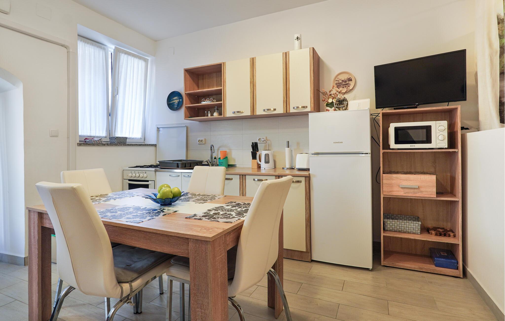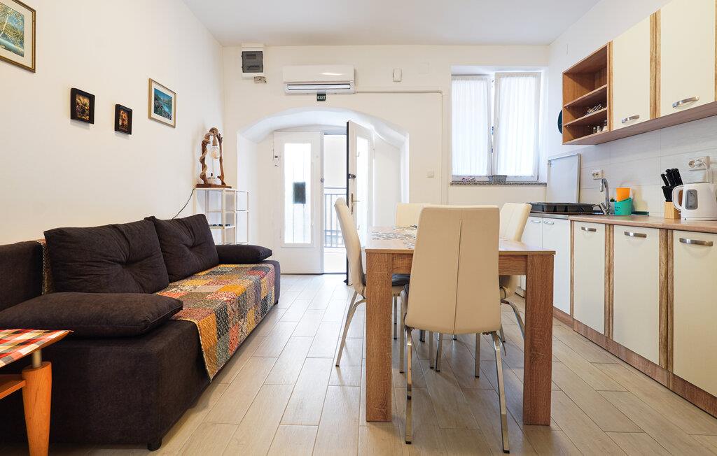 Denne velindrettede lejlighed i stueetagen byder jer velkommen meget tæt på stranden og i gåafstand fra alle faciliteterne i kystbyen Volosko. Tilbered jeres måltider her med friske råvarer fra markedet, og planlæg jeres aktiviteter i den hyggelige opholdsstue. Efter en begivenhedsrig dag kan I hvile jeres trætte ben på sofaen, streame en film eller fordybe jer i en god bog.
