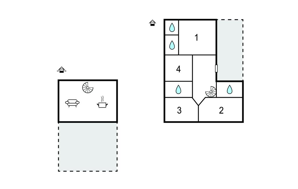 Badeværelse 4m2 (nr. 1) - WC. Varmt og koldt vand. Bruser