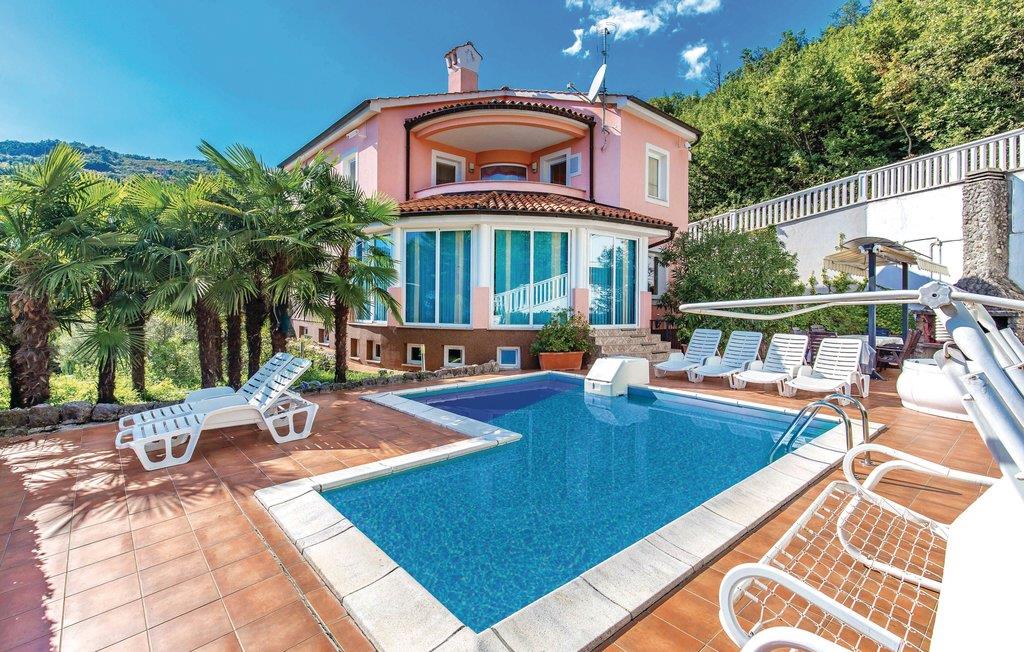 Dette dejligt indrettede feriehus ligger i nærheden af centrum i den berømte ferieby Opatija, på en skråning i Ucka-bjergene. Det er omgivet af laurbærbuske og giver jer meget privatliv. Husets indre er indrettet rundhåndet og komfortabelt. Et soveværelse ligger i kælderen. Det har en dør til haven. Strandene ved Medveja og Moscenicka Draga er et besøg værd. Aftenerne kan I tilbringe i svømmebassinet, jacuzzien eller i saunaen. Opatija har været et populært rejsemål lige siden det 18. århundrede og er kendt for den smukke arkitektur og de mange parker. Byen er præget af de gamle østrigske villaer, den rene havluft og den 12 km lange promenade helt fra Volosko til Lovran. I nærheden ligger mange flere mindre byer, der også har et interessant kulturelt program i sommermånederne. Opdag regionens fremragende gastronomiske tilbud og vandrestierne i naturreservatet Ucka. Hele byen er en vidunderlig blanding af kyst- og bjerglandskab, der er berømt langt over landets grænser. Indkørselsvejen til huset er meget stejl.