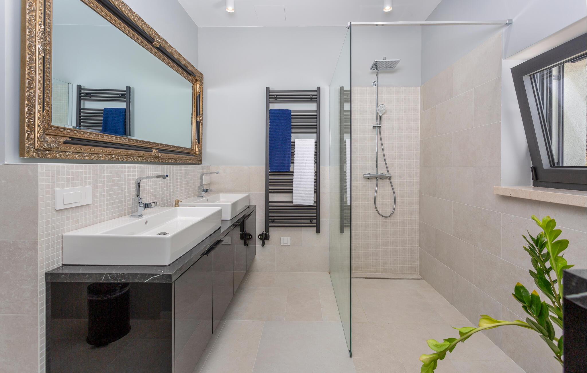 Hvis I er på udkig efter en ferieoplevelse langt udover det sædvanlige, er denne store, resort-lignende villa i Opatija det helt rette valg for jer. I bor tæt på centrum af byen på en klippe med en elevator, der fører dertil. Alt emmer simpelthen af luksus her. Alle soveværelser har eget badeværelse, så I kan nyde nattesøvnen og en rolig morgenstund i privatlivets trygge rammer, inden I mødes til morgenmaden ved det flotte spisebord. Her er masser af plads til fælles aktiviteter, I kan spise sammen foran de store panoramavinduer, som gør det muligt at nyde den spektakulære panoramaudsigt over havet, selv når i sveder igennem i saunaen efter en aktiv feriedag.