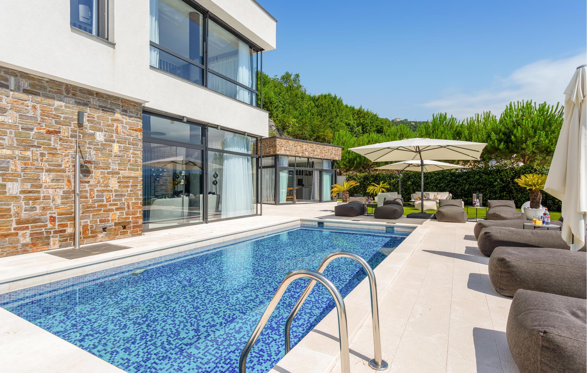 Glæd jer til en vaskeægte drømmeferie i denne store luksusvilla med pool, havudsigt og masser af wellness.