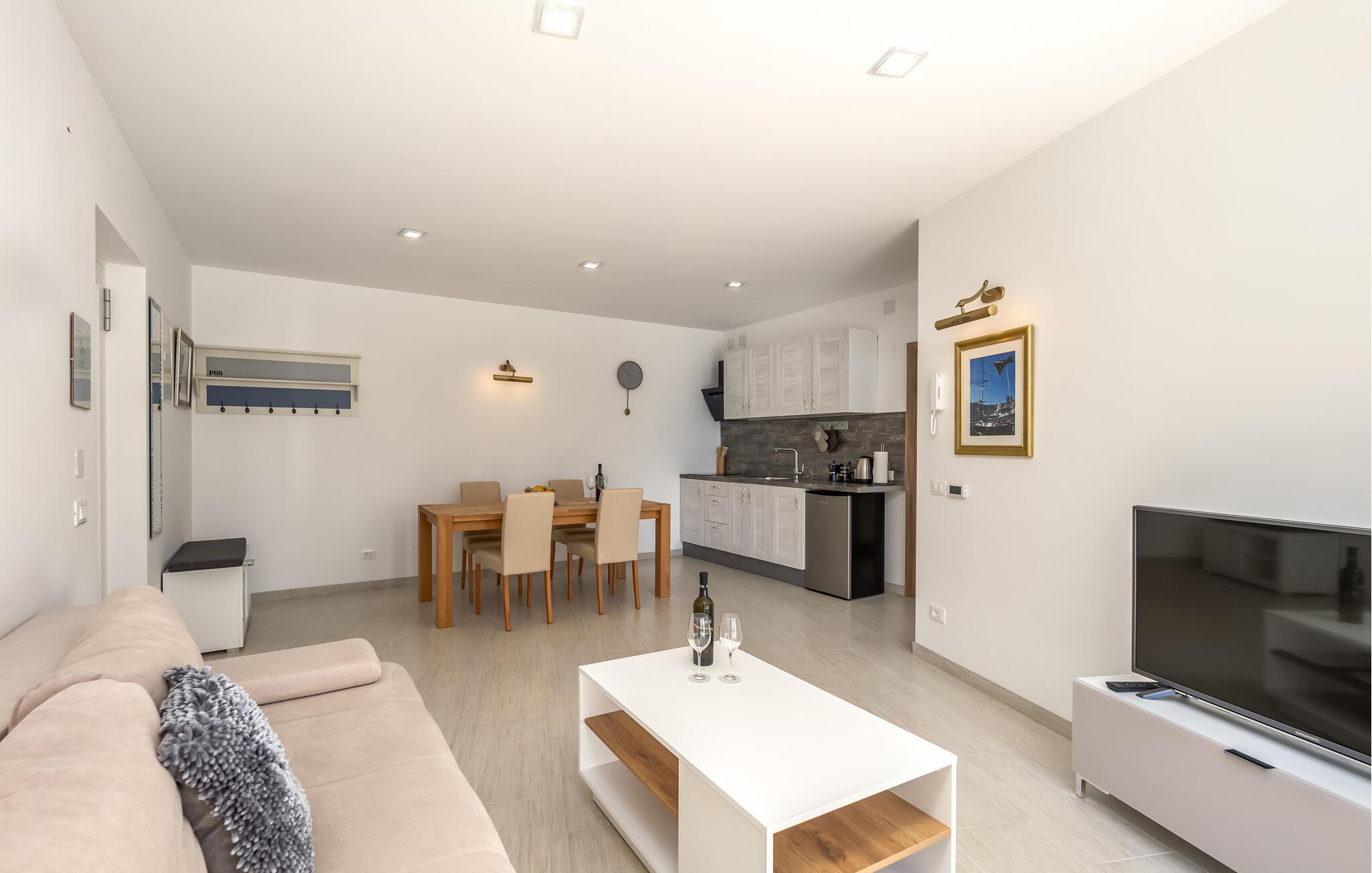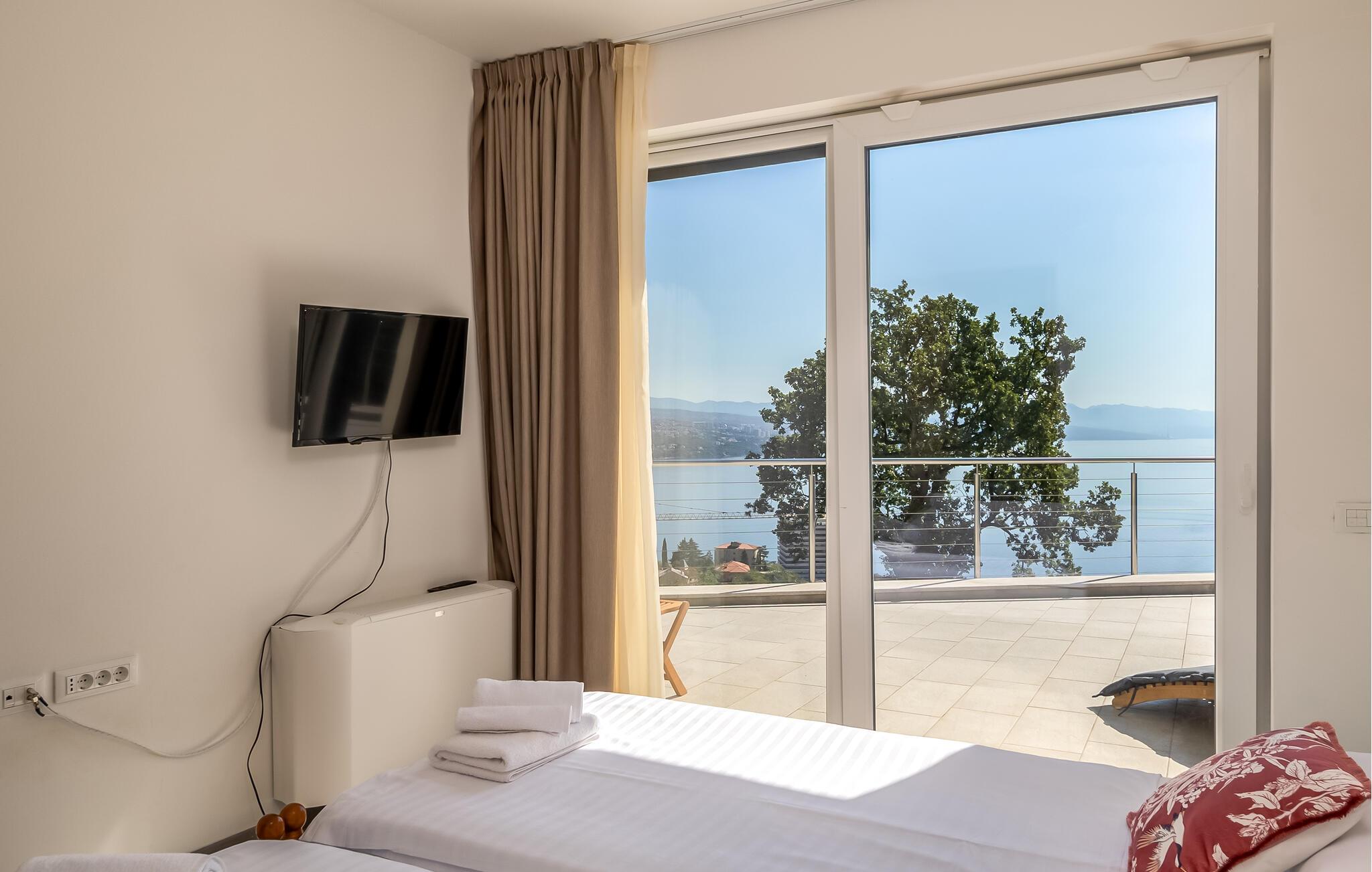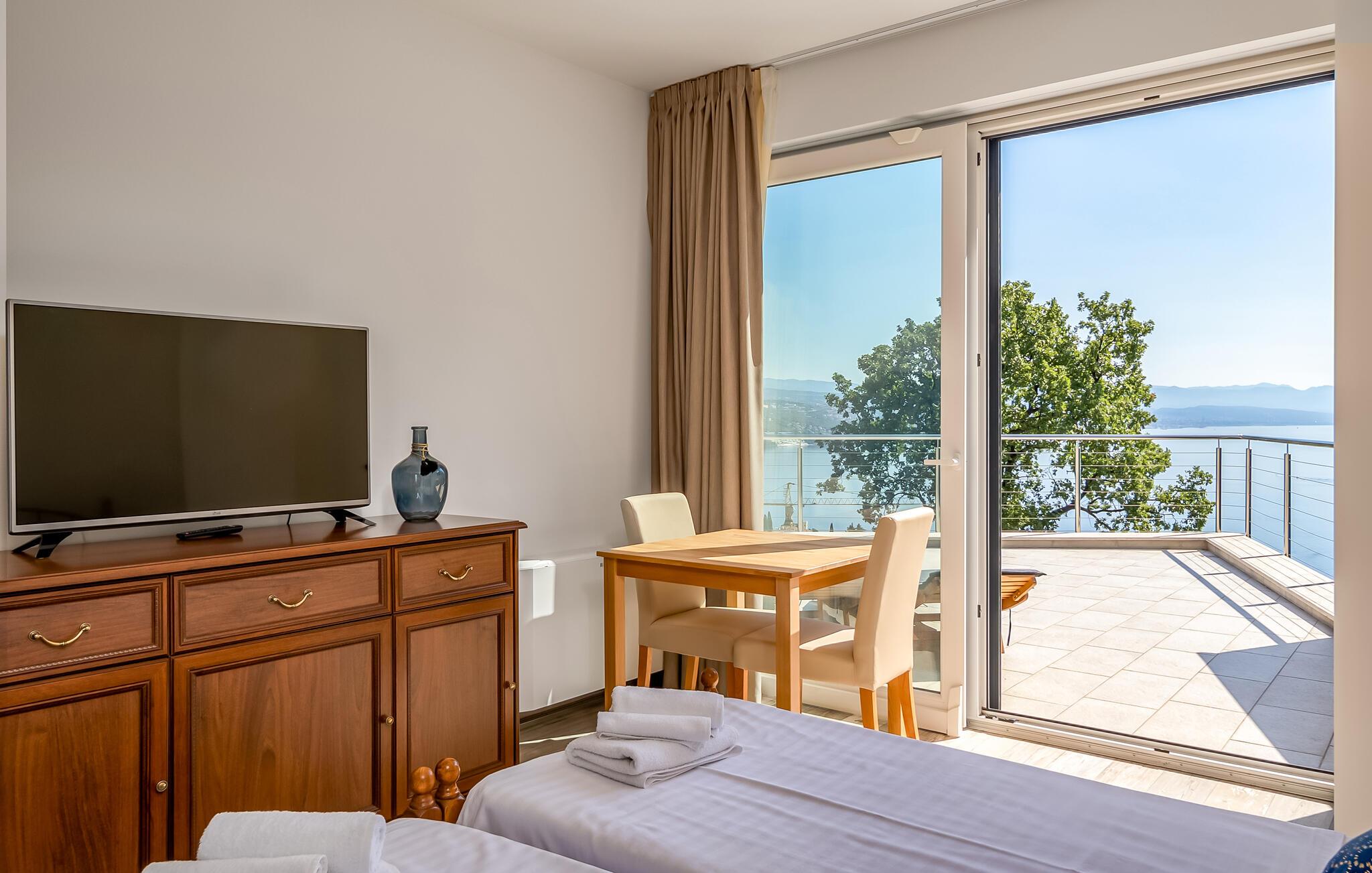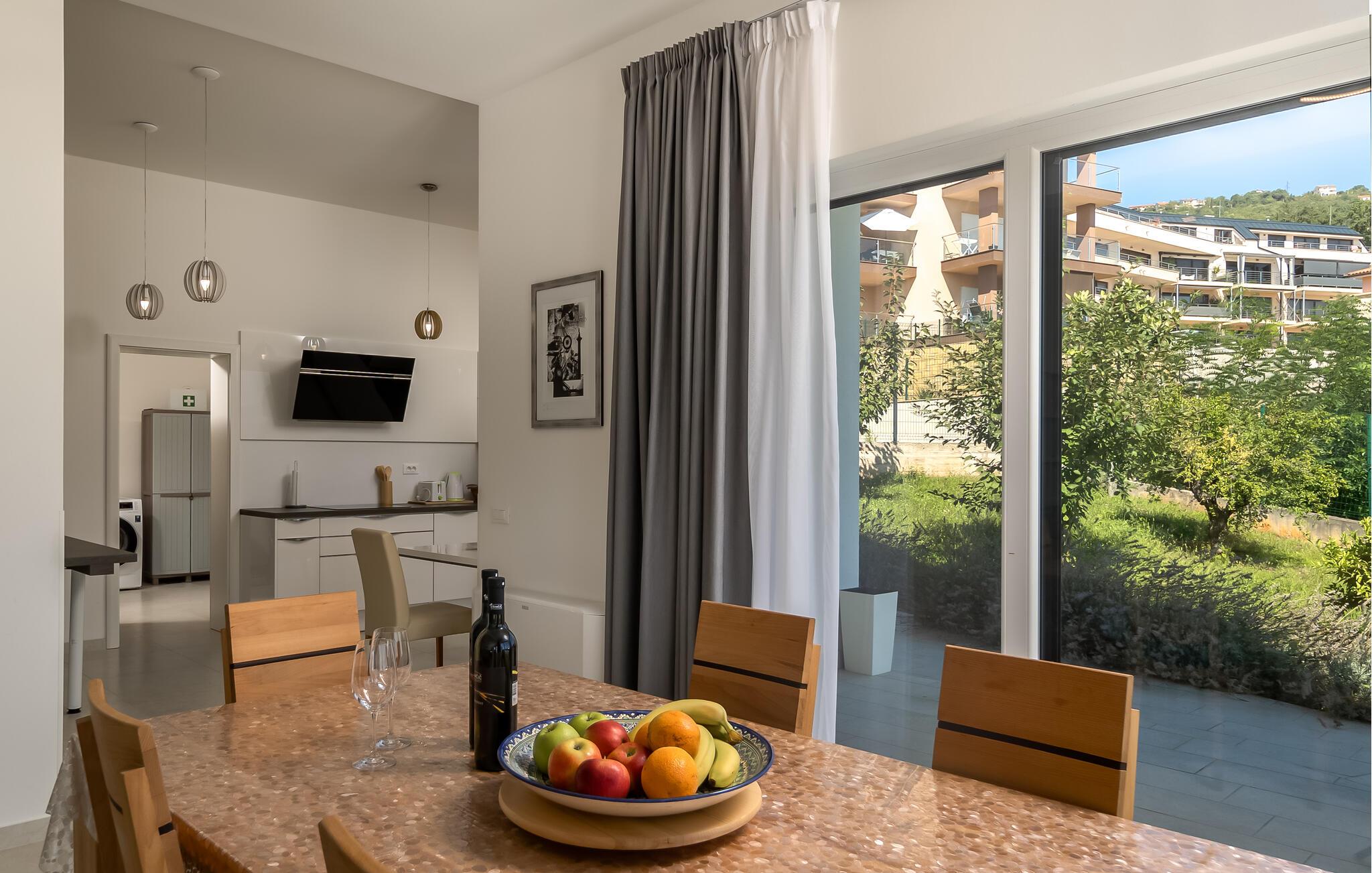 Stranden ligger kun en kort gåtur væk og lægger op til at svømme, solbade og tilbringe afslappende timer ved vandet. Oplev den elegante by Opatija med dens storslåede villaer, den berømte Lungomare-promenade og de mange restauranter, der serverer regionale retter. Tag på udflugter til Kvarnerbugten, besøg de maleriske øer eller nyd nogle afslappende timer i et af byens berømte wellnesscentre.