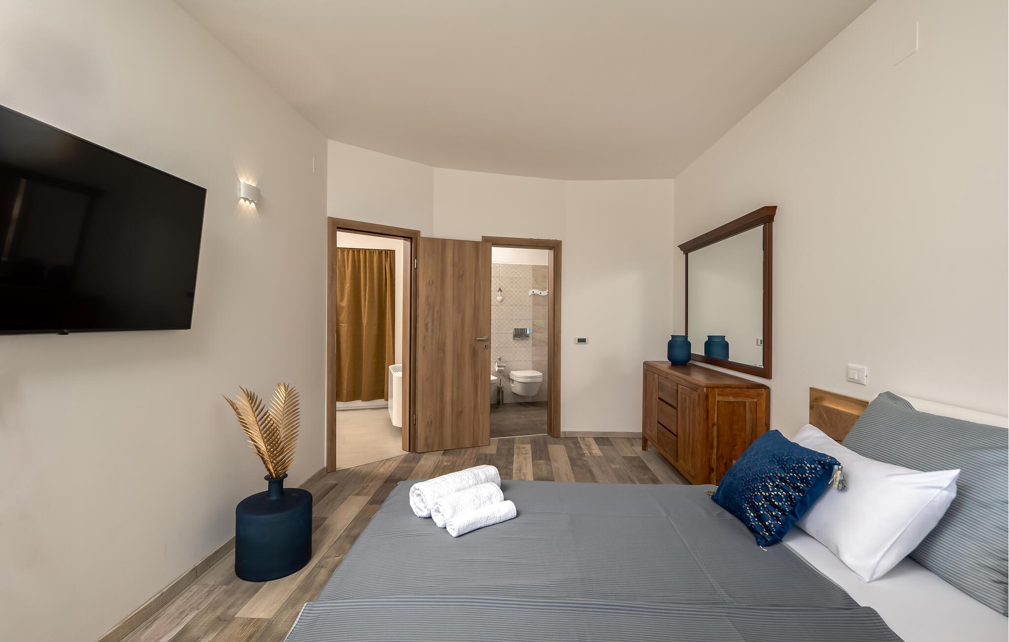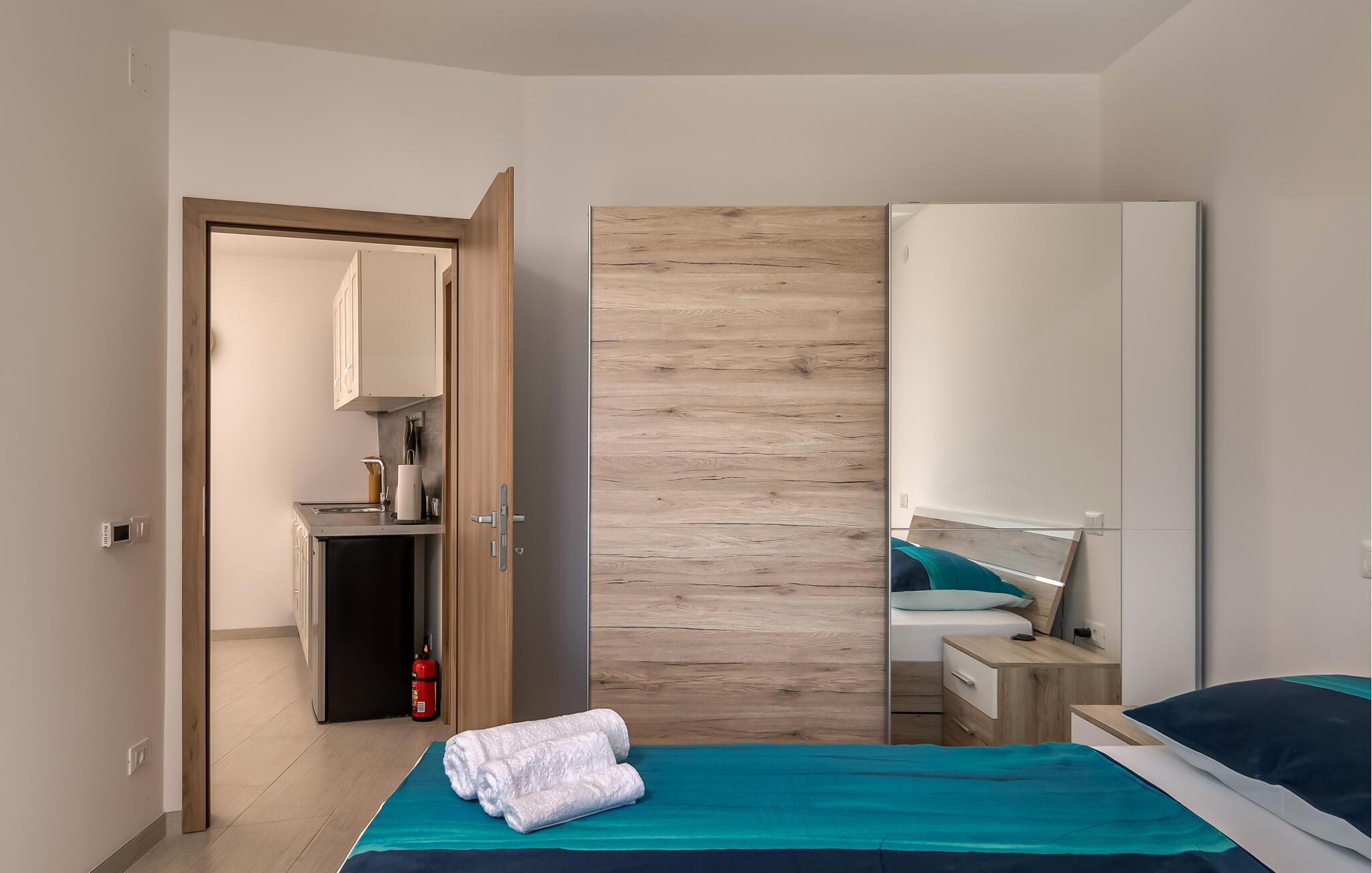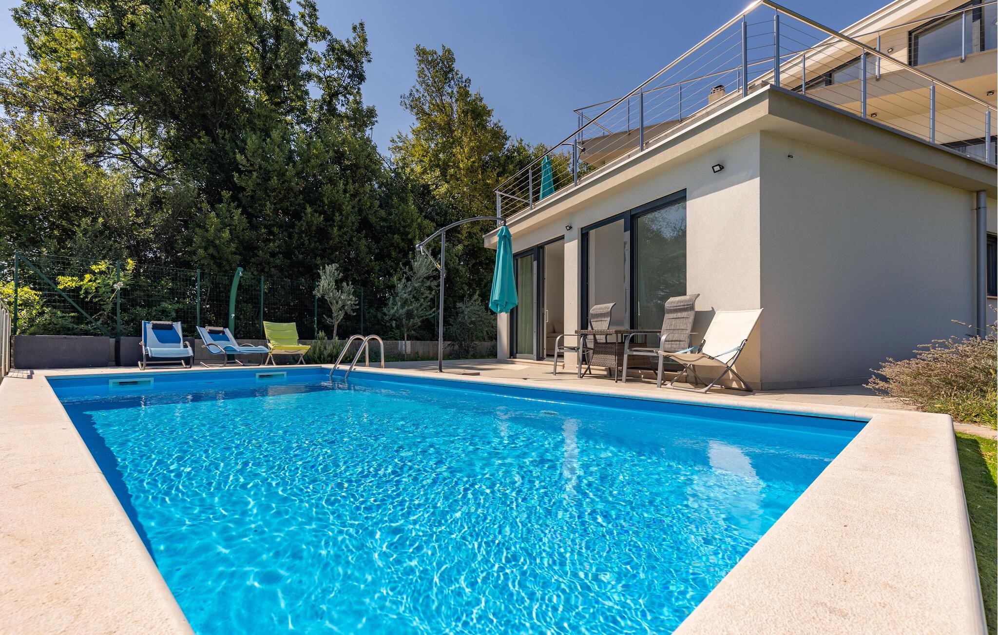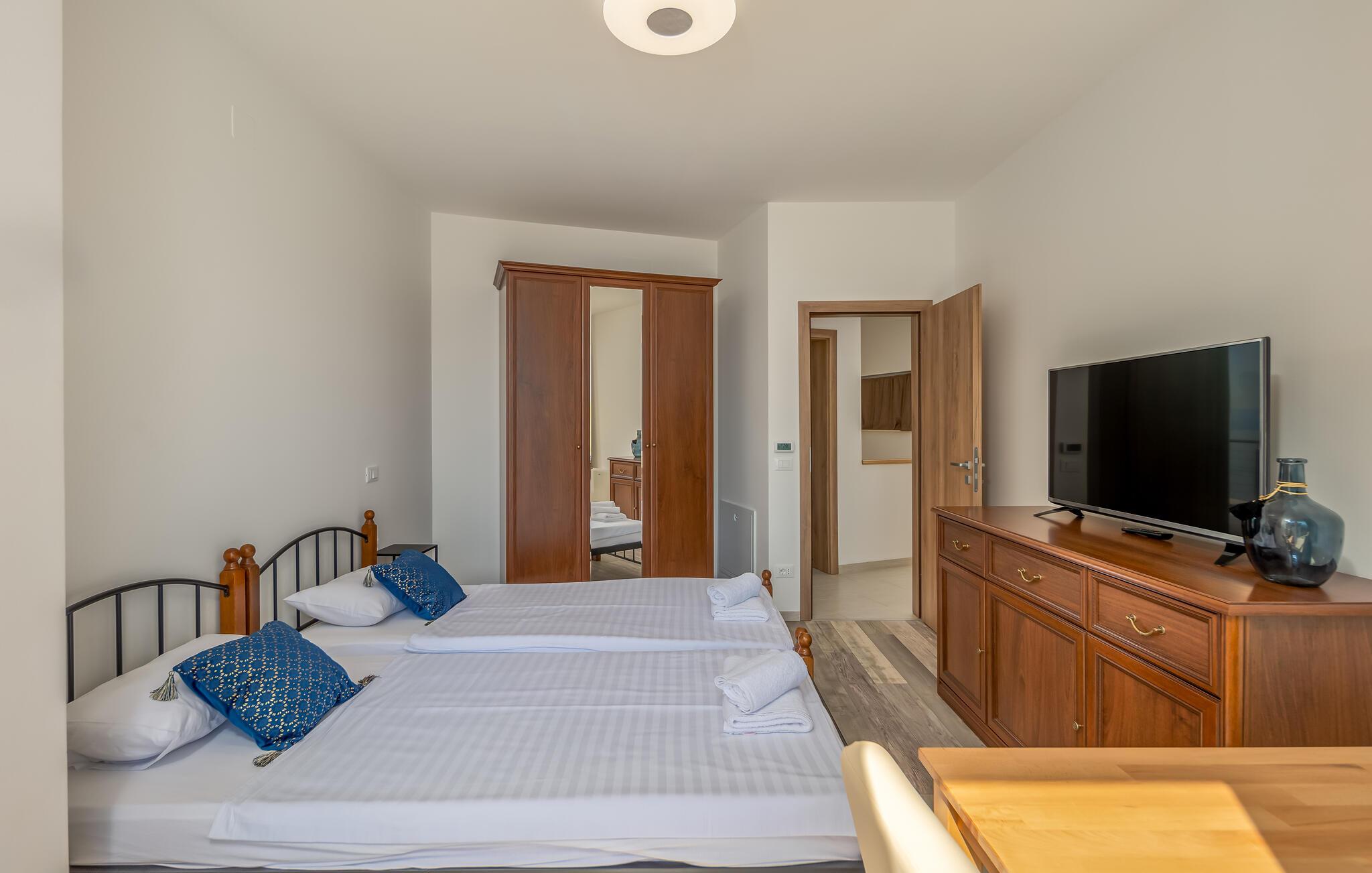 Stranden ligger kun en kort gåtur væk og lægger op til at svømme, solbade og tilbringe afslappende timer ved vandet. Oplev den elegante by Opatija med dens storslåede villaer, den berømte Lungomare-promenade og de mange restauranter, der serverer regionale retter. Tag på udflugter til Kvarnerbugten, besøg de maleriske øer eller nyd nogle afslappende timer i et af byens berømte wellnesscentre.