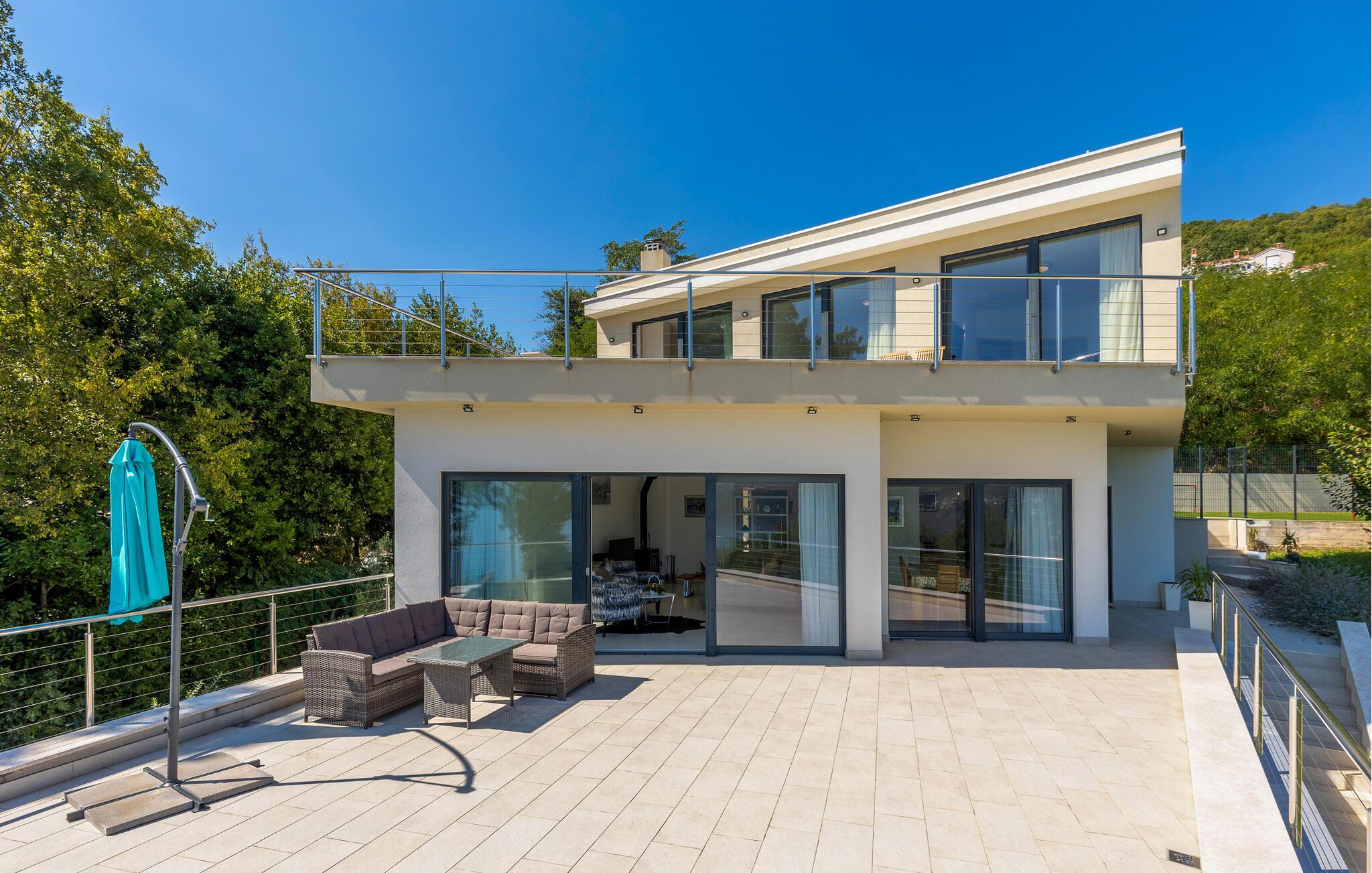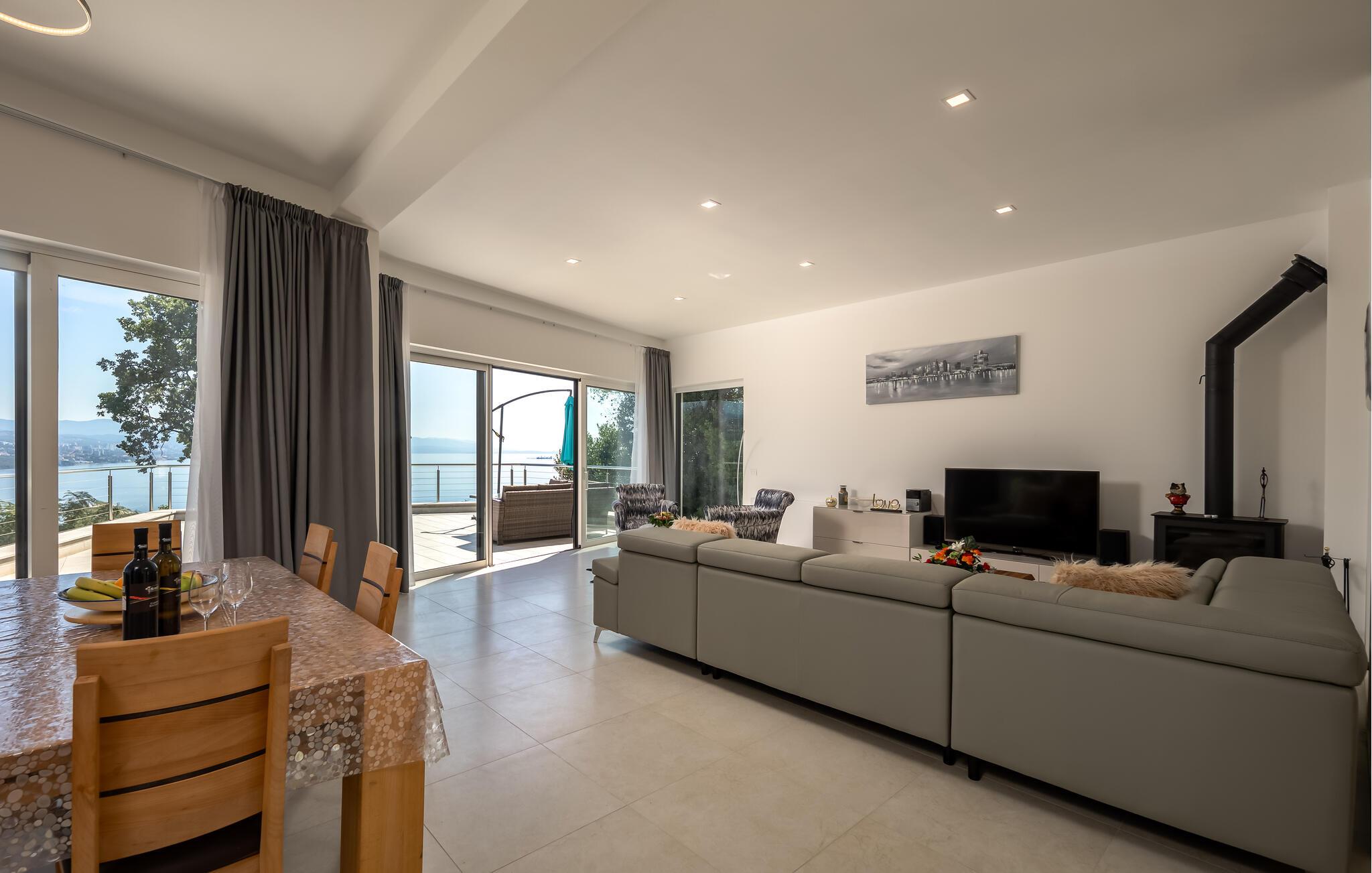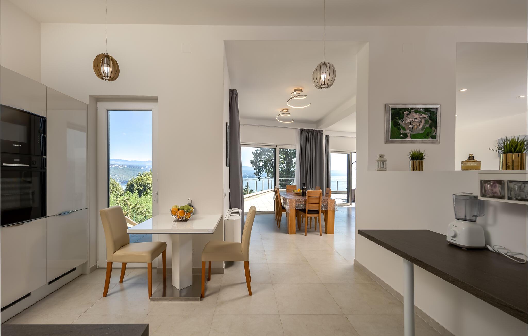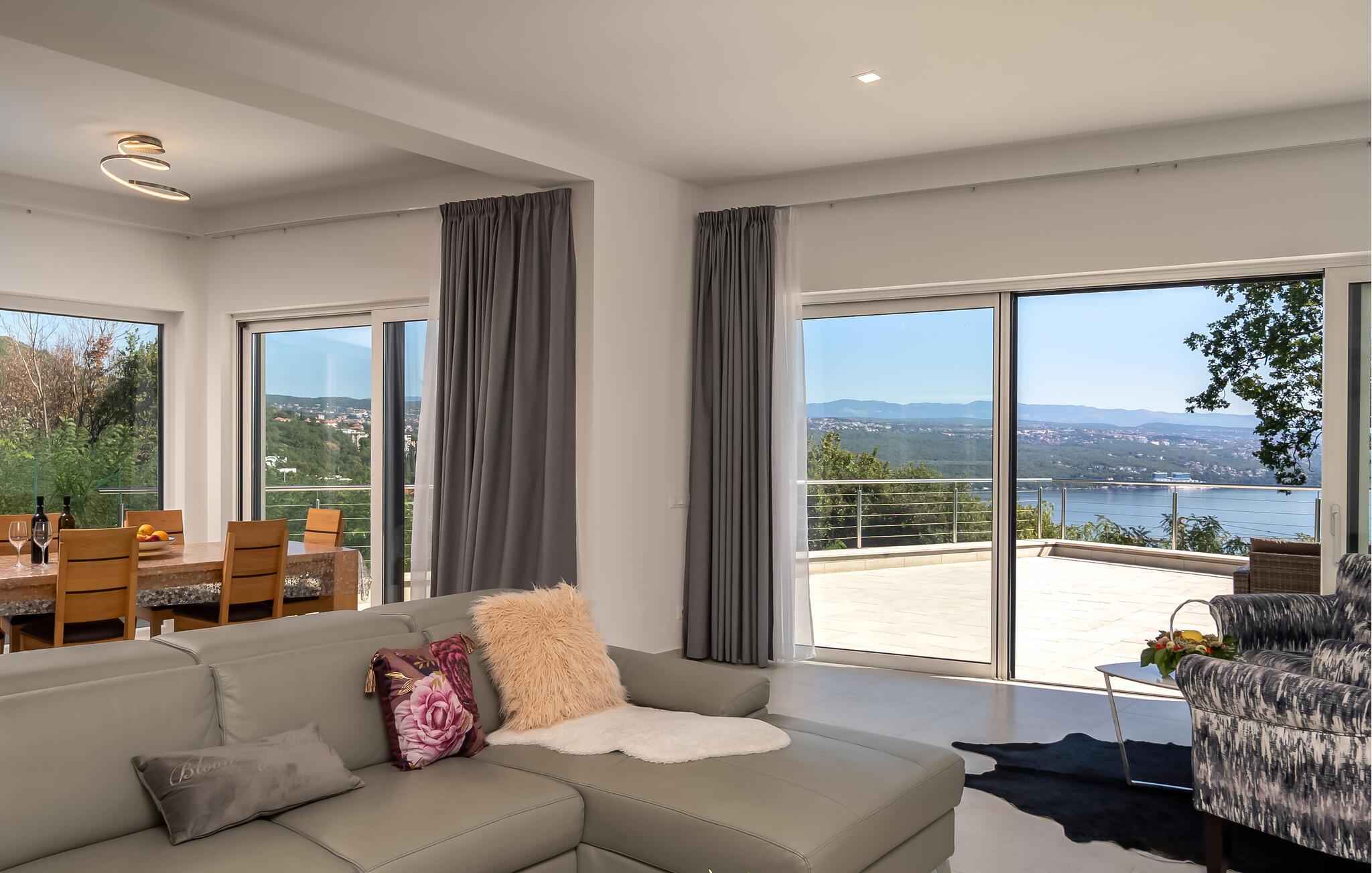 Dette komfortable hus lægger op til en førsteklasses ferie. Lyse, rummelige værelser, elegante indretningsløsninger og omhyggeligt udvalgte detaljer skaber en behageligt beroligende atmosfære. Tilbring en afslappende eftermiddag på sofaen og nyd panoramaudsigten over Kvarnerbugten. Eller tilbered friske måltider i det moderne køkken – de smager især lækkert med et godt glas vin.