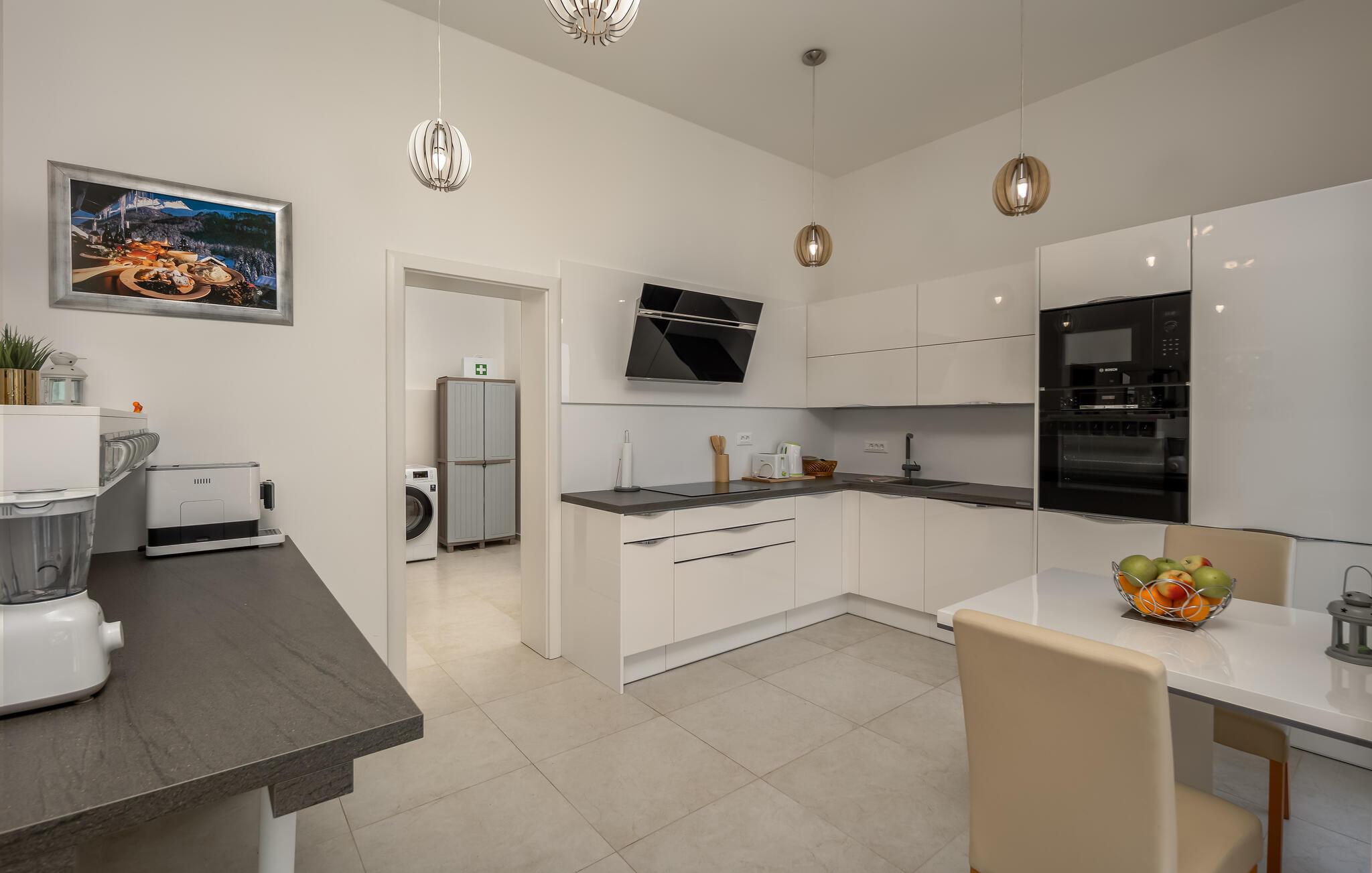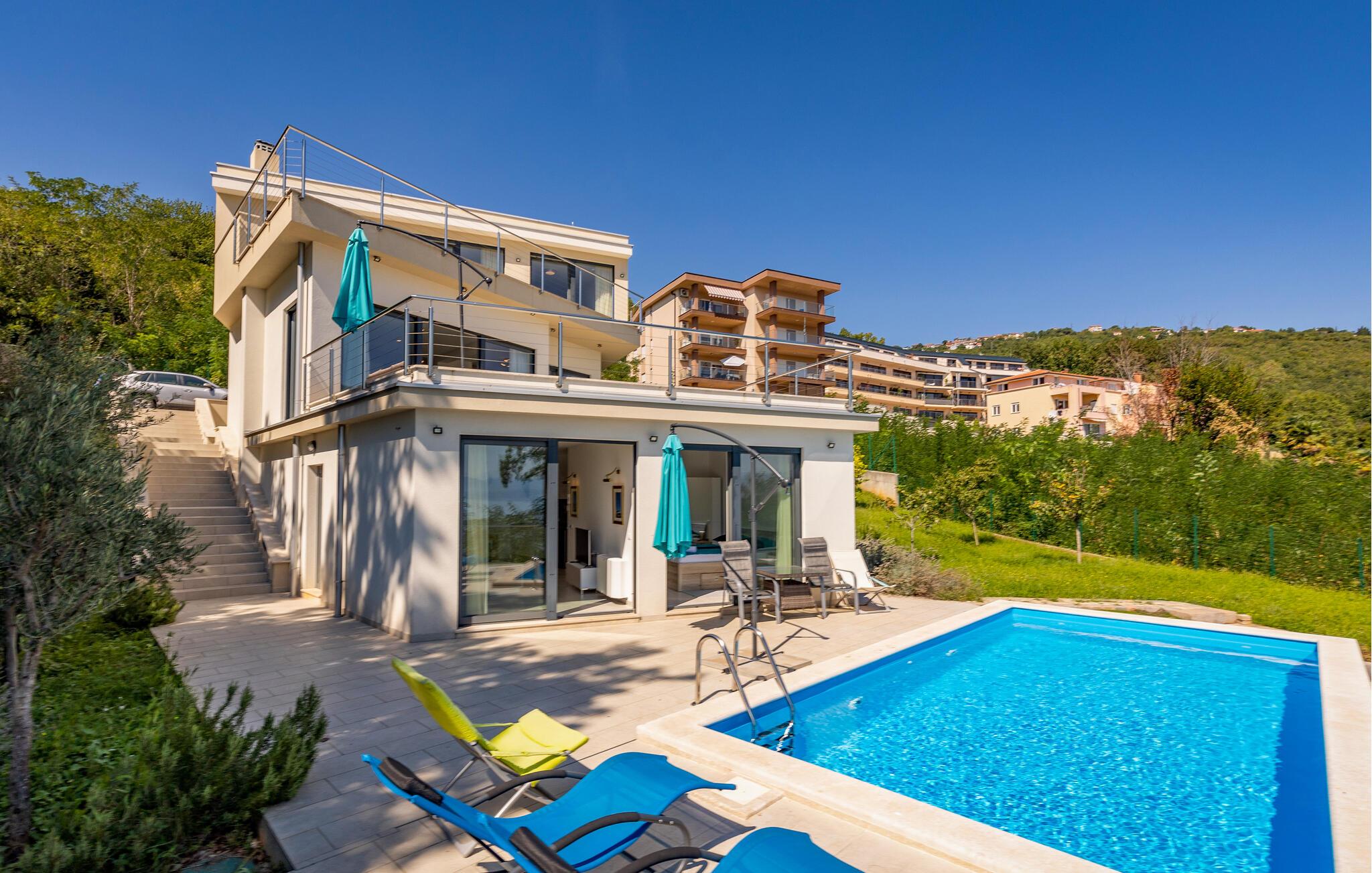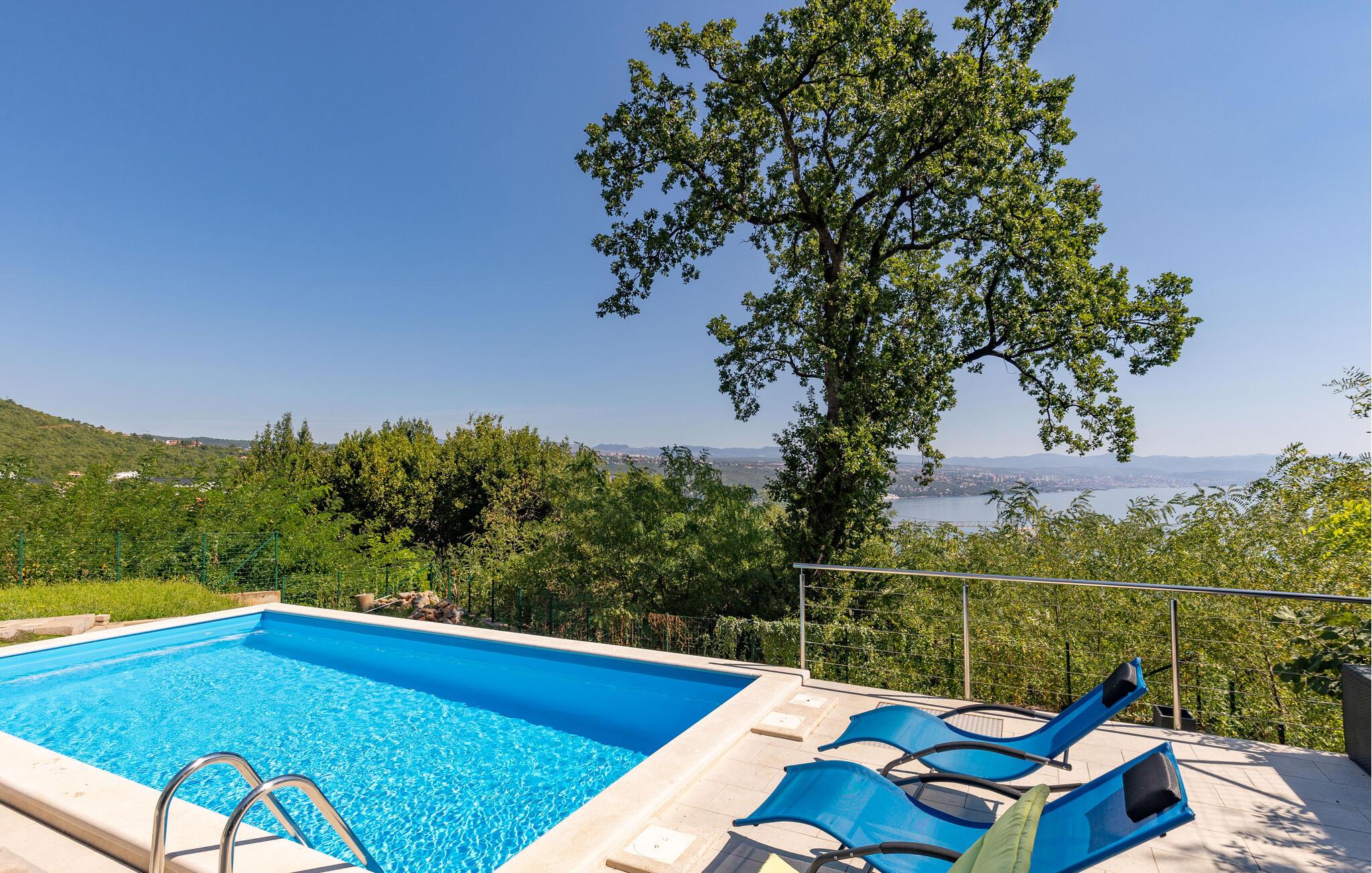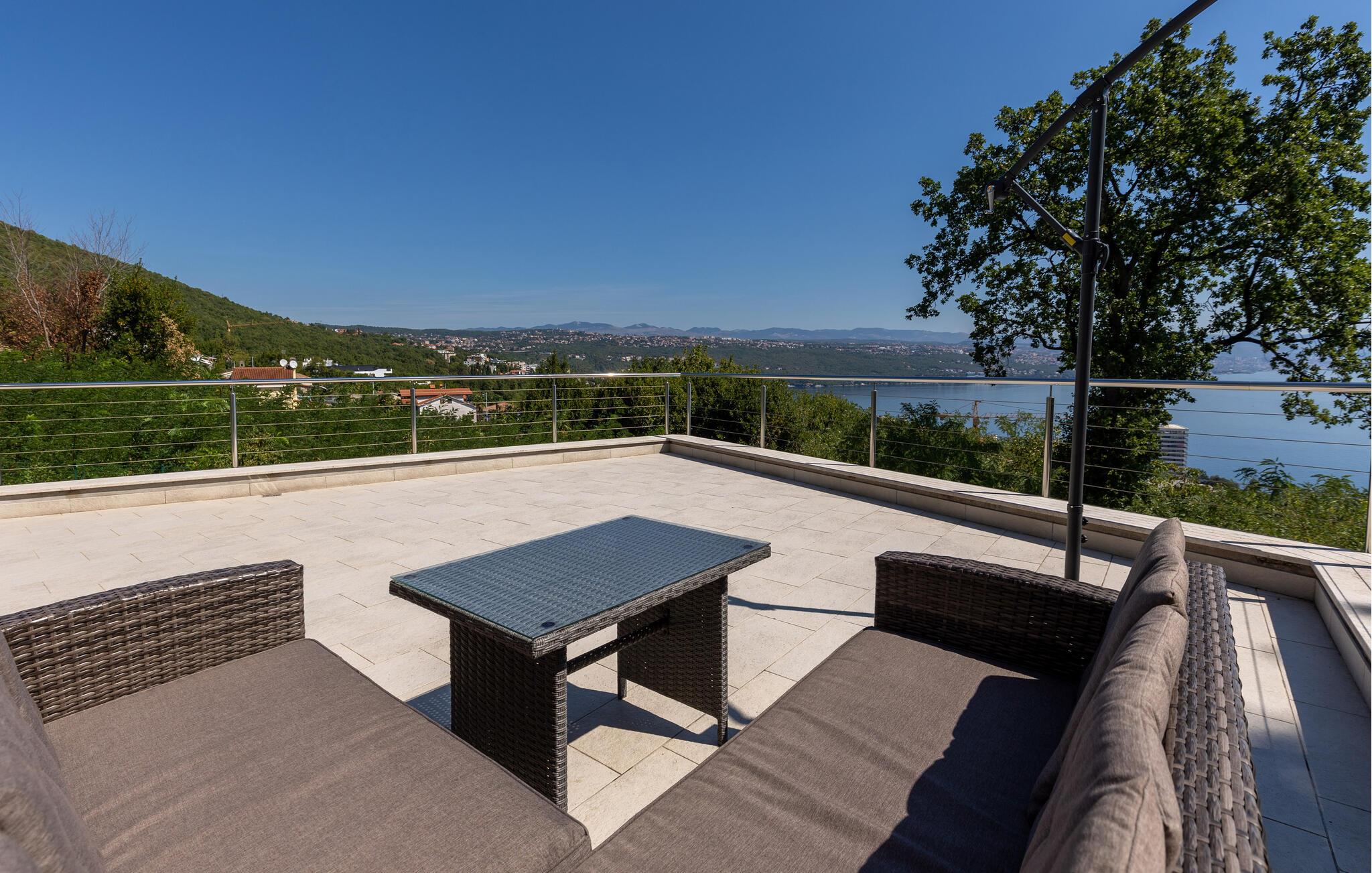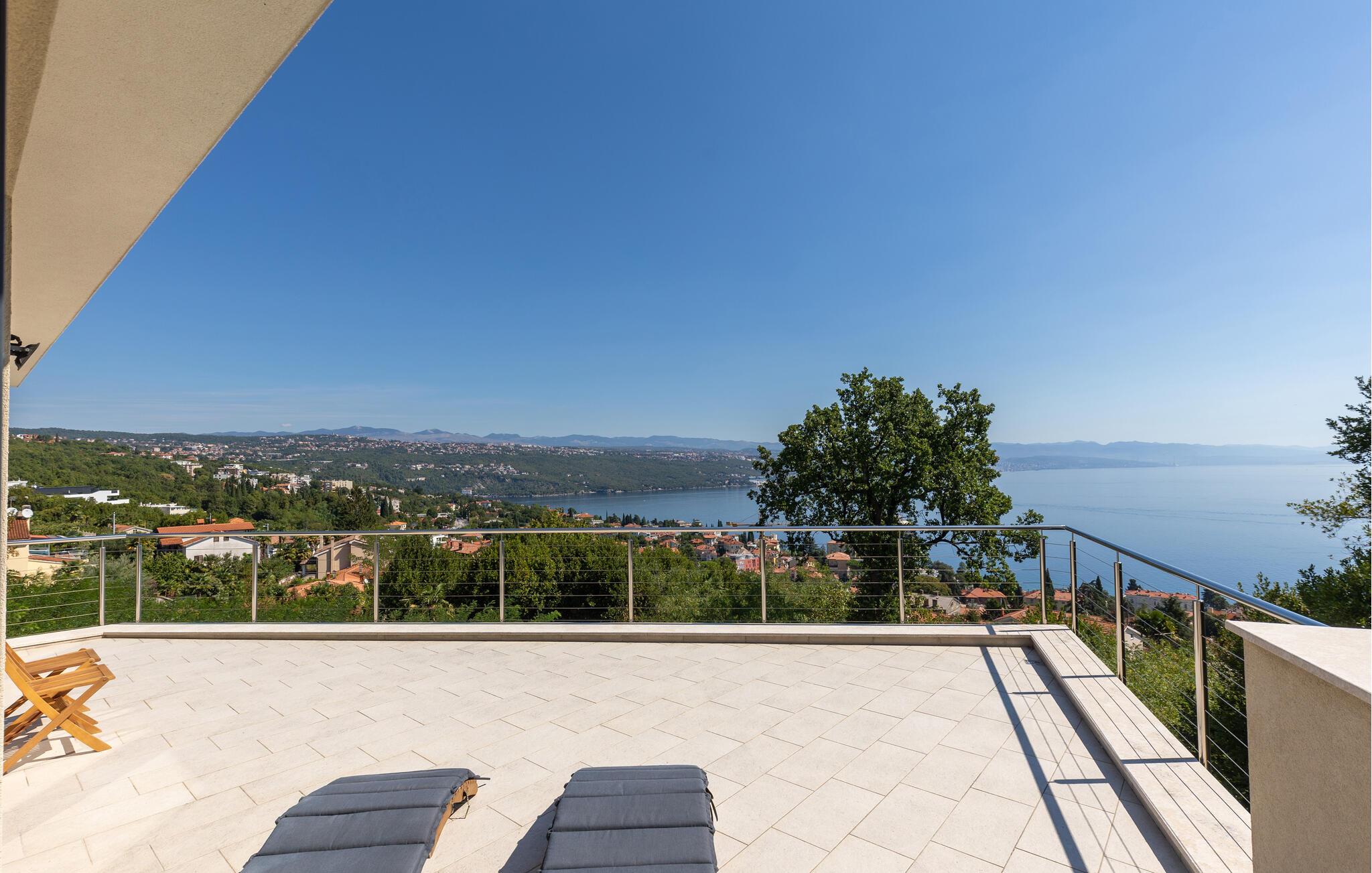 Dette komfortable hus lægger op til en førsteklasses ferie. Lyse, rummelige værelser, elegante indretningsløsninger og omhyggeligt udvalgte detaljer skaber en behageligt beroligende atmosfære. Tilbring en afslappende eftermiddag på sofaen og nyd panoramaudsigten over Kvarnerbugten. Eller tilbered friske måltider i det moderne køkken – de smager især lækkert med et godt glas vin.