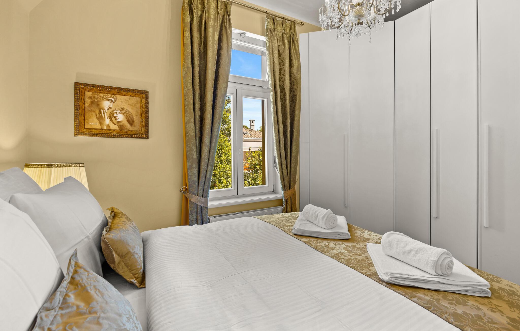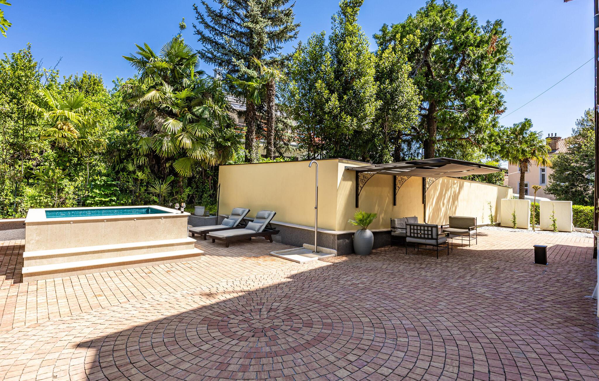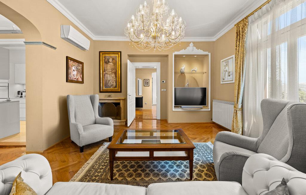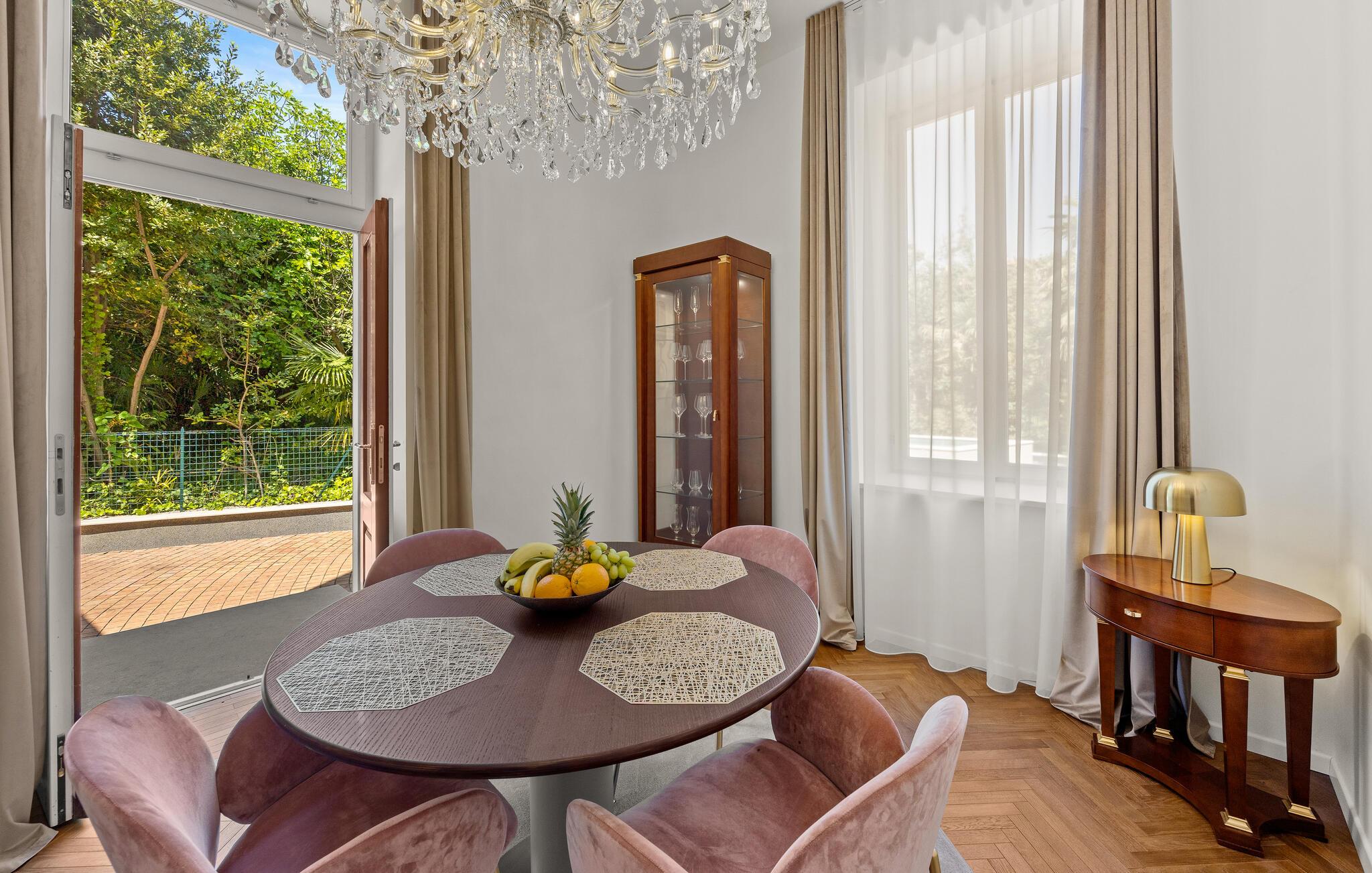 Tilbring en uforglemmelig ferie i dette luksuriøse feriehus med pool, der ligger meget tæt på stranden. Denne majestætiske villa lover en ferie af fineste kvalitet. Fint parketgulv, stilfulde møbler og elegante lysekroner skaber en rolig atmosfære, hvor I straks kan slappe af og genoplade batterierne. Smukke detaljer tilføjer et personligt præg. Læn jer tilbage i den komfortable sofagruppe, nyd et glas vin, og overgiv jer fuldstændig til den afslappende feriefølelse. Træd ud på den smukke terrasse om morgenen med en duftende kaffe og sæt jer ned under den grønne pergola. Nyd udsigten over den omhyggeligt anlagte have, mens I nyder en let morgenmad. For en forfriskende dukkert i poolen kan I altid tage en dukkert i poolen. Om aftenen kan I samles på terrassen, tænde grillen og afslutte dagen i fuldstændig afslapning under stjernehimlen. Havet ligger kun et stenkast væk og inviterer jer til en forfriskende dukkert eller afslappende timer på stranden. Gå en tur langs den berømte Lungomare-promenade og nyd udsigten over den storslåede Kvarnerbugt. Oplev den elegante by Opatija med dens storslåede villaer, velplejede parker og hyggelige caféer. Tag på udflugter til de grønne bakker i baglandet og prøv regionale specialiteter på traditionelle taverner.