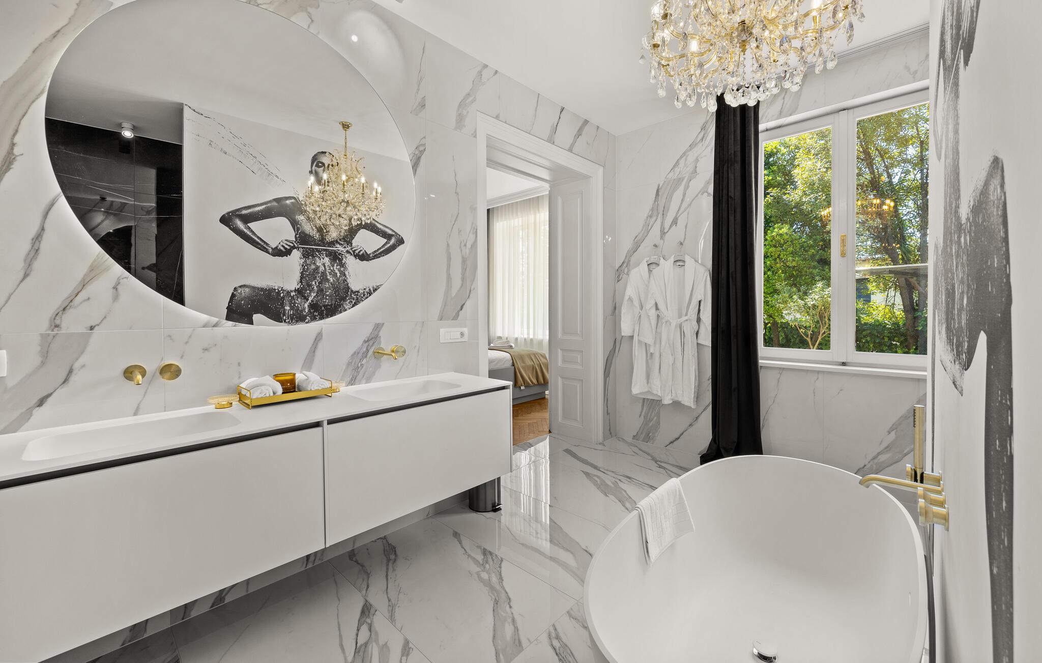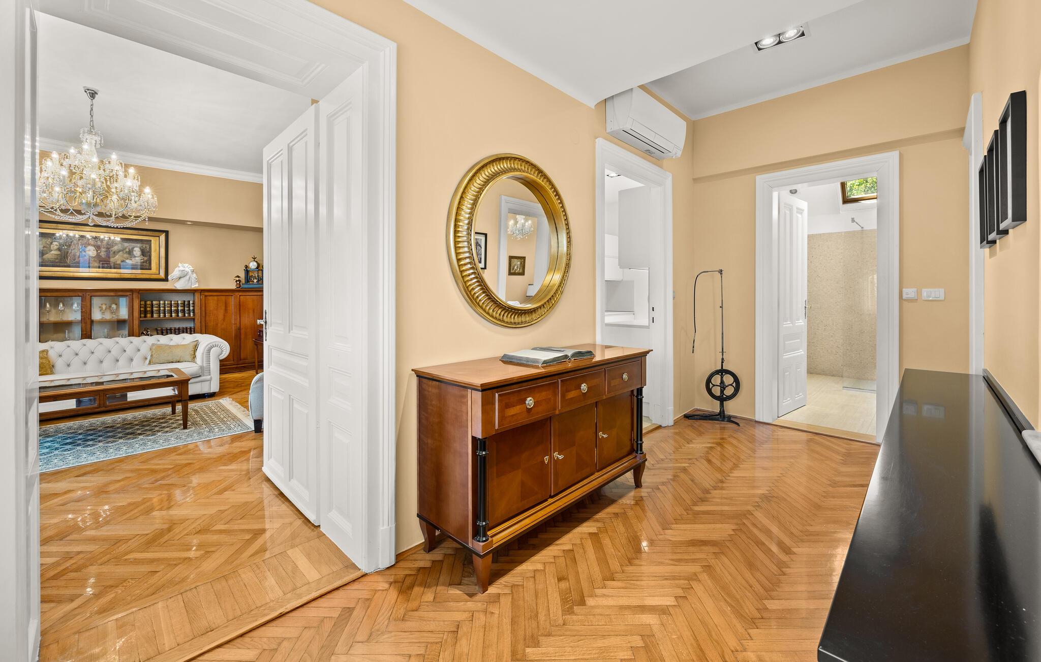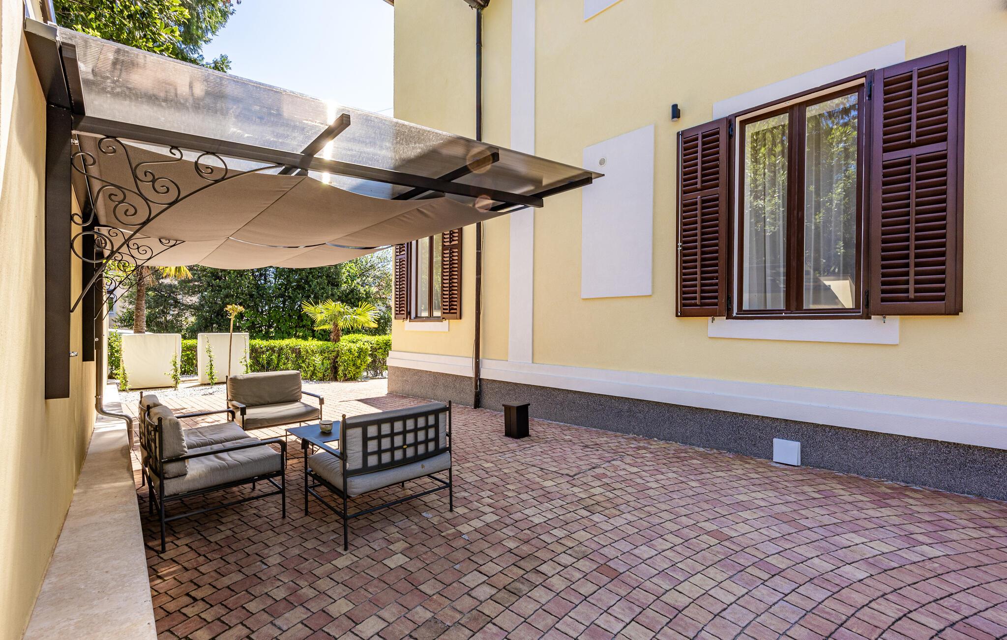 Tilbring en uforglemmelig ferie i dette luksuriøse feriehus med pool, der ligger meget tæt på stranden. Denne majestætiske villa lover en ferie af fineste kvalitet. Fint parketgulv, stilfulde møbler og elegante lysekroner skaber en rolig atmosfære, hvor I straks kan slappe af og genoplade batterierne. Smukke detaljer tilføjer et personligt præg. Læn jer tilbage i den komfortable sofagruppe, nyd et glas vin, og overgiv jer fuldstændig til den afslappende feriefølelse. Træd ud på den smukke terrasse om morgenen med en duftende kaffe og sæt jer ned under den grønne pergola. Nyd udsigten over den omhyggeligt anlagte have, mens I nyder en let morgenmad. For en forfriskende dukkert i poolen kan I altid tage en dukkert i poolen. Om aftenen kan I samles på terrassen, tænde grillen og afslutte dagen i fuldstændig afslapning under stjernehimlen. Havet ligger kun et stenkast væk og inviterer jer til en forfriskende dukkert eller afslappende timer på stranden. Gå en tur langs den berømte Lungomare-promenade og nyd udsigten over den storslåede Kvarnerbugt. Oplev den elegante by Opatija med dens storslåede villaer, velplejede parker og hyggelige caféer. Tag på udflugter til de grønne bakker i baglandet og prøv regionale specialiteter på traditionelle taverner.
