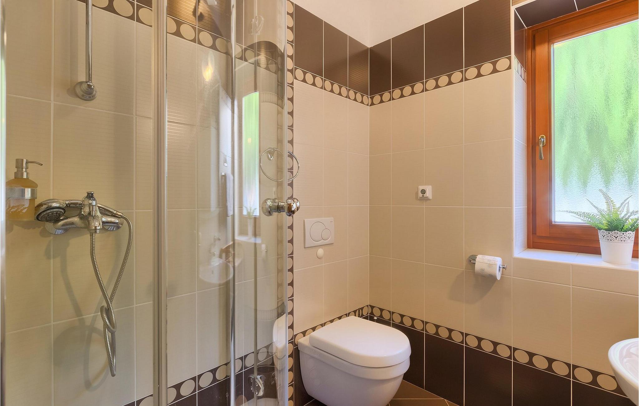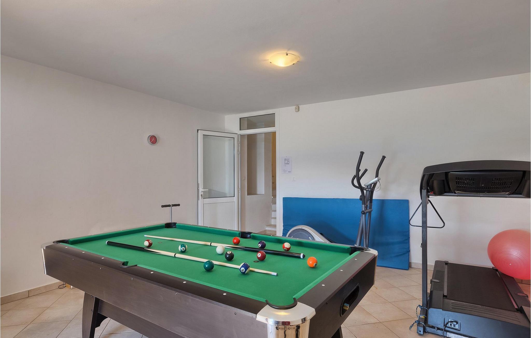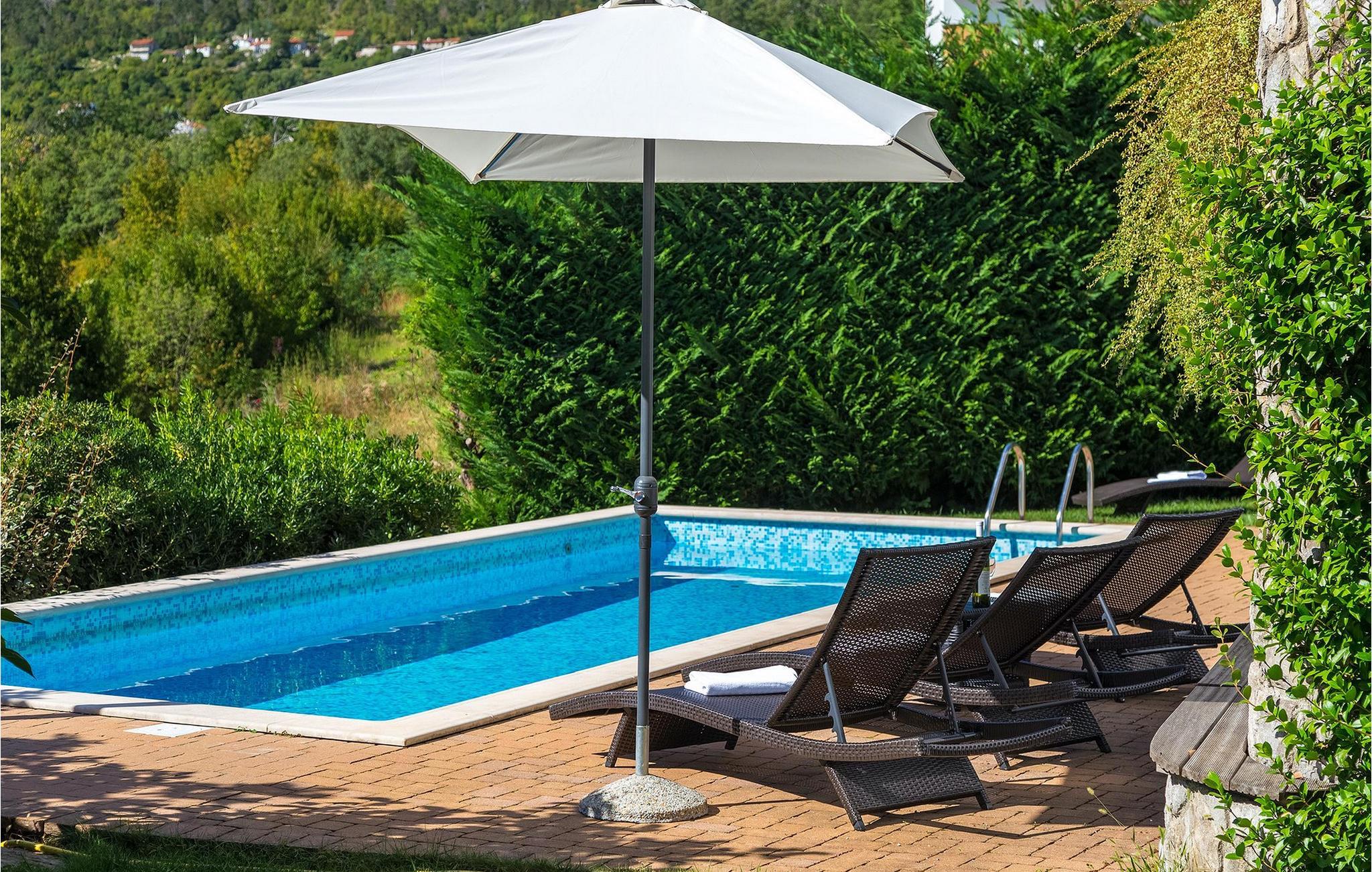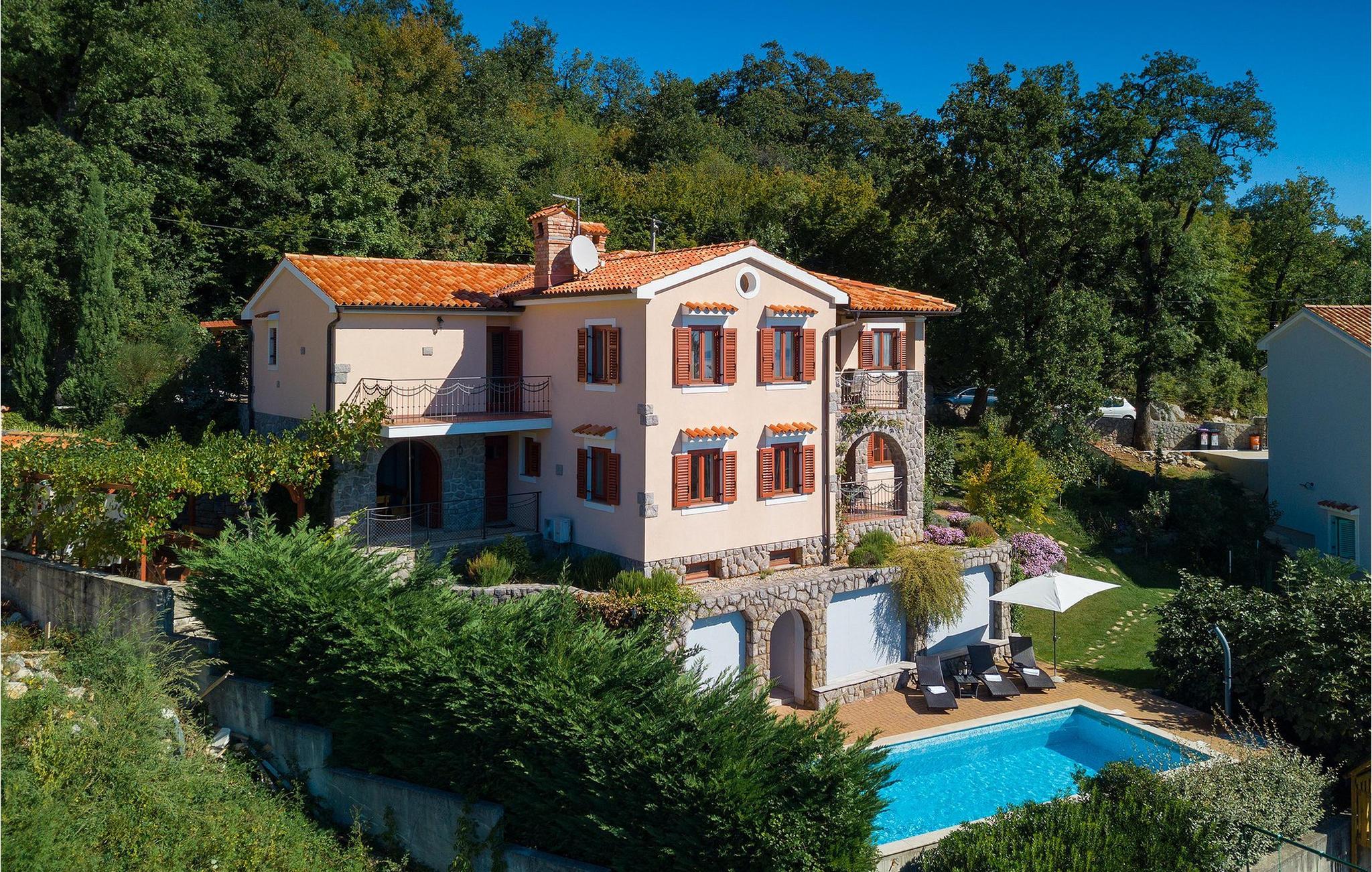 Omgivet af Kvarner-bugten fra forsiden og Ucka-bjerget i baggrunden, er placeringen af Villa Opatija intet mindre end fantastisk. Villaen kan rumme op til 8 gæster, der er i for en rigtig godbid. Hovedindgangen fører dig til første sal, hvor du finder en hyggelig og lun stue. Fra balkonen kan du nyde den betagende udsigt over omgivelserne. På denne etage finder du også et soveværelse udstyret med en dobbeltseng, et badeværelse og et veludstyret køkken med spiseplads. 3 resterende værelser og 2 badeværelser er fordelt over stueetagen. Der er også en typisk kroatisk "konoba" på denne etage, hvor hele gruppen kan tilbringe tid sammen. Villaens nederste etage er ideel for dem, der kan lide det "ekstra strejf af luksus" i deres feriehuse. Du kan forblive aktiv og træne i dit eget private fitnesscenter eller slappe af i villaens sauna. Denne etage har direkte udgang til poolområdet samt haven. Nyd solen ved poolen eller spis al fresco på villaens terrasse. Denne villa giver virkelig alt, hvad du kan ønske dig på din ferie! Veprinac, en lille bakketop by nær Opatija, var engang et populært turistcenter blandt besøgende fra hele Europa. Oprindelsen af navnet Veprinac er normalt forbundet med det kroatiske ord for slagterkost, en plante som vokser rigeligt i området. Gå en tur gennem byen og nyd en kop kaffe, mens du har udsigt over hele Kvarnerbugten. Veprinac ligger kun en kort køretur fra Opatija, en fantastisk kystby med smuk arkitektur og behageligt og mildt klima. Opatija har den længste historie inden for turisme i Kroatien, der går helt tilbage til det 19. århundrede, hvor det habsburgske dynasti forvandlede det til et rejsemål for adelige og aristokrater. Når du er i Opatija, skal du sørge for at besøge Villa Angiolina, som markerede begyndelsen på turismen i dette område, eller gå en tur gennem parkerne St. Jakob og Park Angiolina, begge bygget i det 19. århundrede. Den bedste måde at lære området at kende er gennem Lungomare-promenaden, der strækker sig fra Preluka til Lovran og forbinder Opatija med en række mindre strande og bugter.