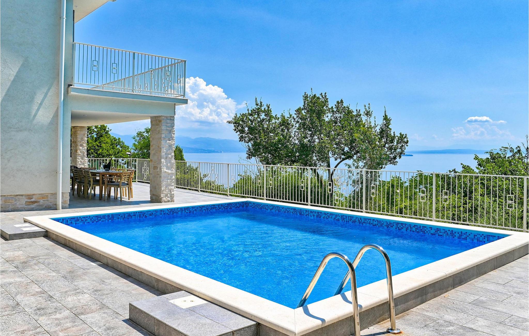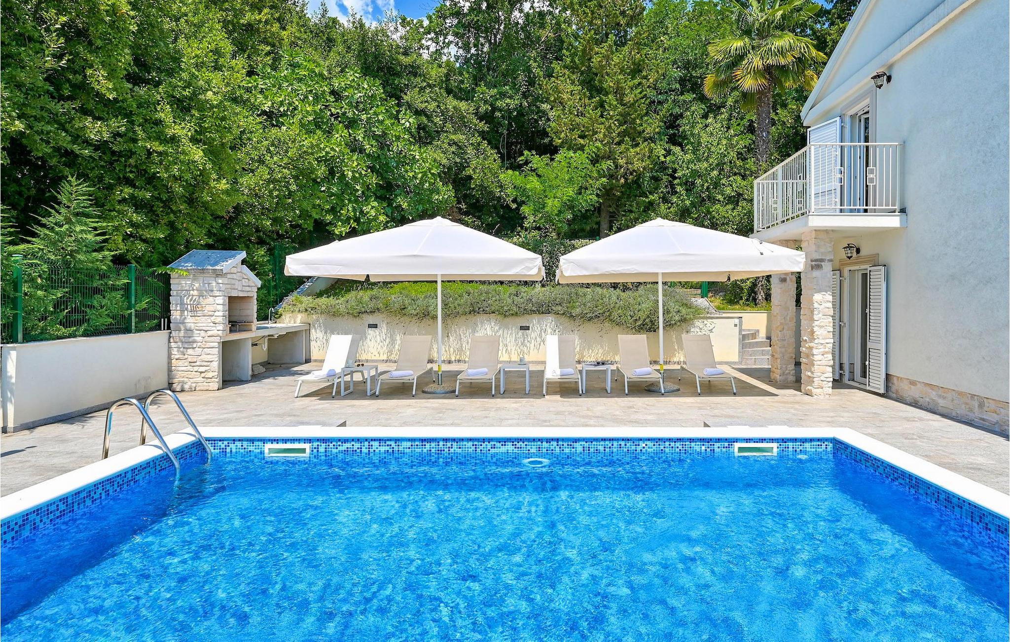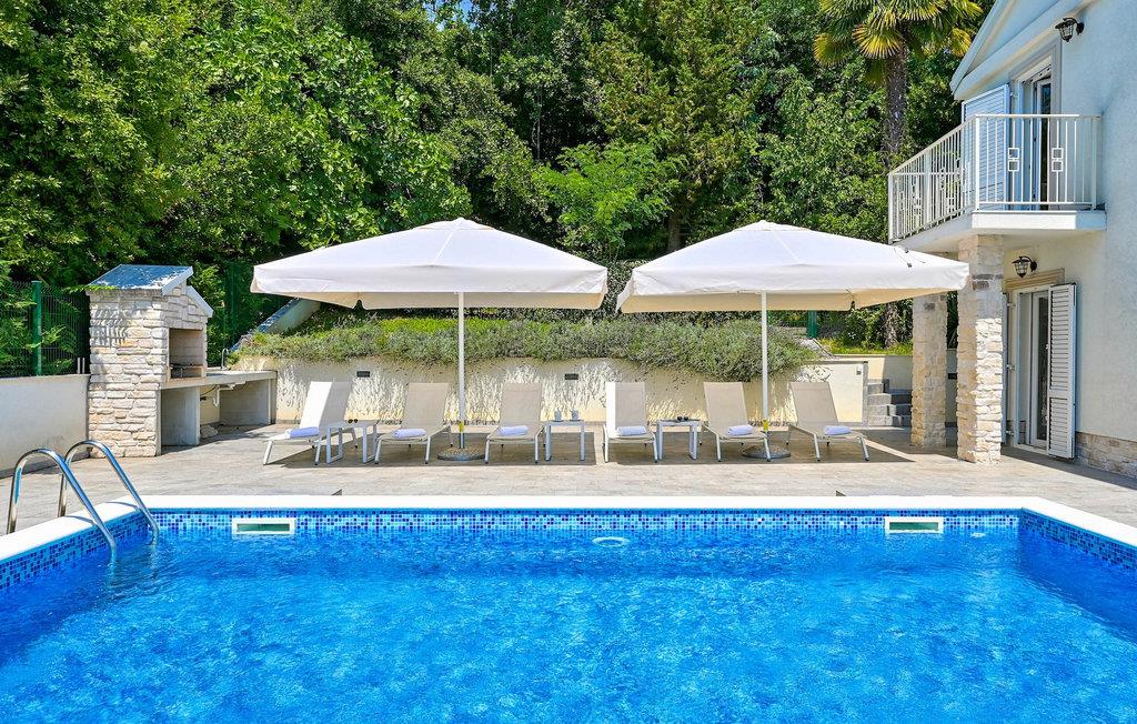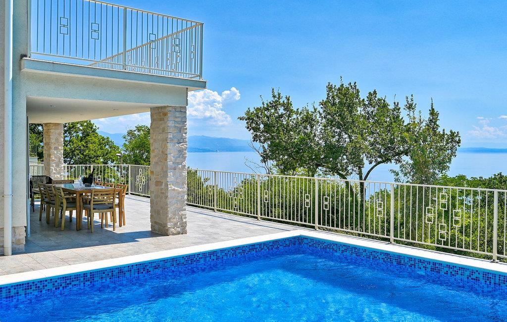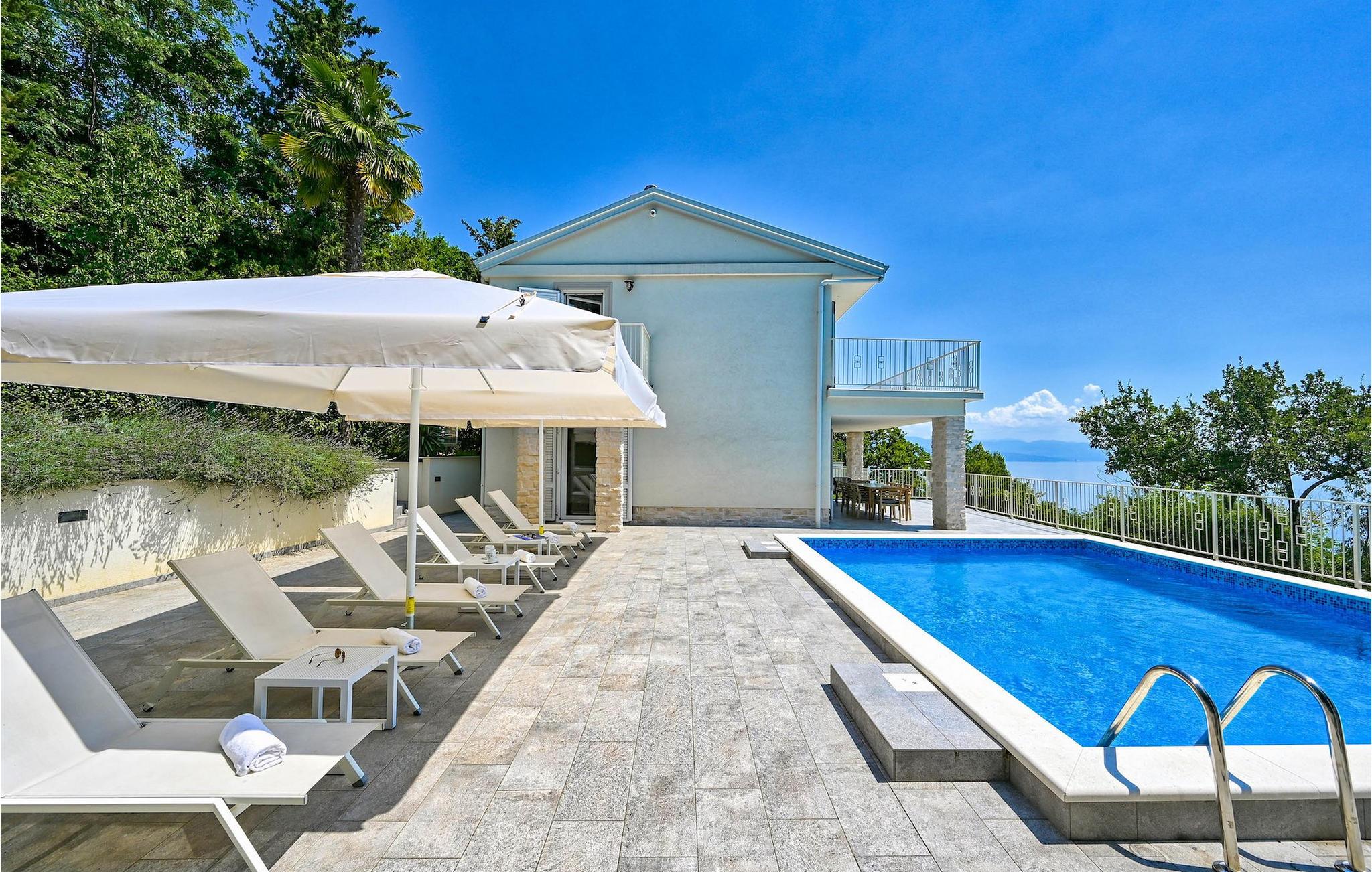 VIlla Carmen Opatija ist eine moderne Villa mit Platz für bis zu 8 Gäste in 4 komfortablen Doppelzimmern. Die Villa besteht aus 2 Einheiten. Eine Einheit befindet sich im Erdgeschoss und besteht aus einem Wohnzimmer, 1 Doppelzimmer, einer Küche und einem Badezimmer. Diese Einheit hat einen separaten Eingang und ist von innen nicht mit dem anderen Teil des Hauses verbunden. Die andere Einheit erstreckt sich über 2 Etagen. Ein Teil davon befindet sich ebenfalls im Erdgeschoss, bestehend aus einem Wohnzimmer, einer Küche und einem kleinen Gäste-WC. Eine innere Treppe führt Sie in den 1. Stock, wo sich die 3 restlichen Schlafzimmer und 1 Badezimmer befinden. Aufgrund der tollen Lage der Villa können Sie von allen Terrassen sowie vom schönen Pool den bezaubernden Meerblick genießen. Ideal für Familien, die etwas Privatsphäre genießen können, sowie gemeinsame Mahlzeiten im Freien auf der überdachten Terrasse neben dem Pool, während Sie die wunderschöne Adria genießen.
