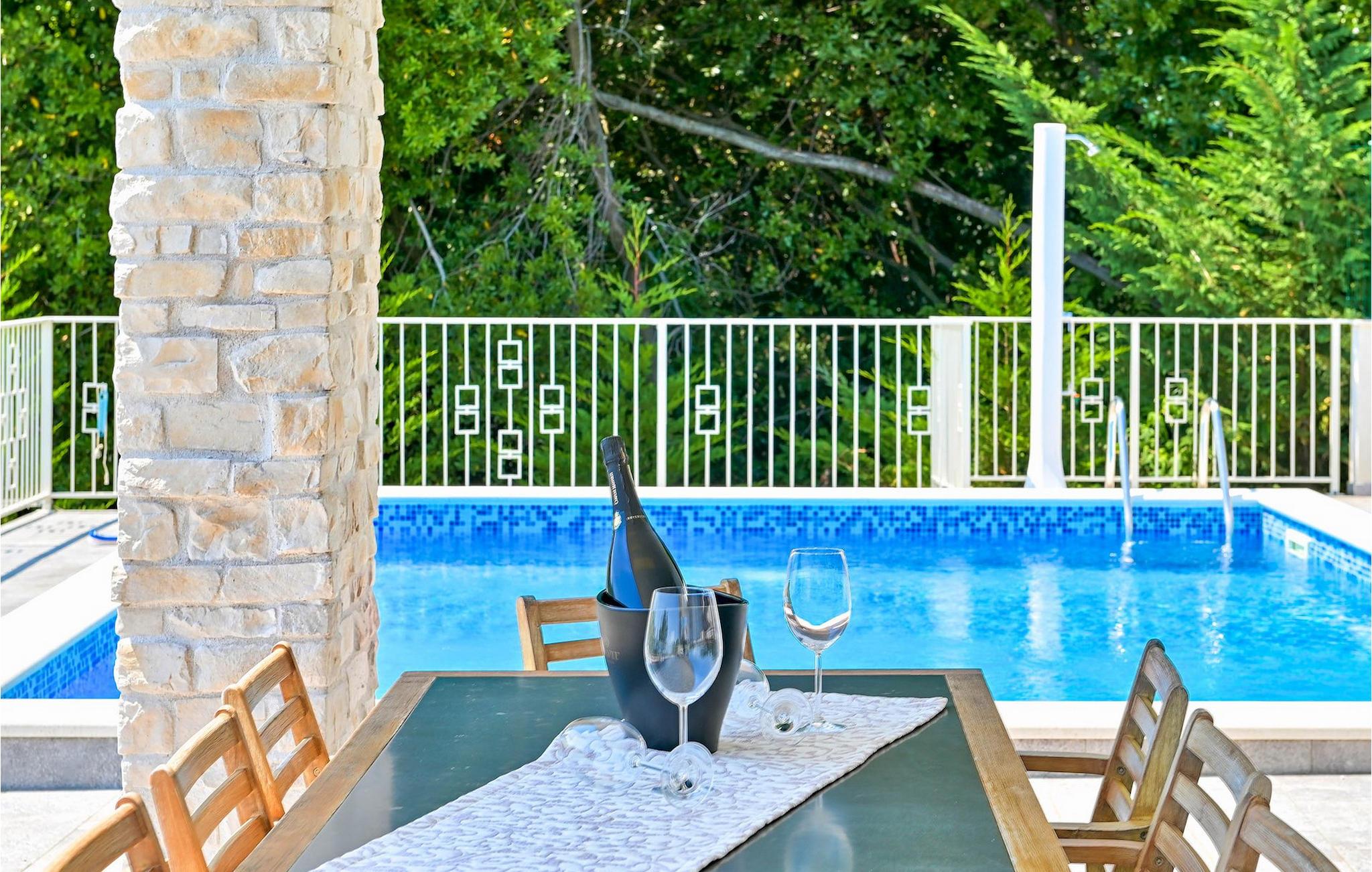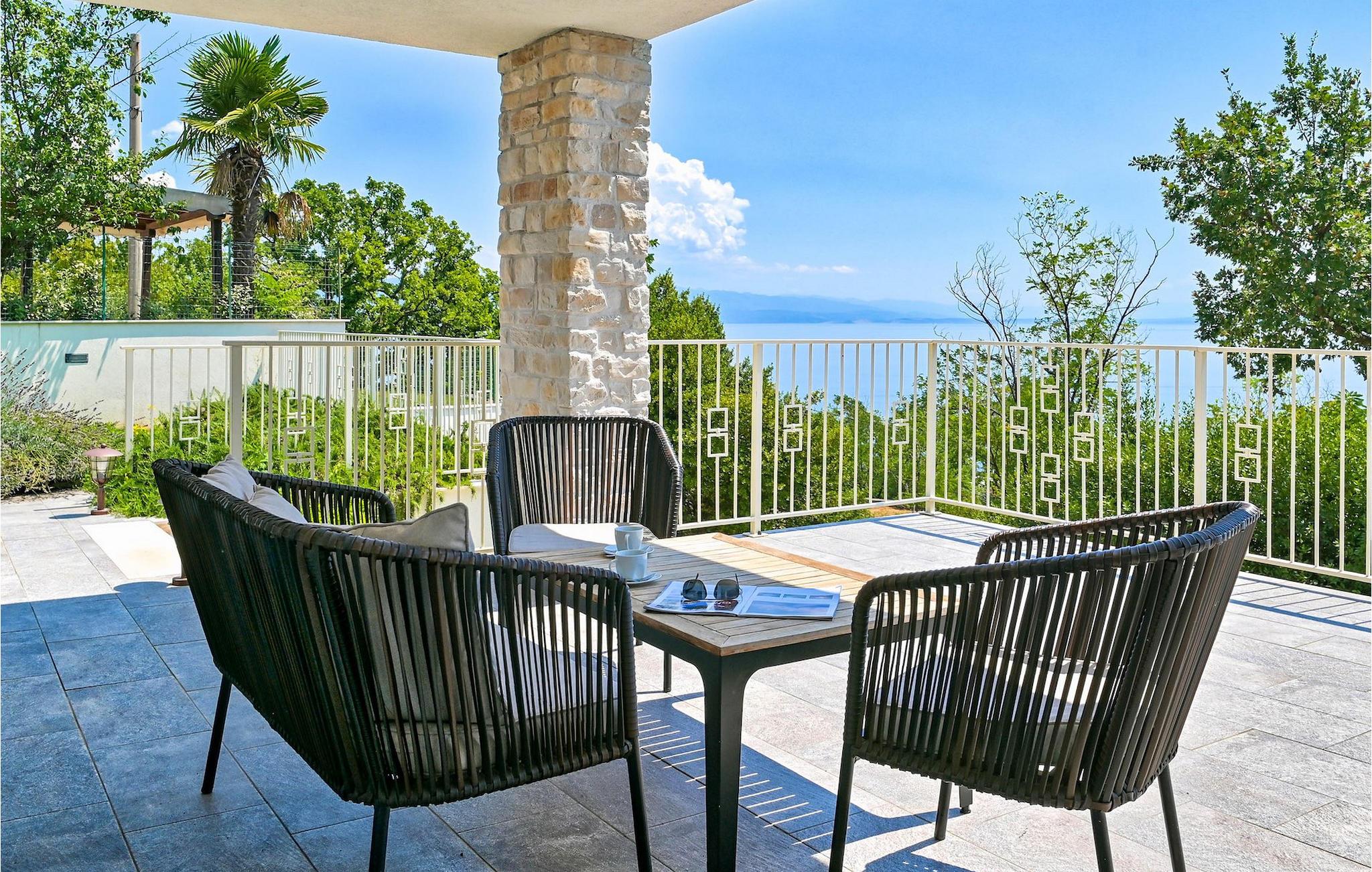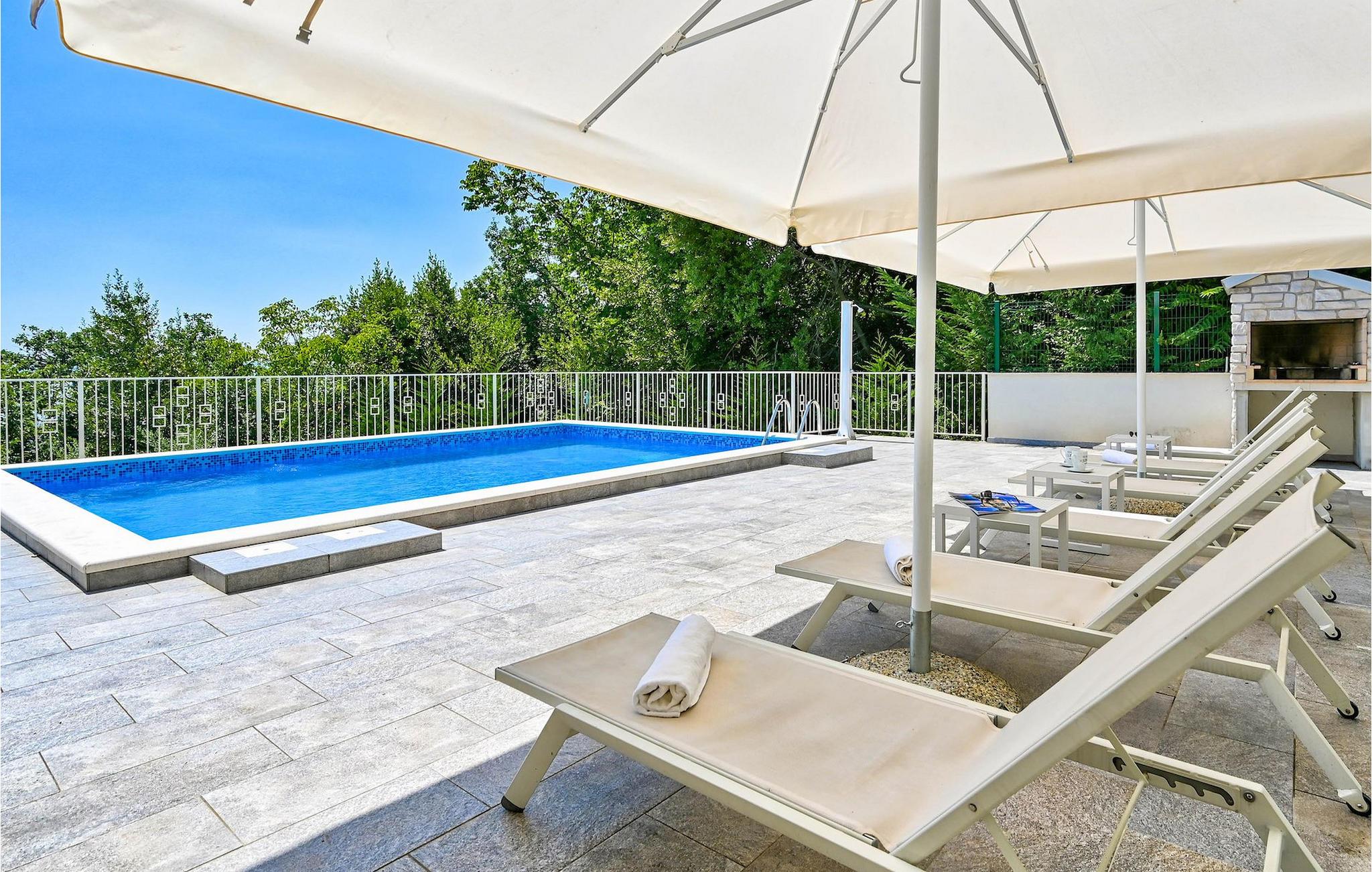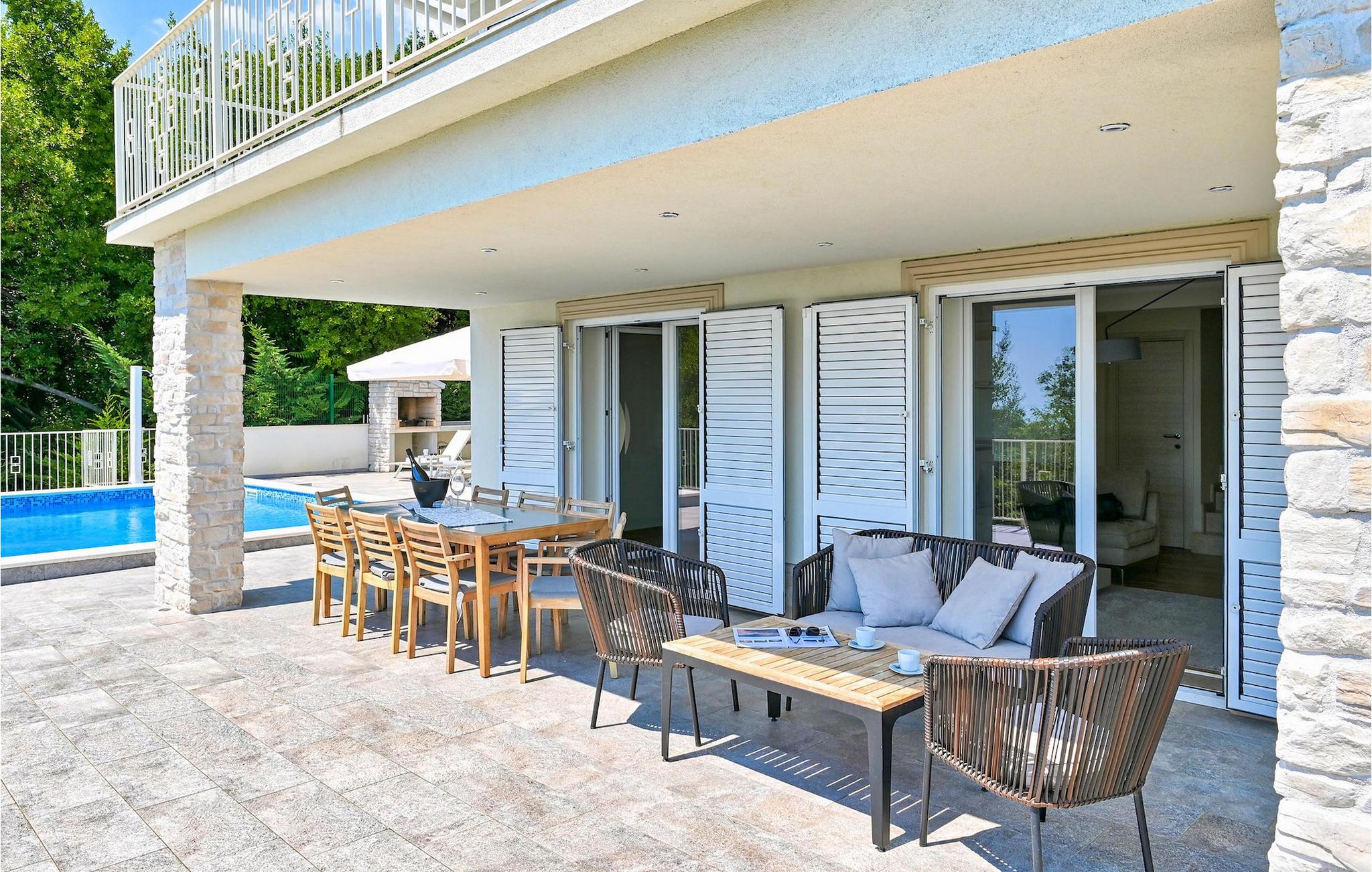 VIlla Carmen Opatija ist eine moderne Villa mit Platz für bis zu 8 Gäste in 4 komfortablen Doppelzimmern. Die Villa besteht aus 2 Einheiten. Eine Einheit befindet sich im Erdgeschoss und besteht aus einem Wohnzimmer, 1 Doppelzimmer, einer Küche und einem Badezimmer. Diese Einheit hat einen separaten Eingang und ist von innen nicht mit dem anderen Teil des Hauses verbunden. Die andere Einheit erstreckt sich über 2 Etagen. Ein Teil davon befindet sich ebenfalls im Erdgeschoss, bestehend aus einem Wohnzimmer, einer Küche und einem kleinen Gäste-WC. Eine innere Treppe führt Sie in den 1. Stock, wo sich die 3 restlichen Schlafzimmer und 1 Badezimmer befinden. Aufgrund der tollen Lage der Villa können Sie von allen Terrassen sowie vom schönen Pool den bezaubernden Meerblick genießen. Ideal für Familien, die etwas Privatsphäre genießen können, sowie gemeinsame Mahlzeiten im Freien auf der überdachten Terrasse neben dem Pool, während Sie die wunderschöne Adria genießen.