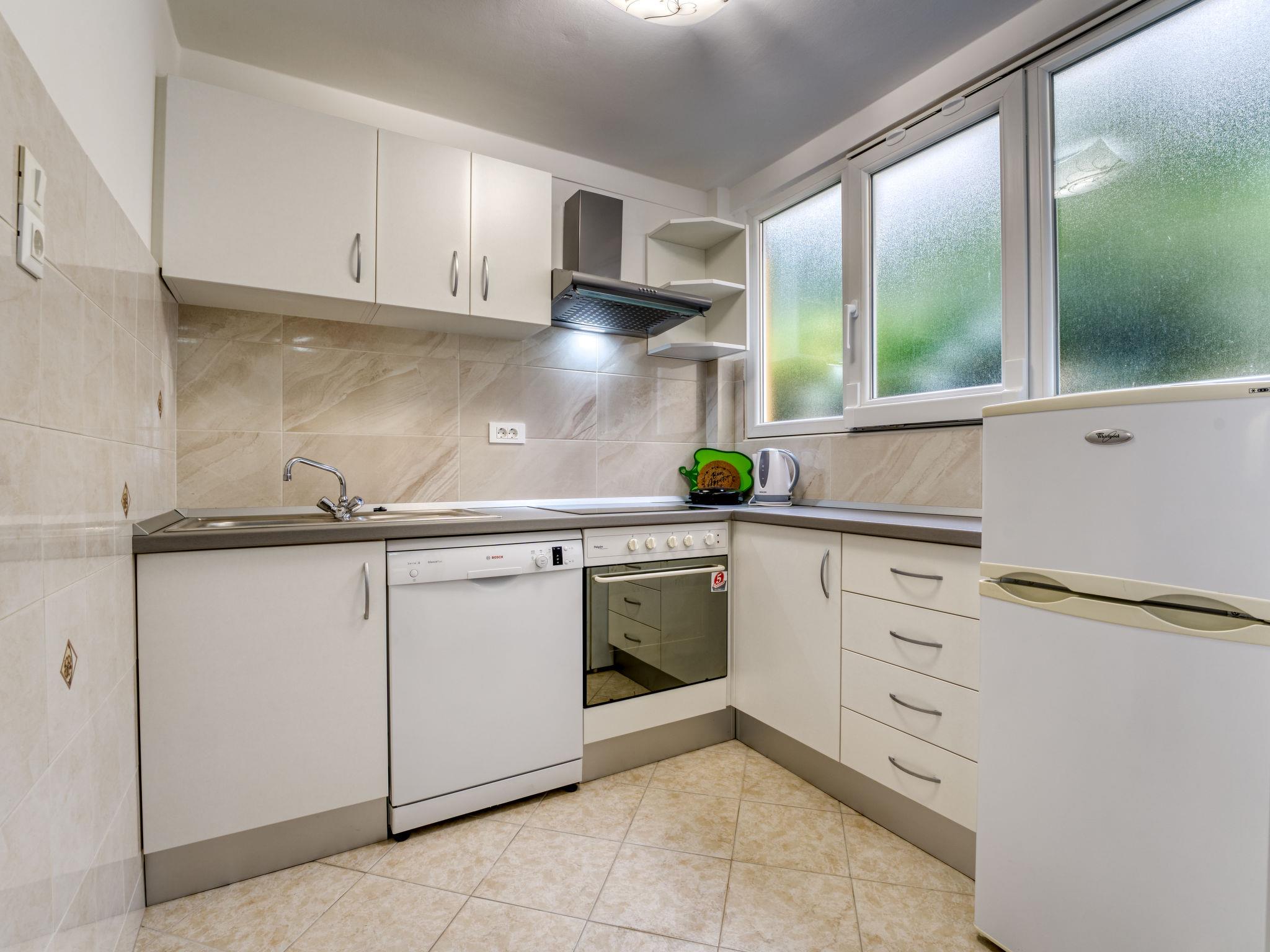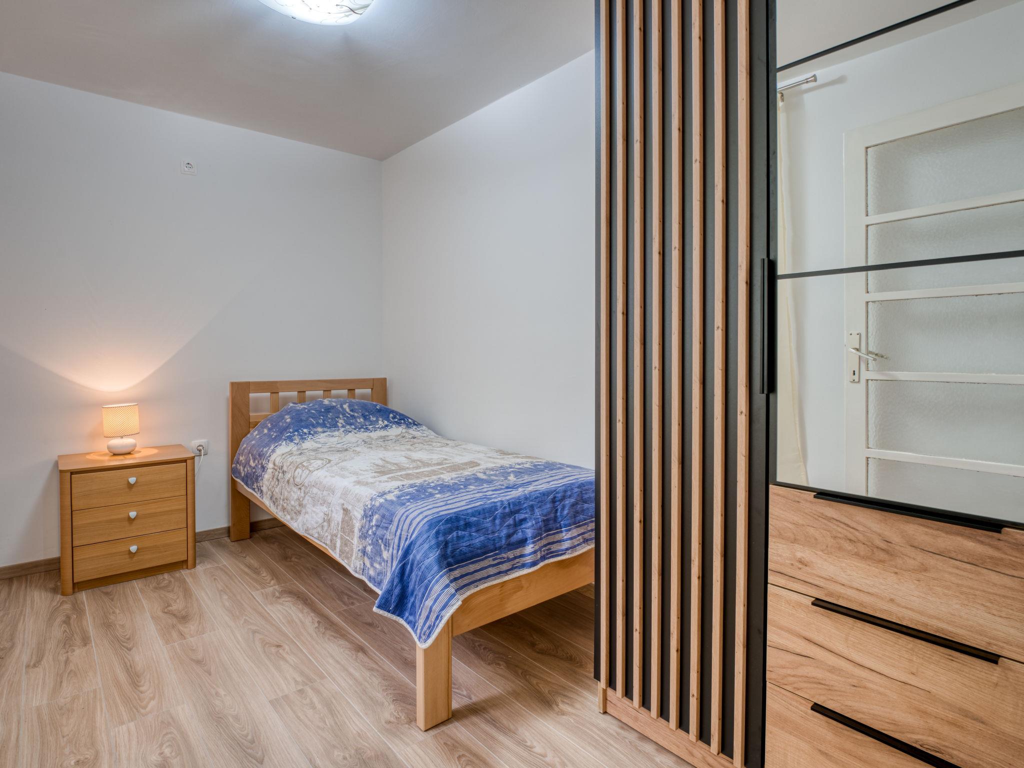 3-room apartment 67 m2, on the ground floor. Living/dining room with 1 sofabed (100 cm, length 200 cm), satellite TV and air conditioning. Exit to the balcony. 1 room with 1 bed (90 cm, length 200 cm). 1 room with 1 double bed (2 x 90 cm, length 200 cm). Open kitchen (oven, dishwasher, 4 ceramic glass hob hotplates, toaster, kettle, freezer, electric coffee machine). Shower/bidet/WC. Forced-air heating. Balcony 6 m2. Balcony furniture. View of the sea. Facilities: washing machine, iron, hair dryer. Internet (WiFi, free). Please note: non-smoking house. Private entrance.