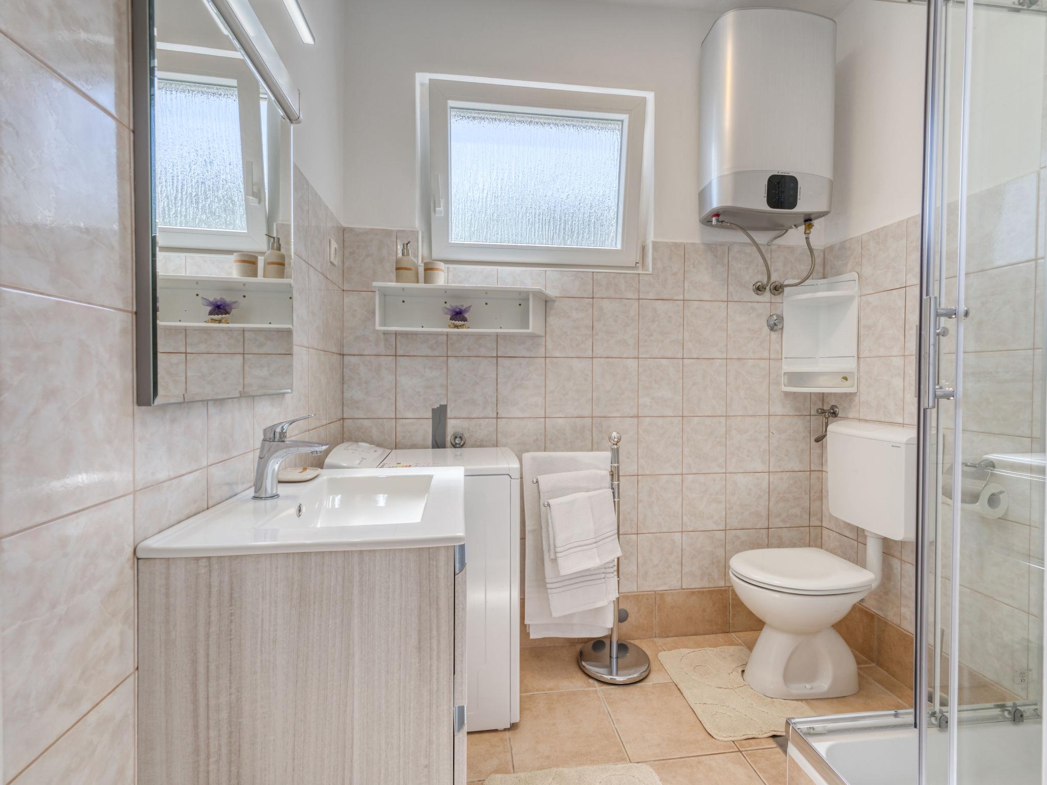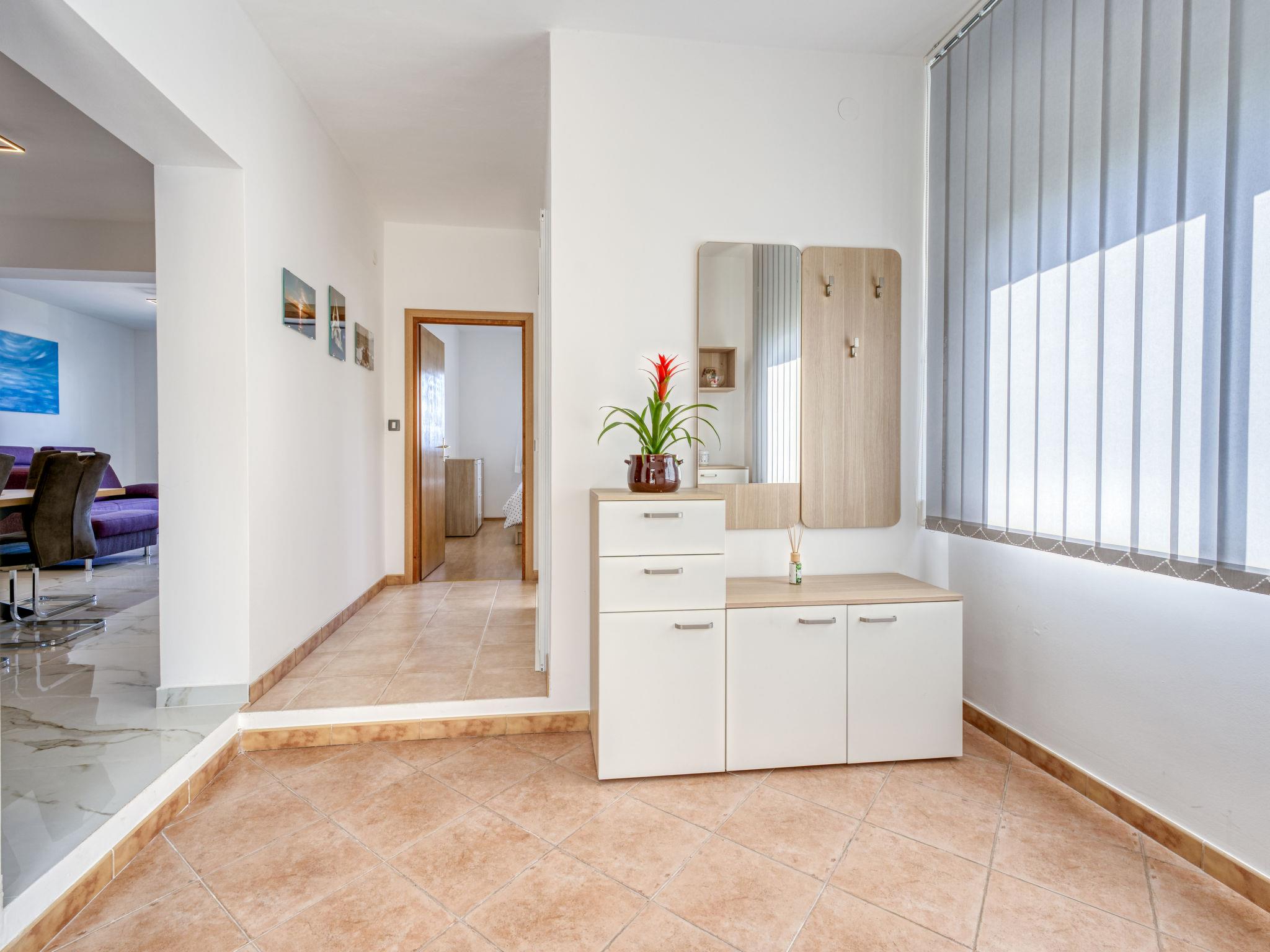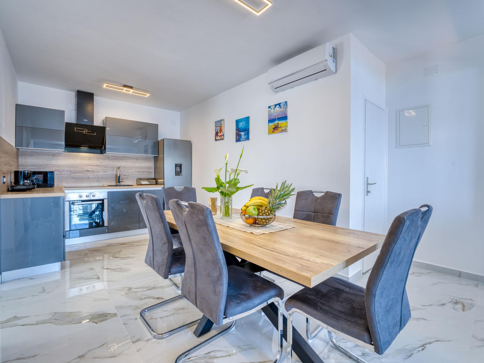 2-room apartment 62 m2 on 1st floor, south-west facing position. Modern furnishings: living/dining room 32 m2 with 1 sofabed (100 cm, length 210 cm), satellite TV (flat screen), air conditioning. Exit to the balcony. 1 room with 1 french bed (160 cm, length 200 cm). Open kitchen (oven, dishwasher, 4 ceramic glass hob hotplates, toaster, kettle, microwave, freezer, electric coffee machine). Shower/WC. No heating option. Balcony 5 m2. Balcony furniture. Beautiful view of the sea. Facilities: washing machine, safe. Internet (WiFi). Please note: non-smokers only. Private entrance.