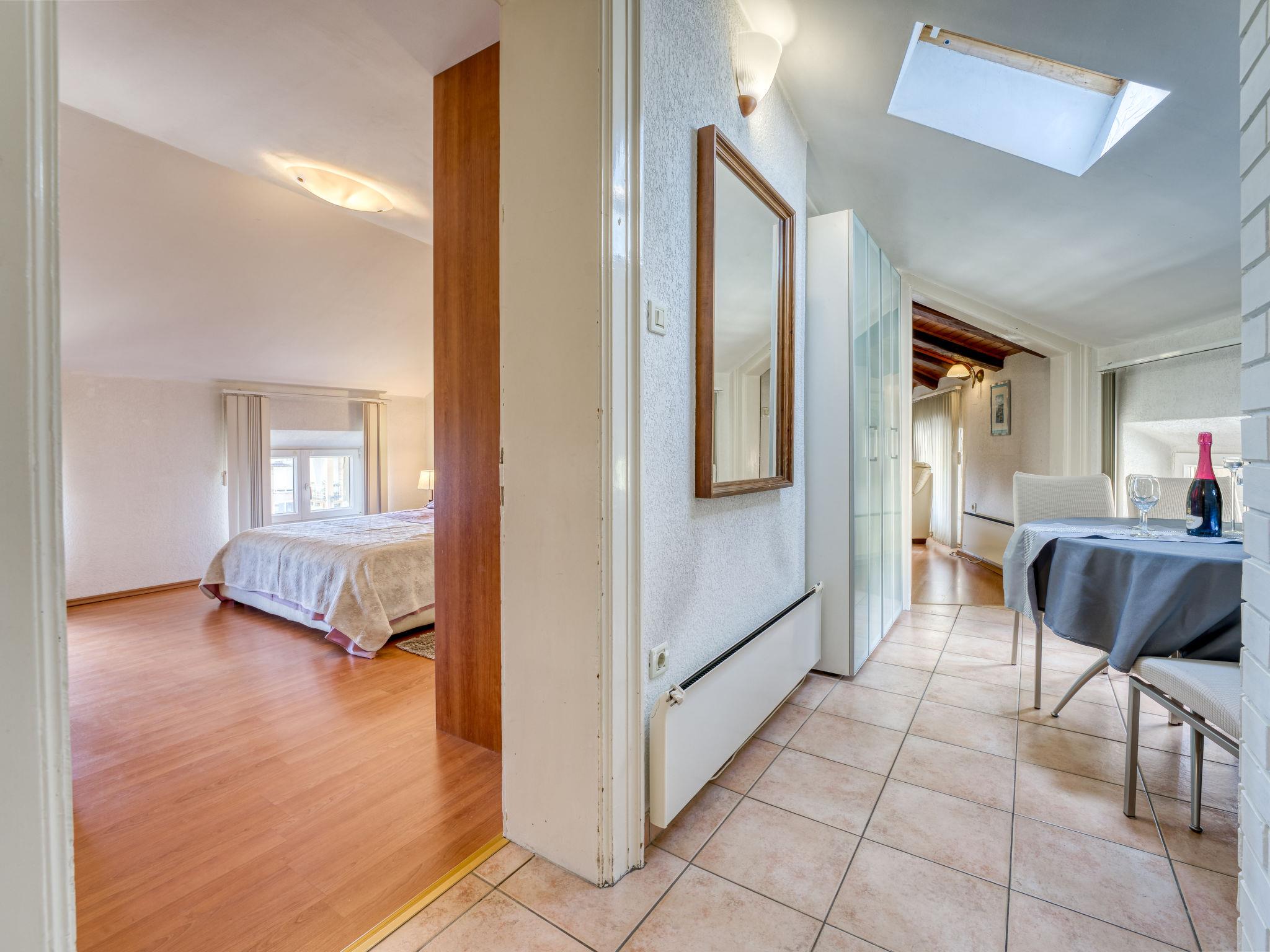 2-room apartment 60 m2, on the top floor. Living/sleeping room with sloping ceilings, ceiling height 170 - 270 cm with 1 double bed (2 x 90 cm, length 200 cm), cable TV (flat screen), air conditioning. Entrance hall with sloping ceilings, ceiling height 170 - 270 cm with dining table and air conditioning. 1 room with sloping ceilings, ceiling height 170 - 270 cm with 1 french bed (160 cm, length 200 cm), air conditioning. With sloping ceilings kitchen (oven, dishwasher, 2 ceramic glass hob hotplates, kettle, freezer), ceiling height 170 - 270 cm. Shower/WC. Electric heating, forced-air heating. View of the sea. Facilities: safe, hair dryer. Internet (WiFi, free). Parking space n 4 (1 car). Please note: non-smoking house. Maximum 1 small pet/ dog allowed. Low placed windows in the apartment.