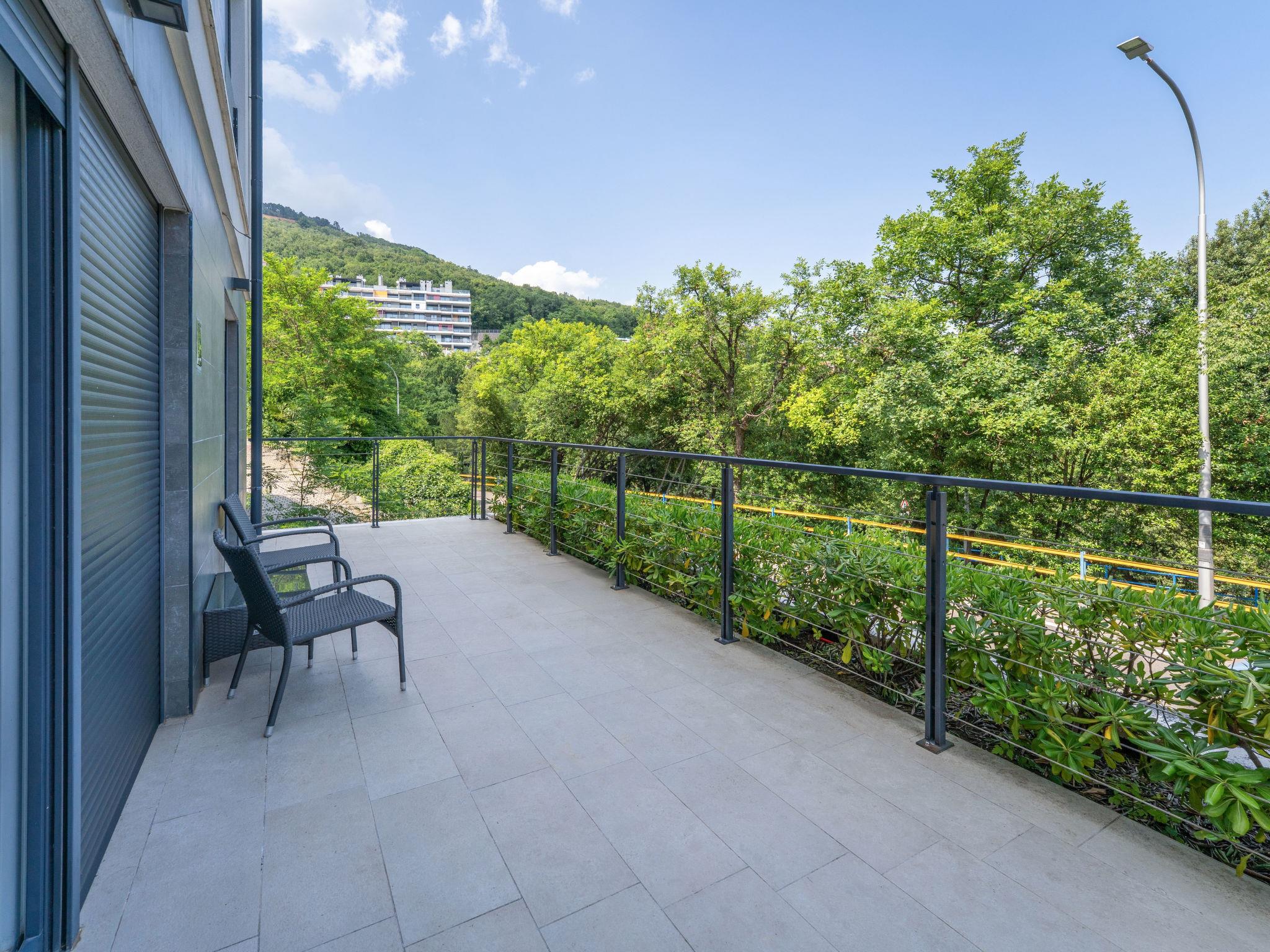 Modern, cosy apartment house "Villa Ziza". 250 m from the centre of Opatija, 600 m from the sea, 600 m from the beach, located by a road. For shared use: property 900 m2 with plants, swimming pool (above ground) heated (5 x 5 m, depth 85 cm, seasonal availability: 01.Jan. - 31.Dec.). Unconventional pool shape. Outdoor shower. In the house: internet access, roof terrace. E-charging station. Supermarket, shopping centre 650 m, restaurant, café, bus stop 500 m, concrete beach 600 m. Walking paths from the house 100 m. Groups of teenagers on request only. The swimming pool is situated on the roof terrace (50 m2, garden furniture).