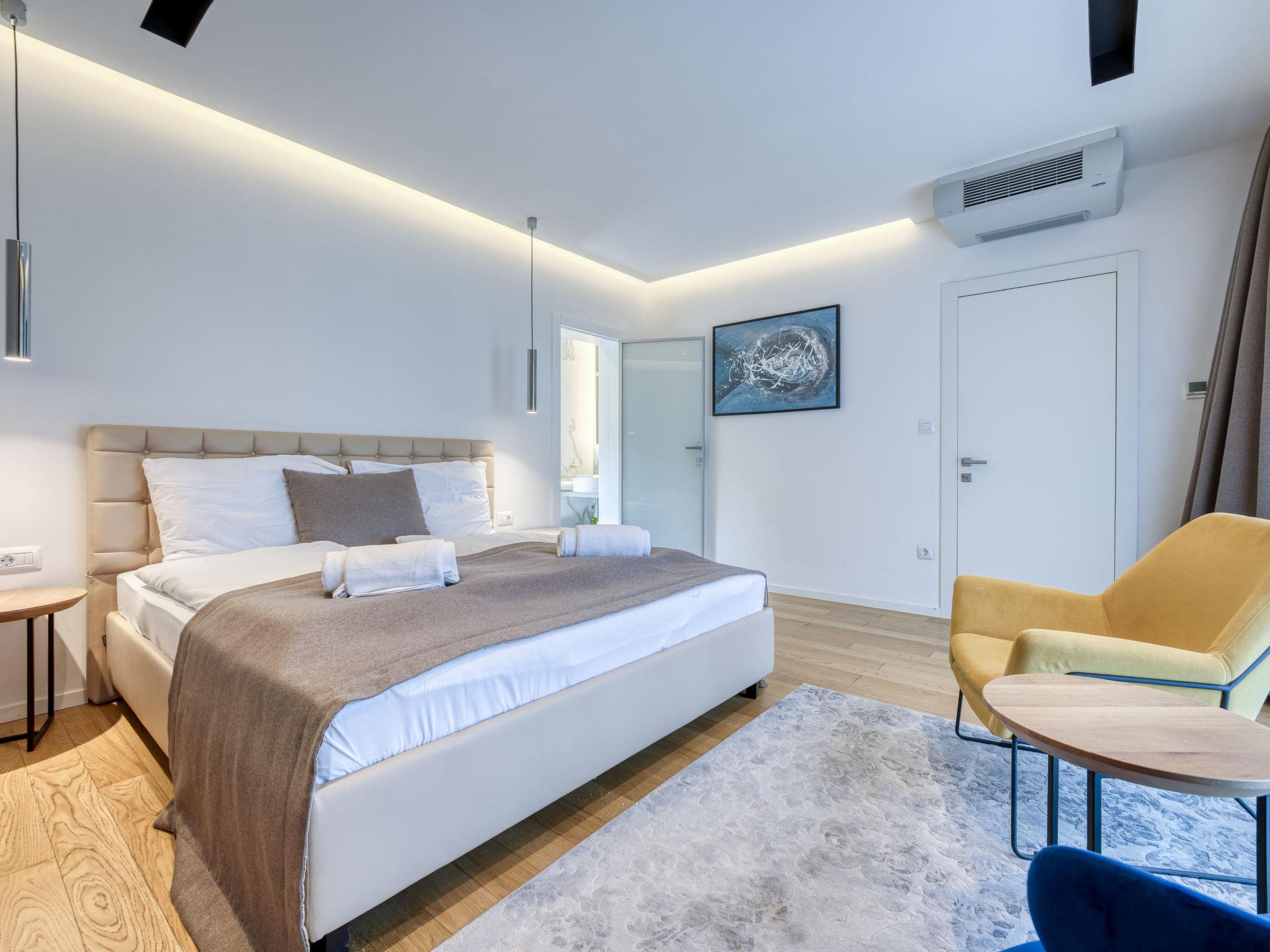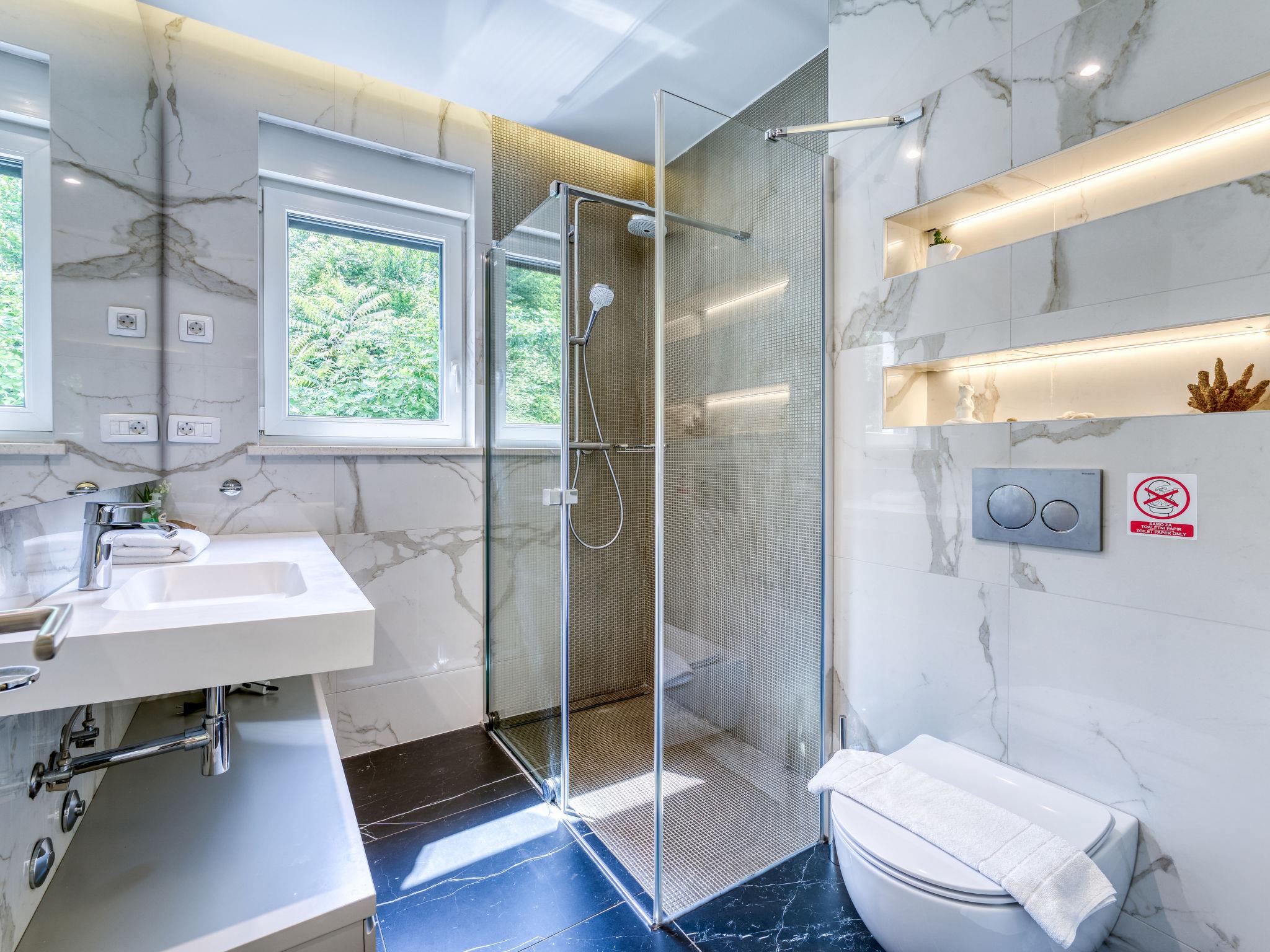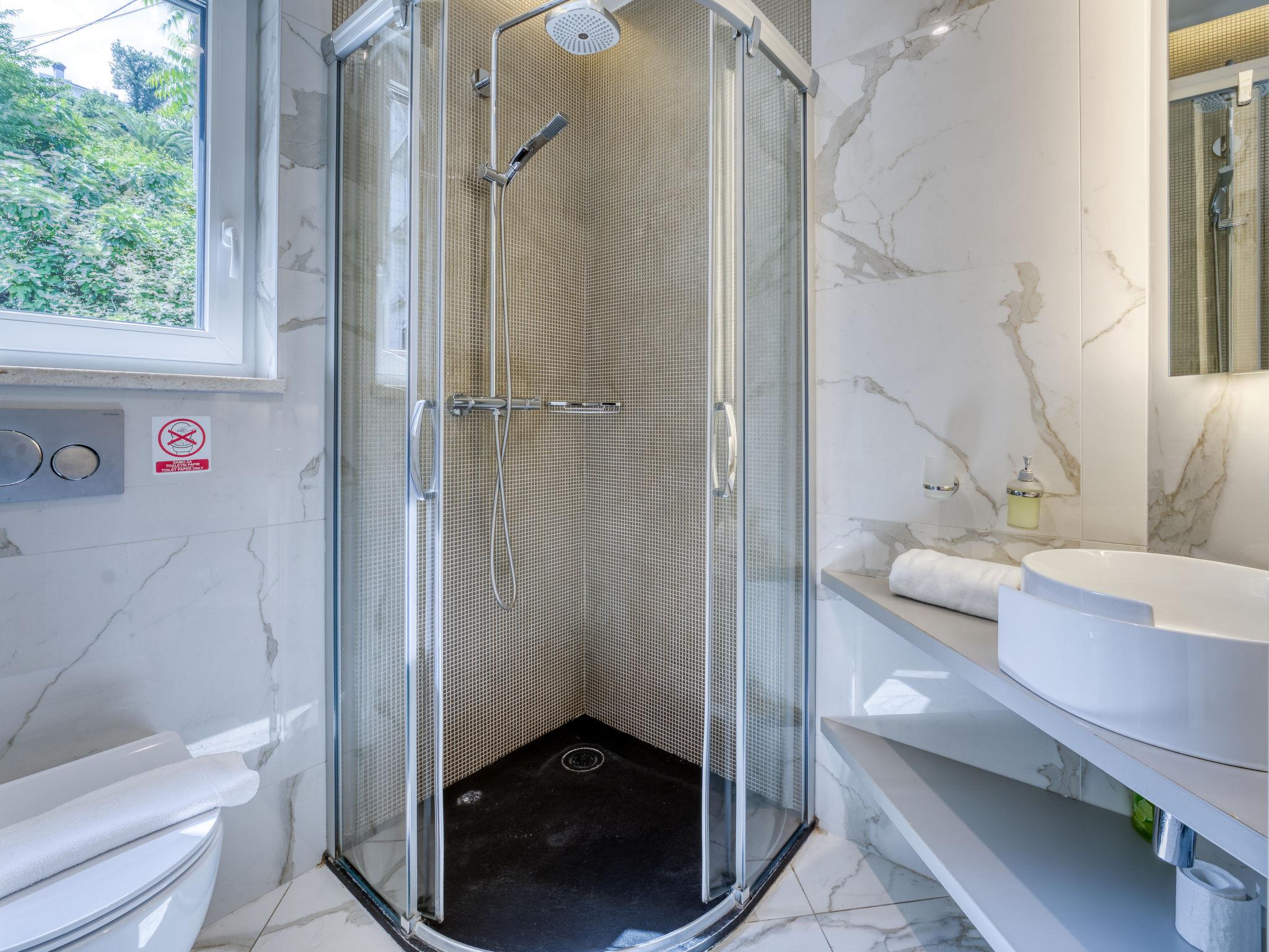 Modern, cosy apartment house "Villa Ziza". 250 m from the centre of Opatija, 600 m from the sea, 600 m from the beach, located by a road. For shared use: property 900 m2 with plants, swimming pool (above ground) heated (5 x 5 m, depth 85 cm, seasonal availability: 01.Jan. - 31.Dec.). Unconventional pool shape. Outdoor shower. In the house: internet access, roof terrace. E-charging station. Supermarket, shopping centre 650 m, restaurant, café, bus stop 500 m, concrete beach 600 m. Walking paths from the house 100 m. Groups of teenagers on request only. The swimming pool is situated on the roof terrace (50 m2, garden furniture).