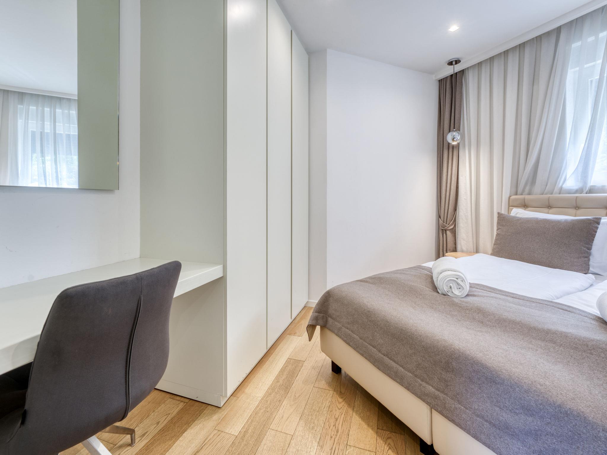 3-room apartment 70 m2 on 1st floor. Modern furnishings: living/dining room with 1 double sofabed (140 cm, length 220 cm), cable TV (flat screen), air conditioning. Exit to the balcony. 1 room with 2 beds (80 cm, length 200 cm), air conditioning. 1 room with 1 french bed (180 cm, length 200 cm), shower/WC and satellite TV (flat screen), air conditioning. Open kitchen (oven, dishwasher, 4 ceramic glass hob hotplates, kettle, microwave). Shower/WC. Floor heating, forced-air heating. Balcony 8 m2. Balcony furniture. Partial view of the sea and the town. Facilities: safe, iron, hair dryer. Internet (WiFi, free). Garage (1 car). Please note: non-smoking house.